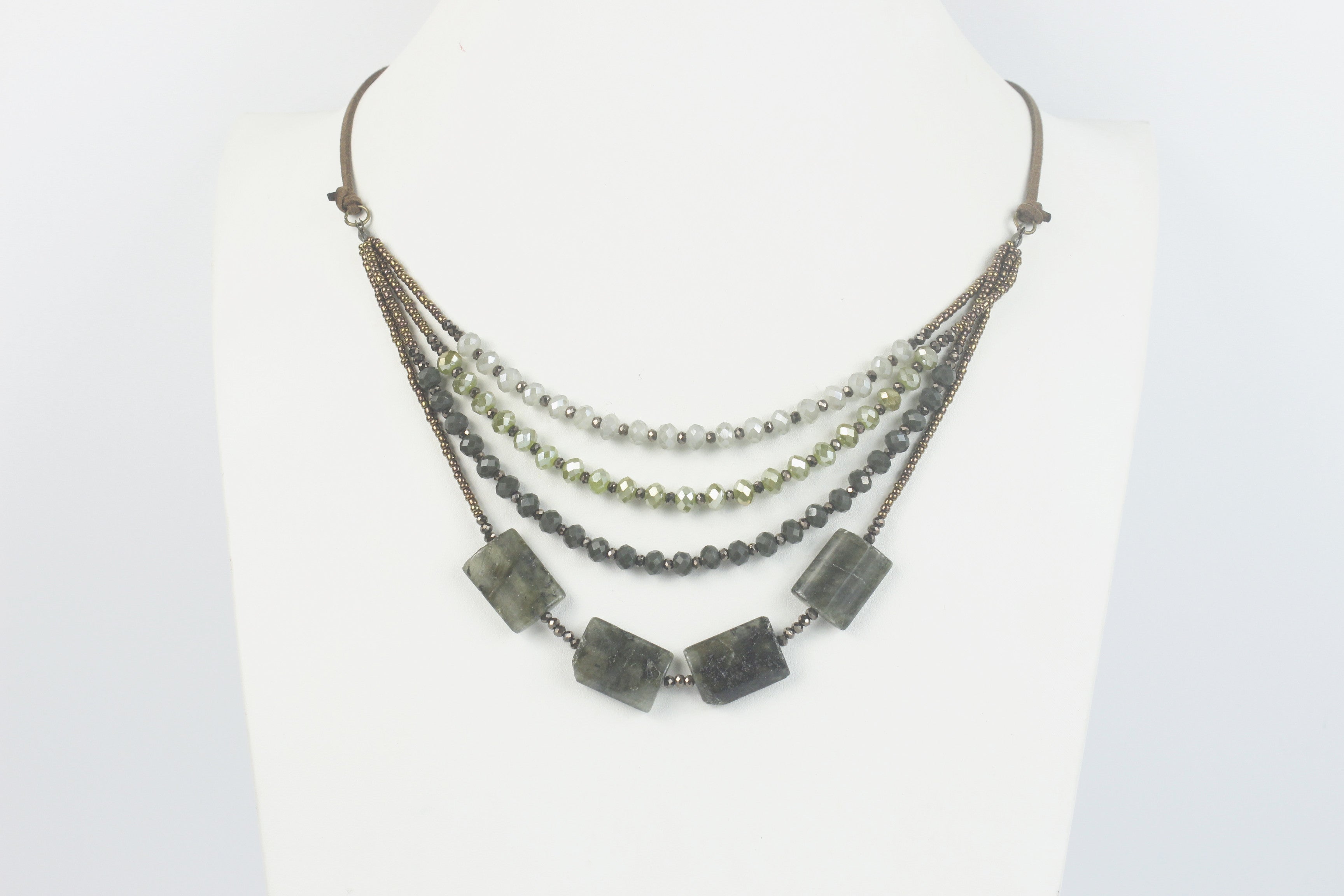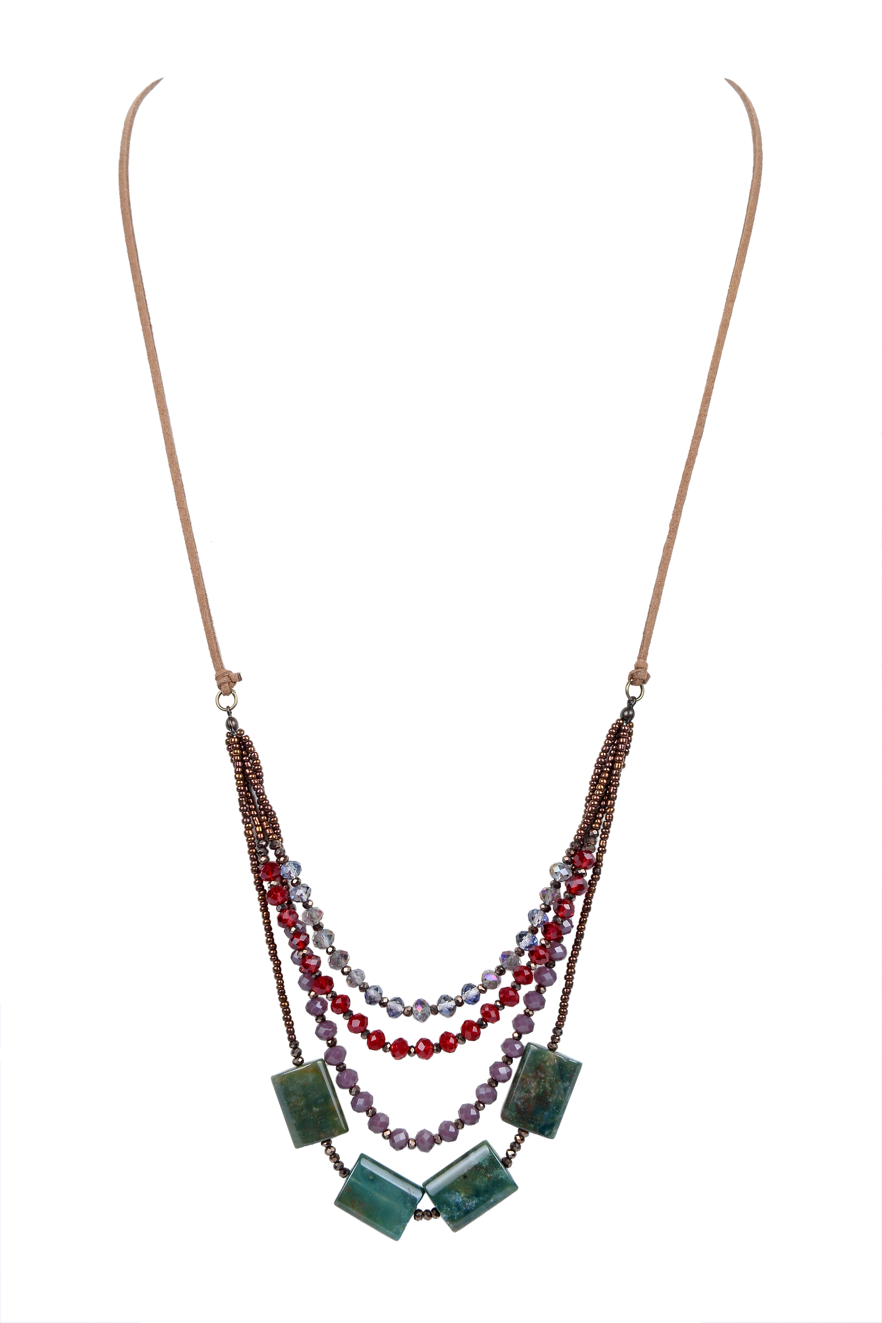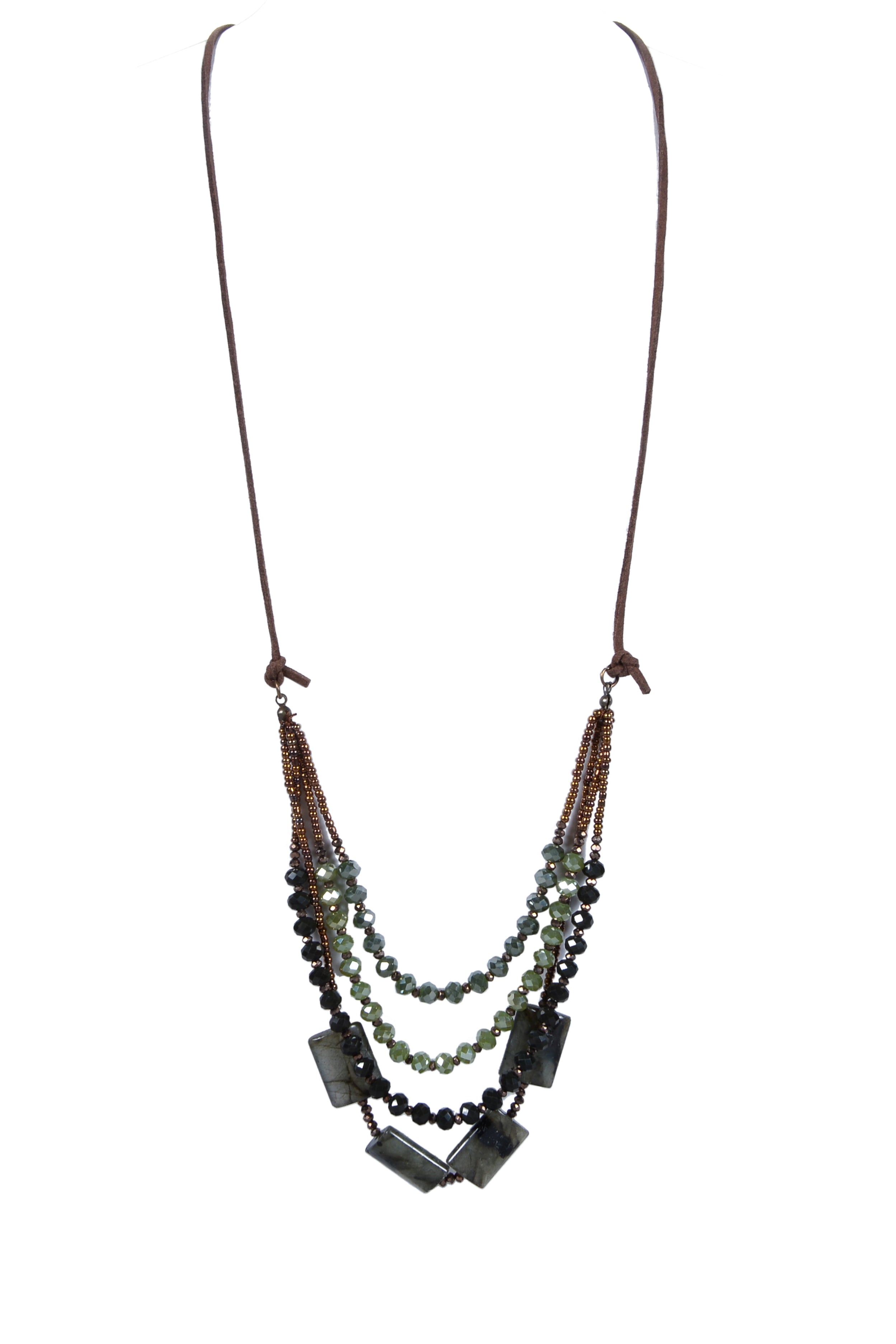 Bohemian Green Crystal Leather Stone Necklaces N2755