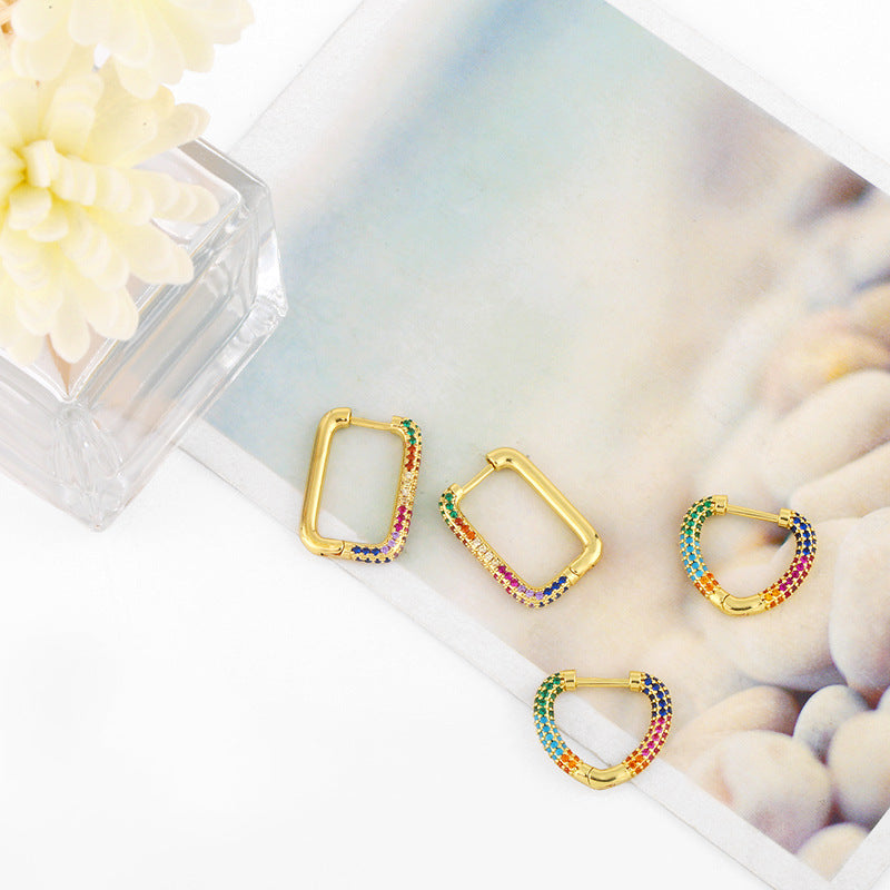Stainless Steel Rhinestone Hoop Earrings E3576