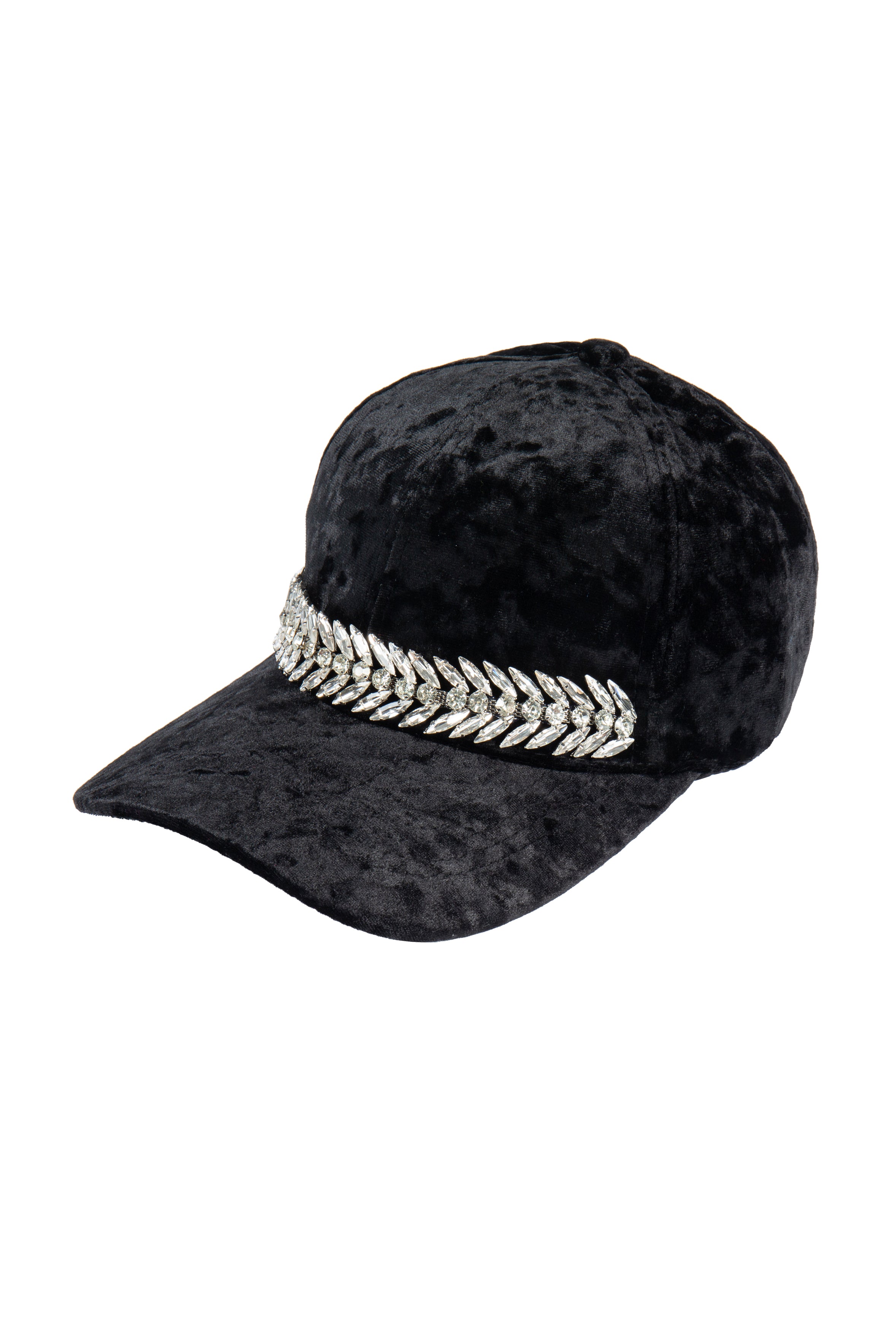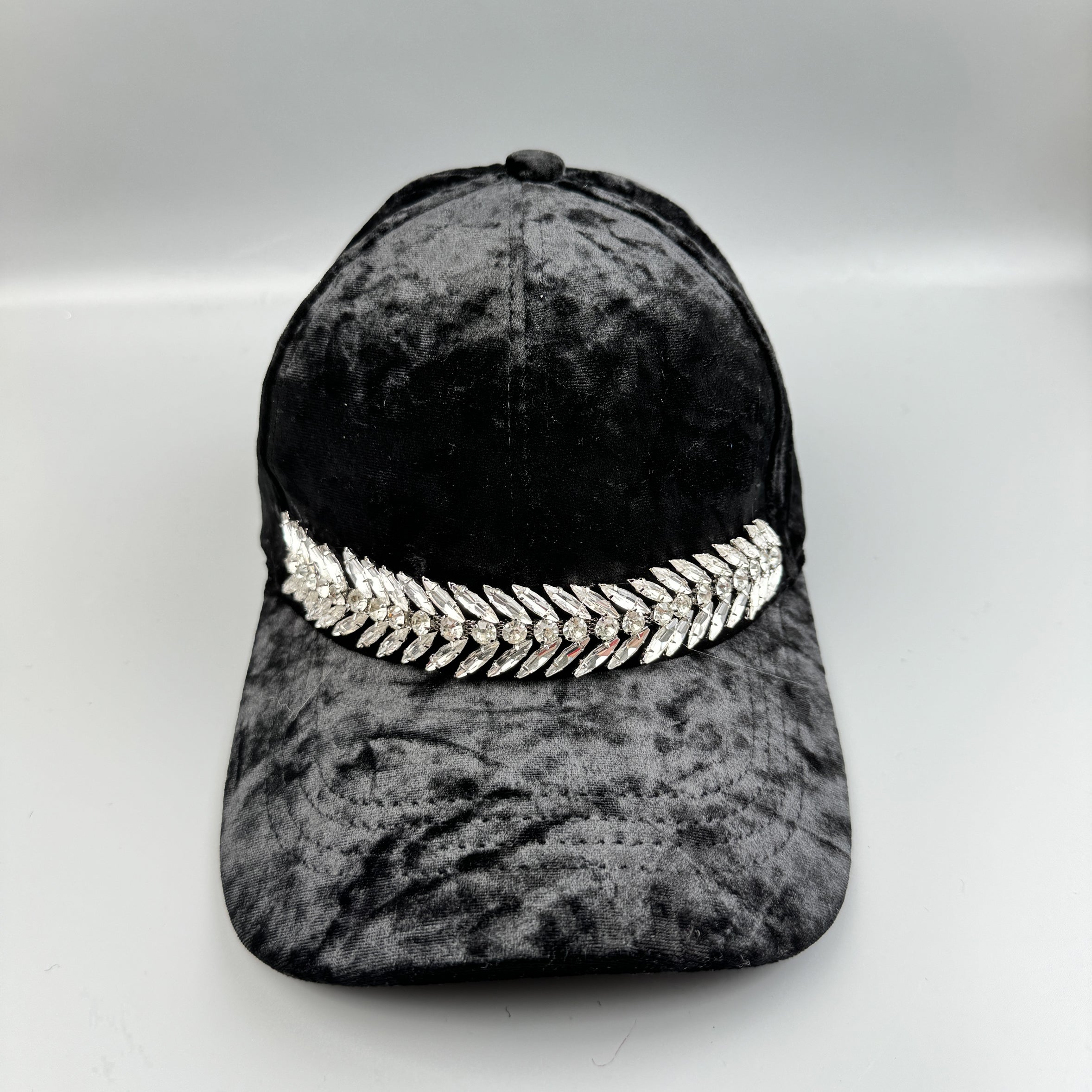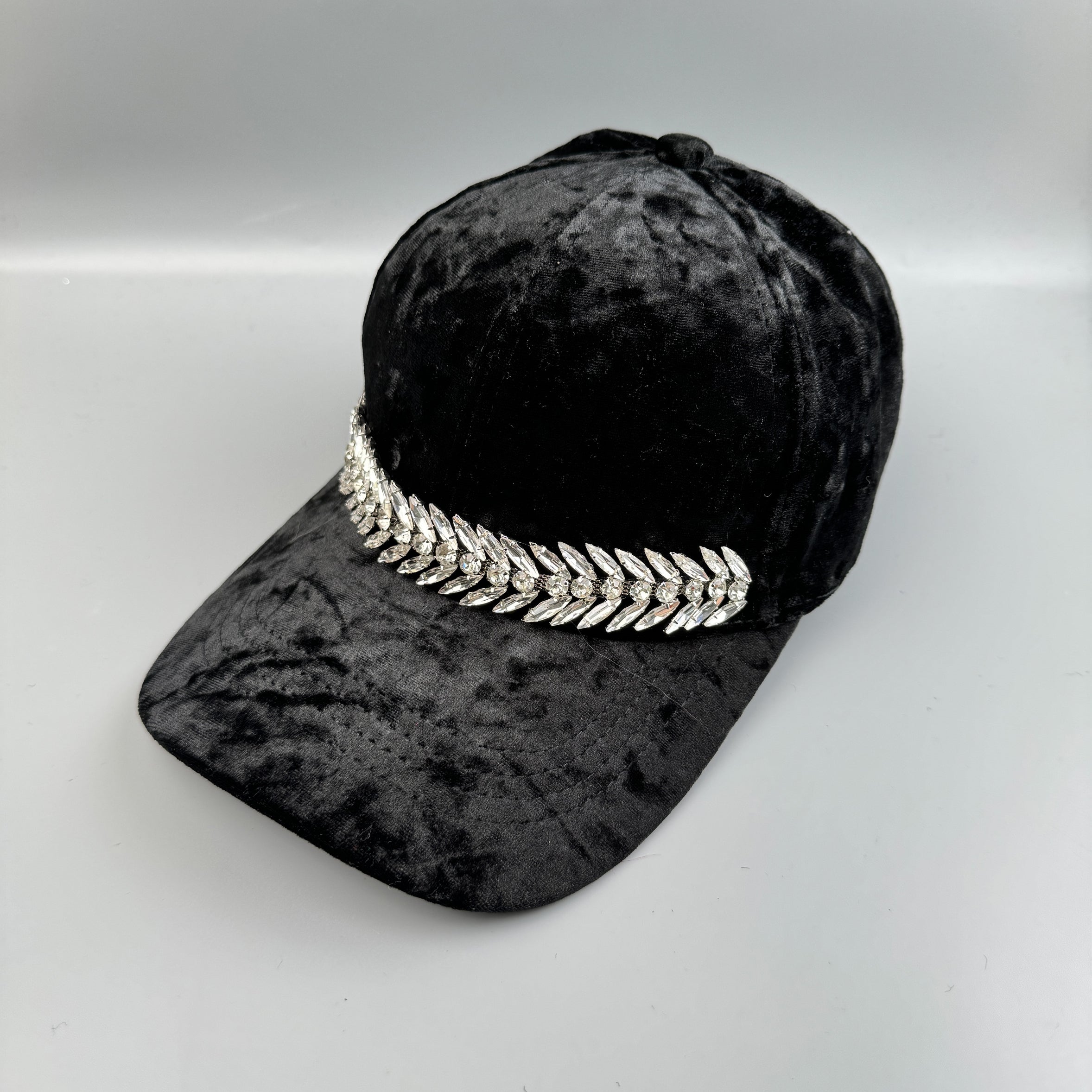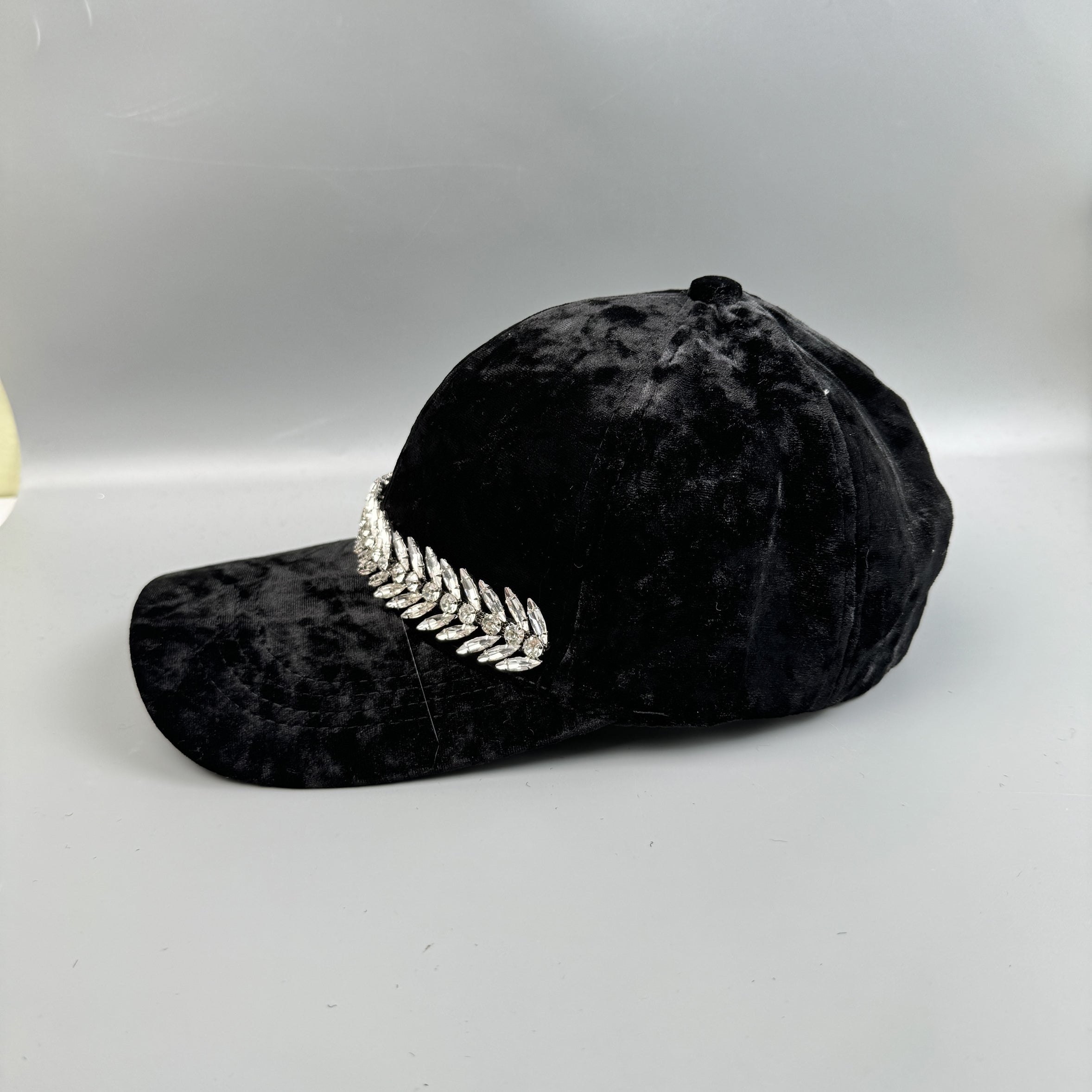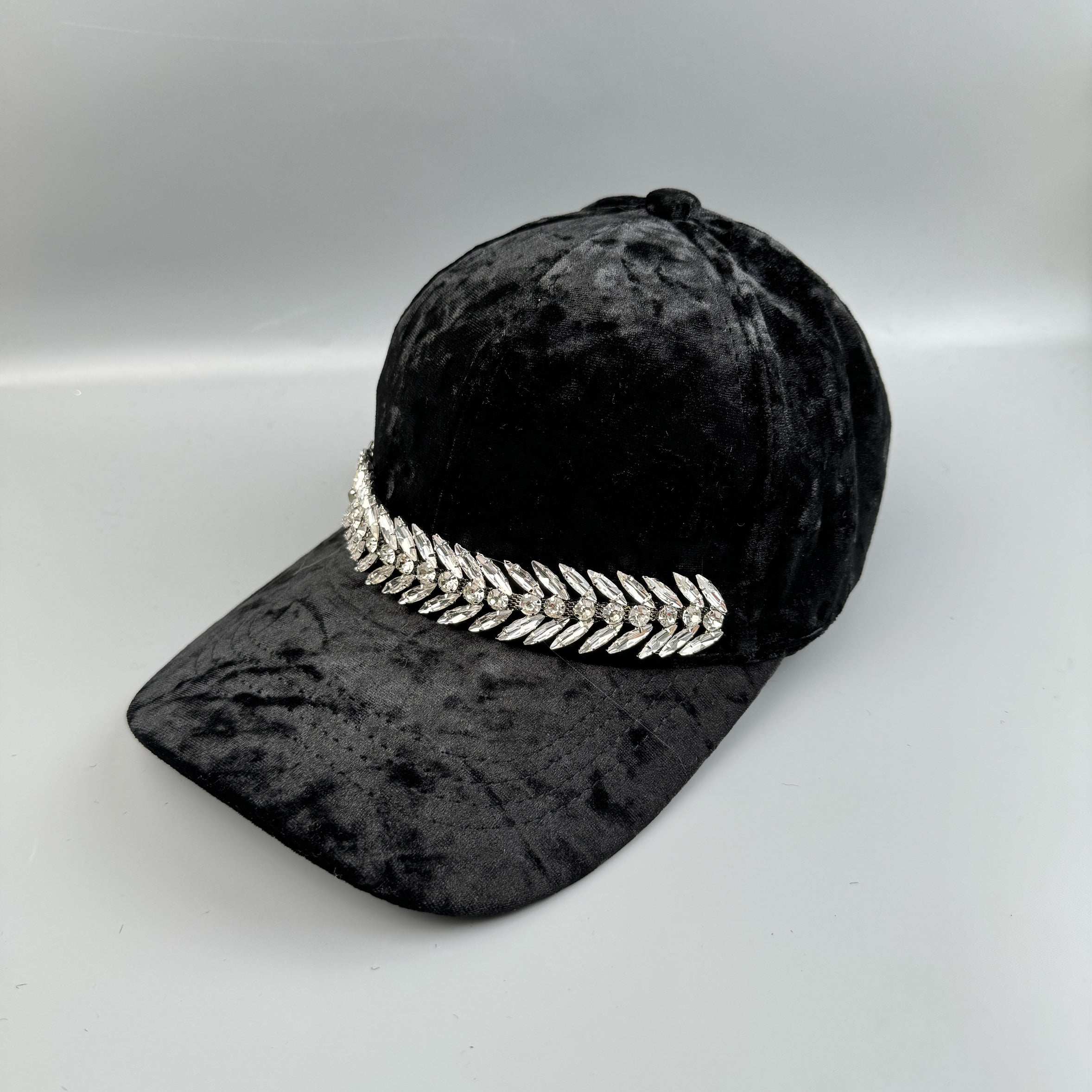Velvet Fabric Geometry Rhinestone Chains Cap Hat C0847