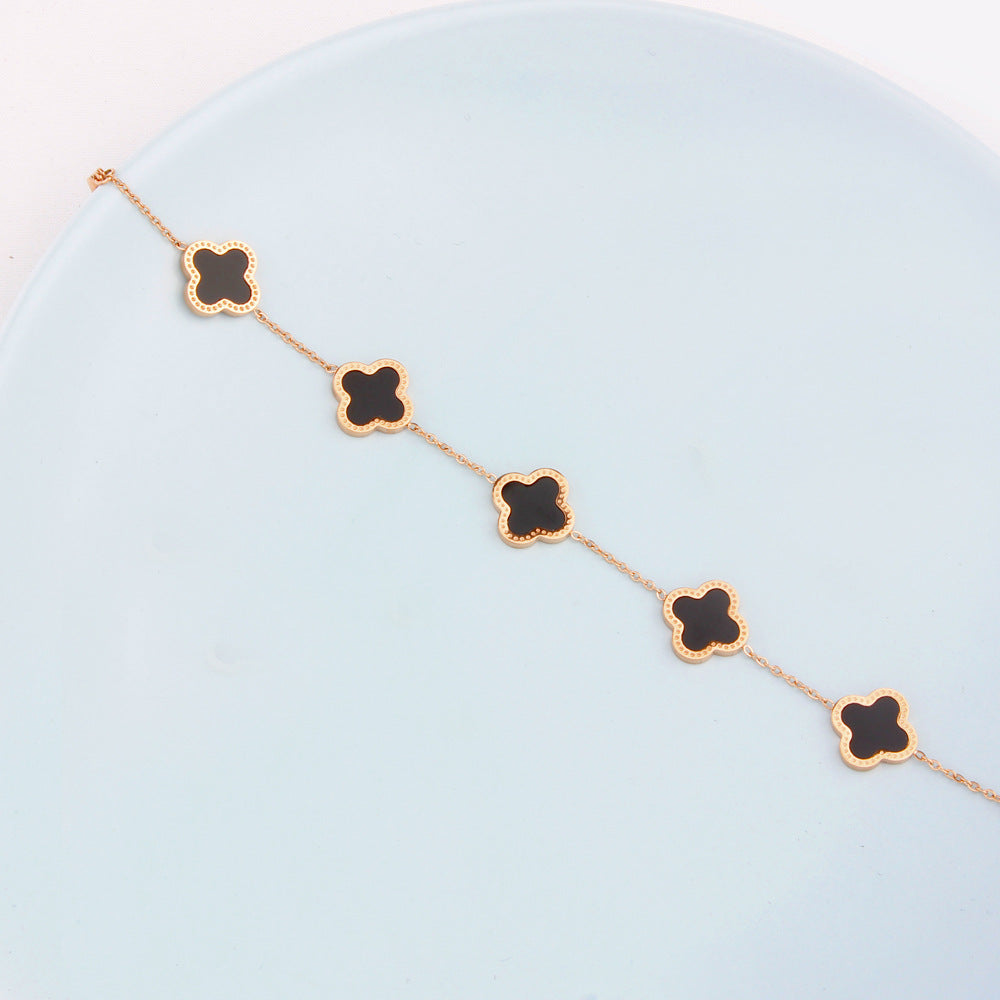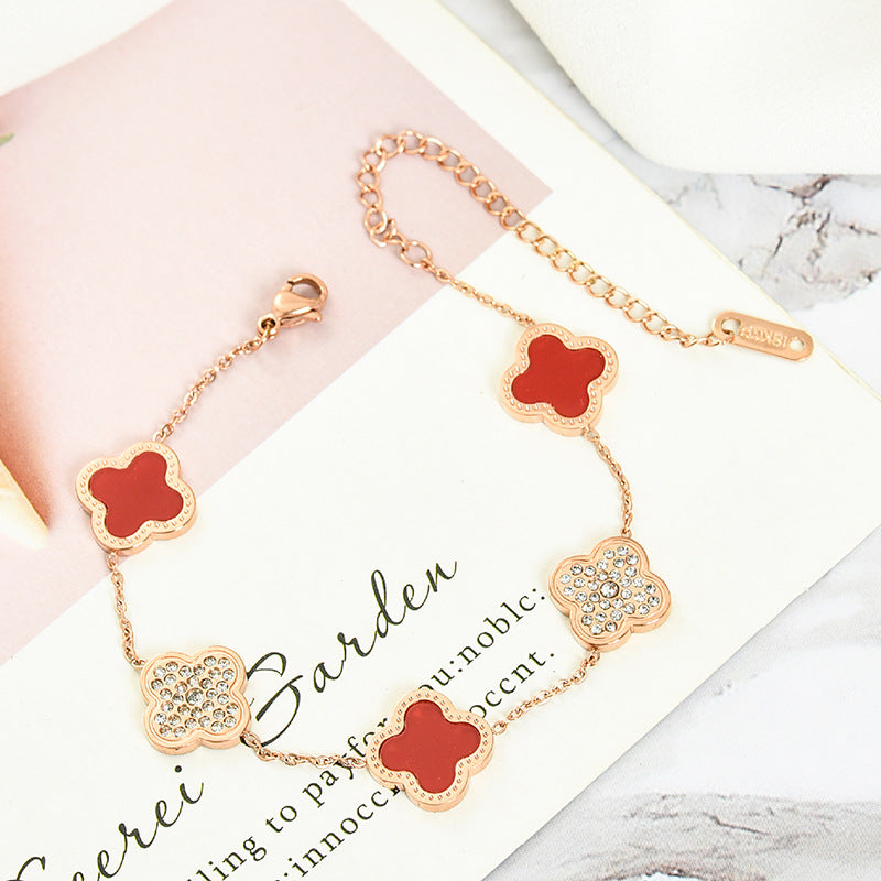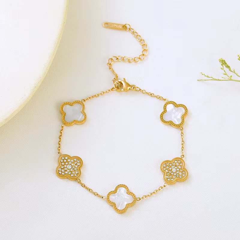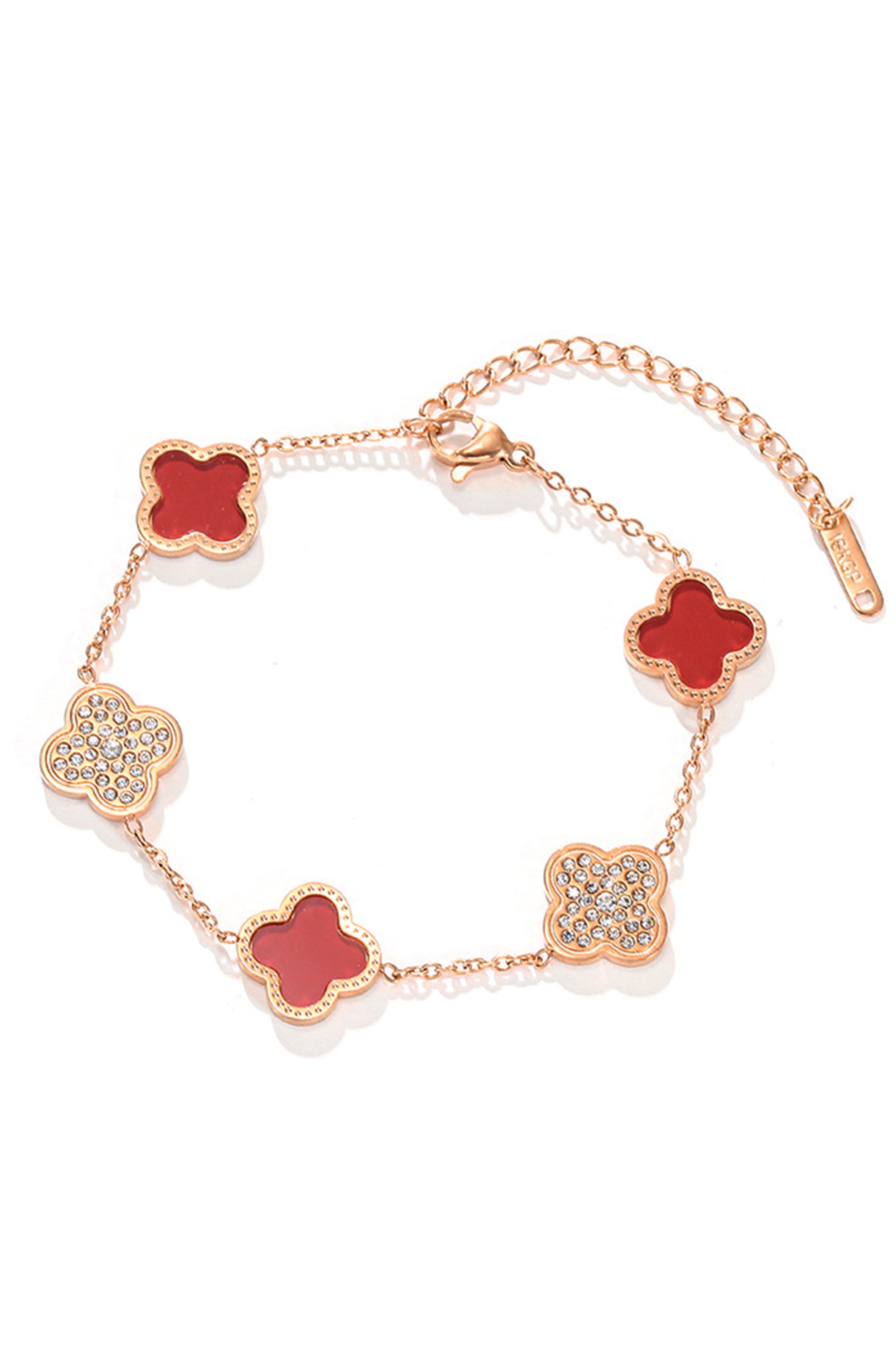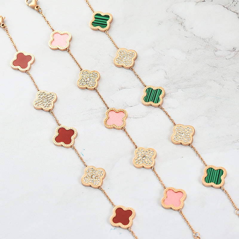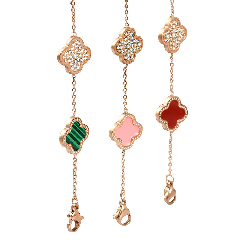 Clover Rhinestone Stainless Steel Bracelet B2674