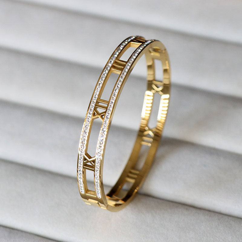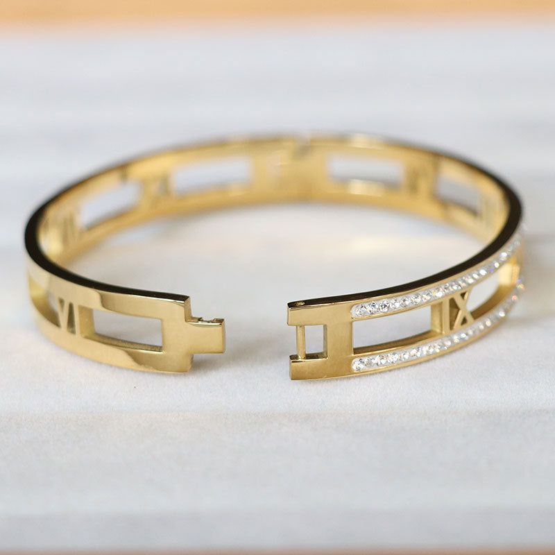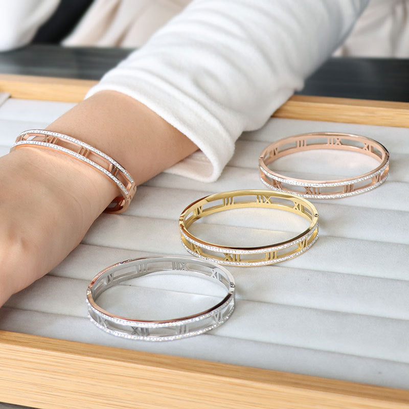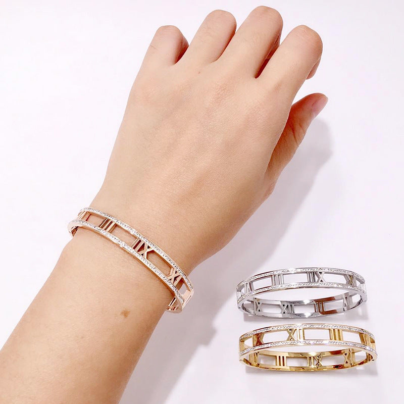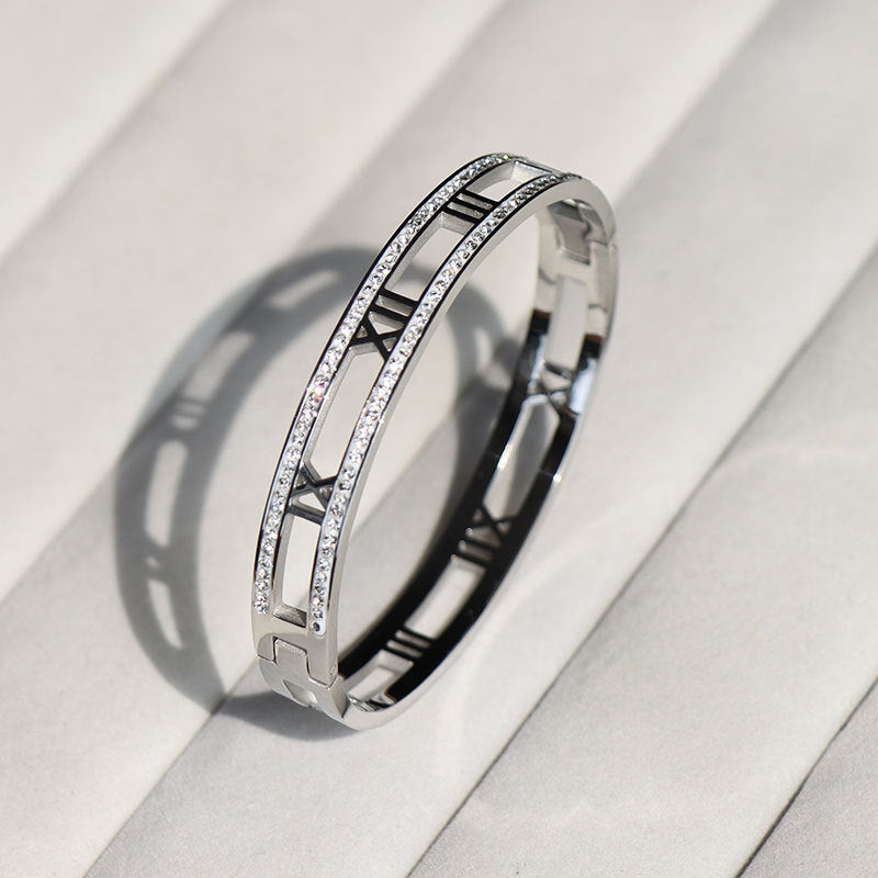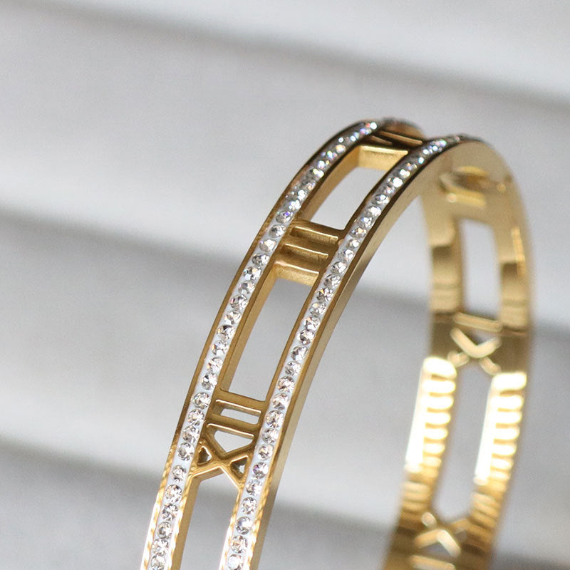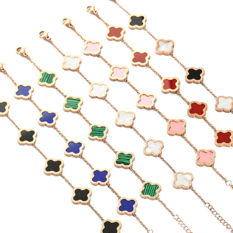 Clover Rhinestone Stainless Steel Bracelet B2674