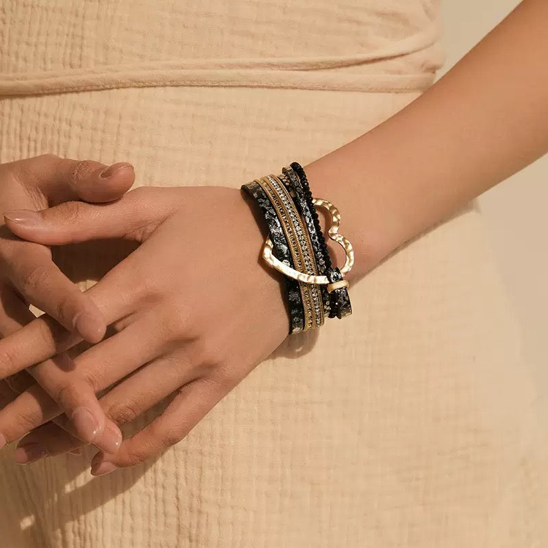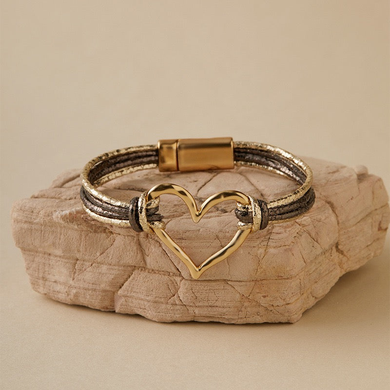 Heart Shape Leatherette Magnetic Bracelet B4289