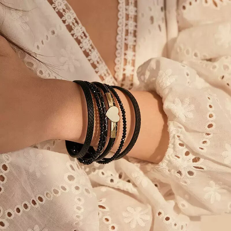 3. Heart Shape Leather Magnetic Bracelet B4285