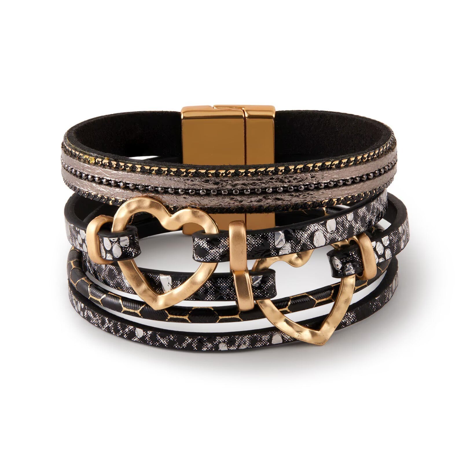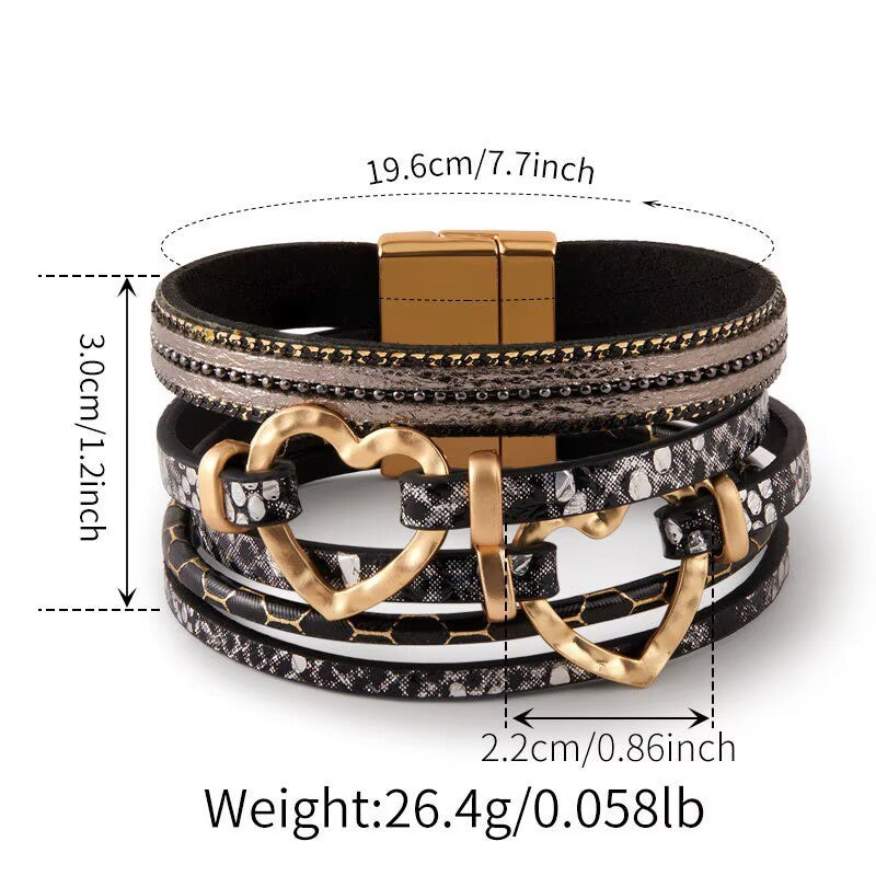3. Heart Shape Multi Layer Leatherette Magnetic Bracelet B4298