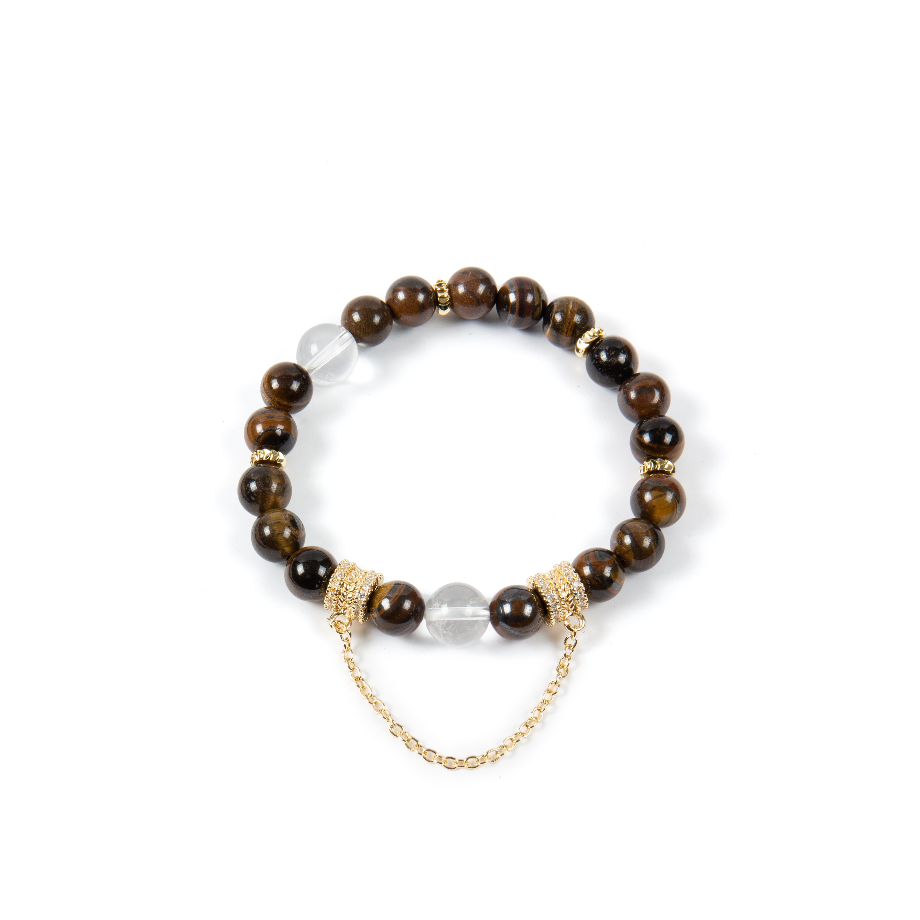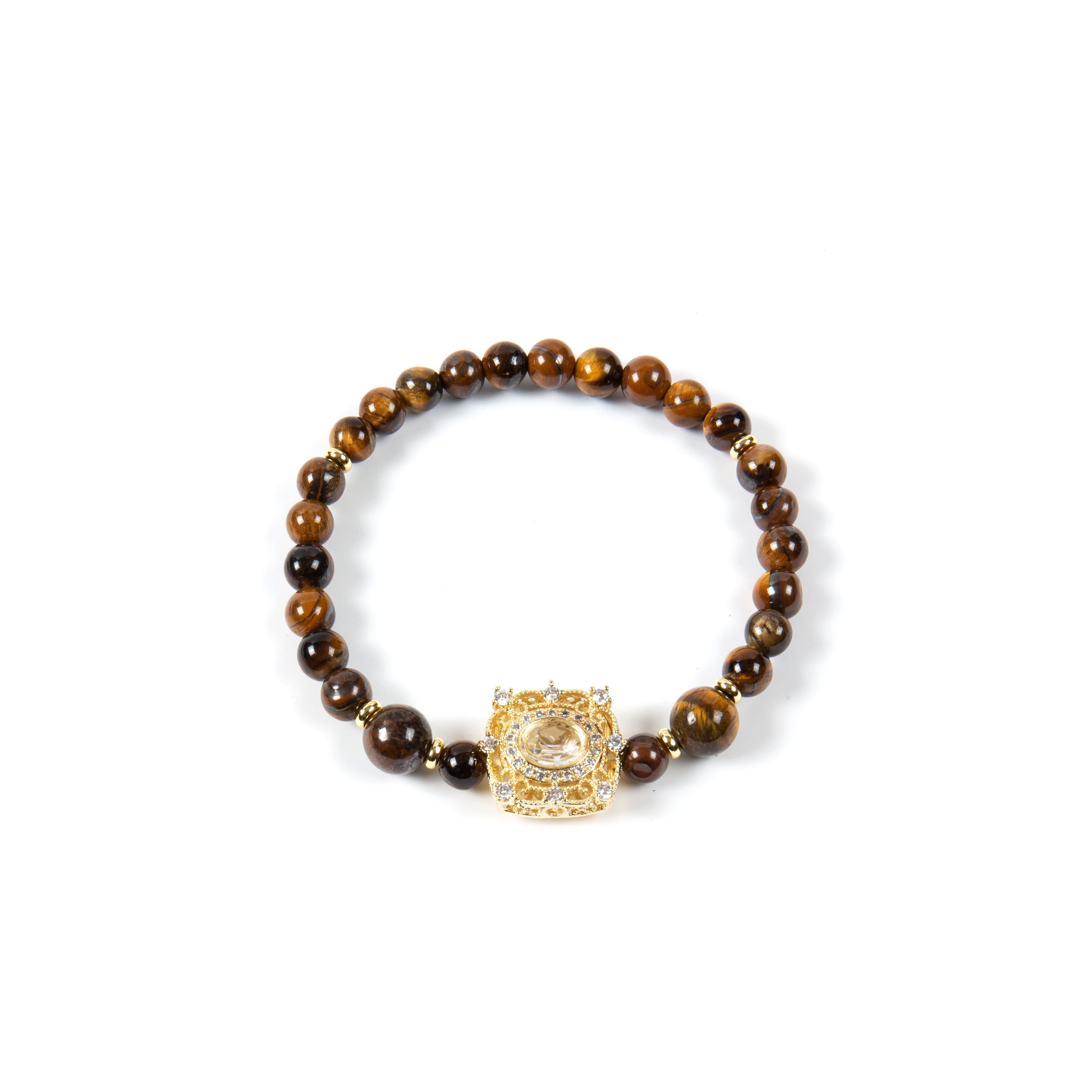 18K Gold Plated Tiger Eye Cubic Zirconia Strech Bracelet B4326
