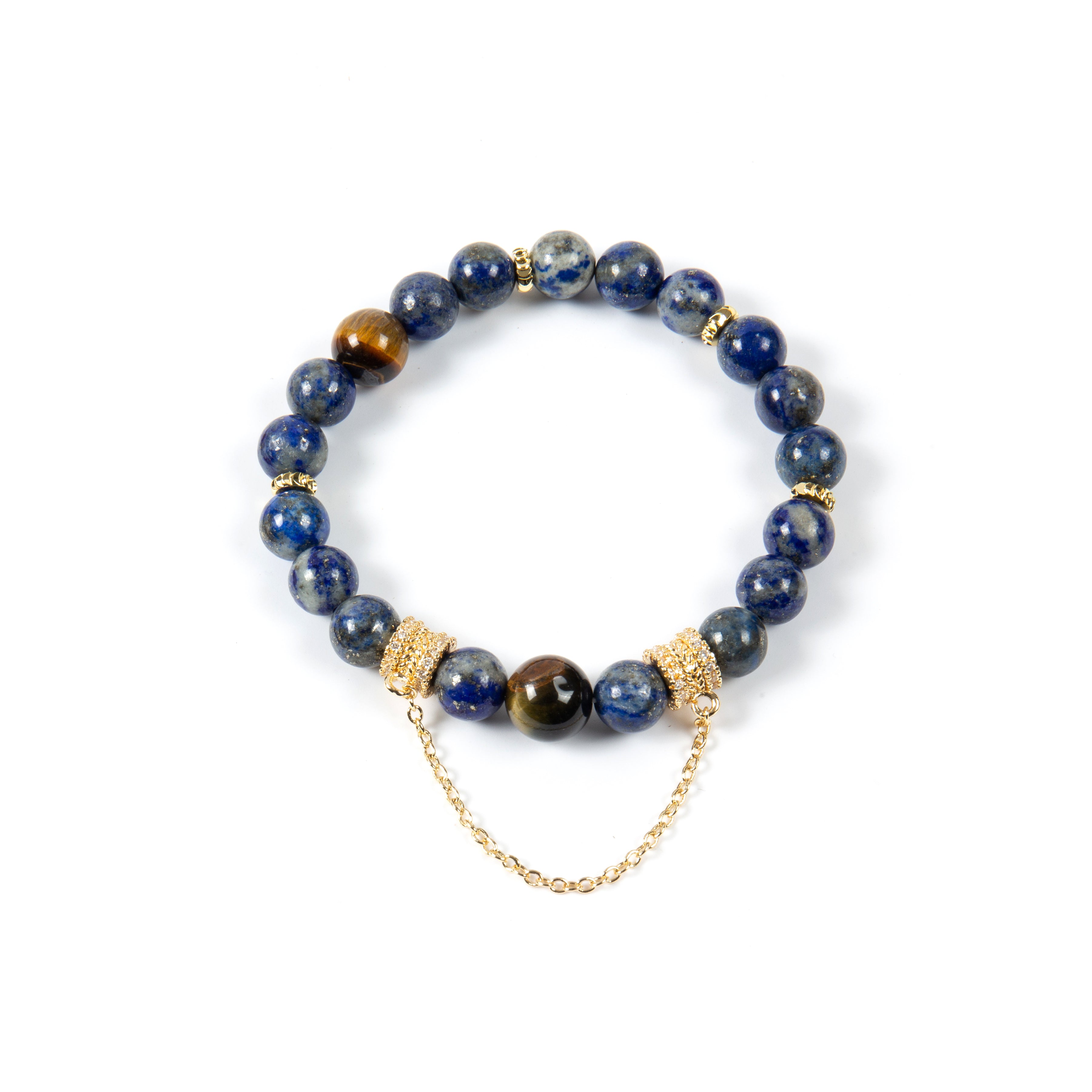 18K Gold Plated Lapis Cubic Zirconia Strech Bracelet B4318