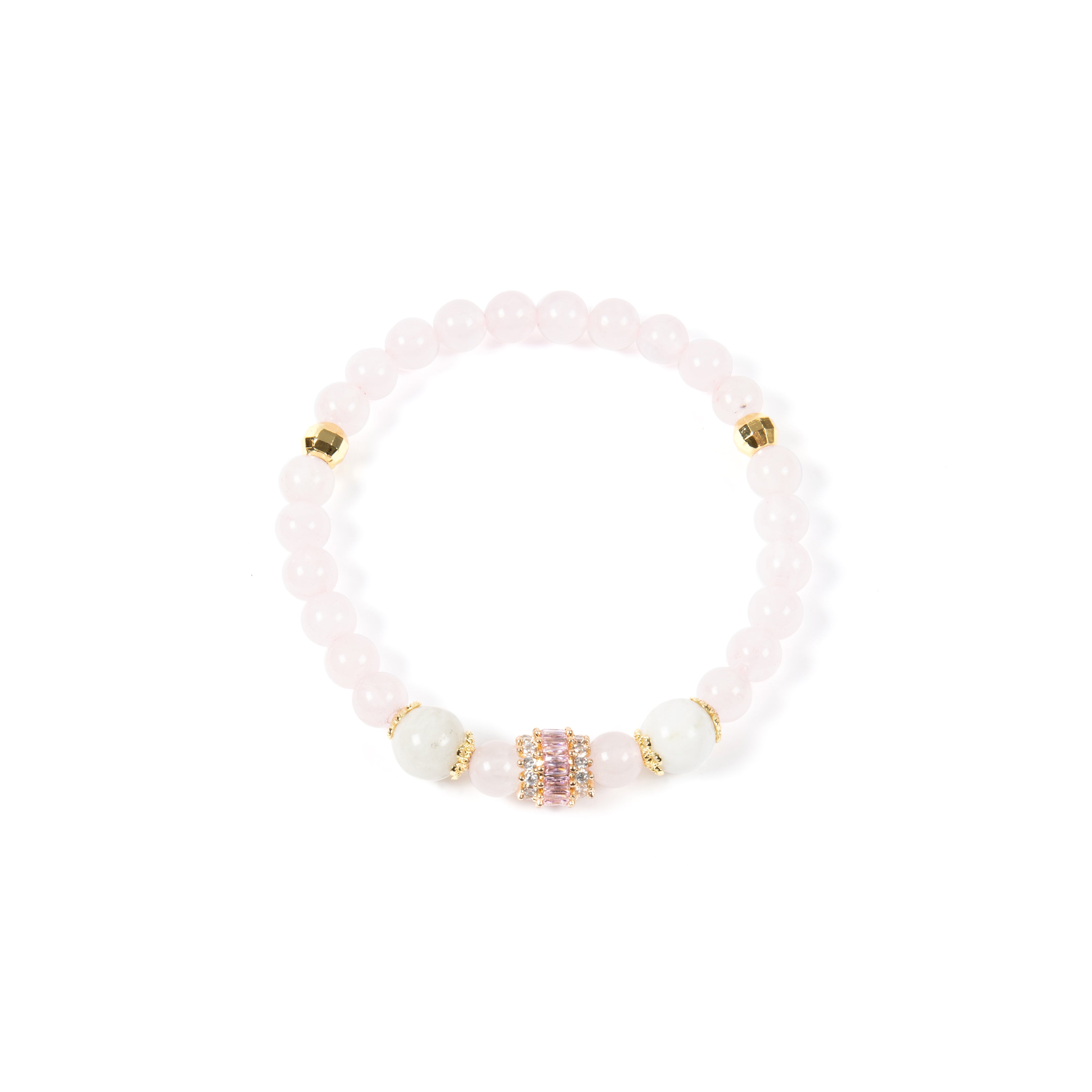 18K Gold Plated Rose Quartz Cubic Zirconia Strech Bracelet B4322