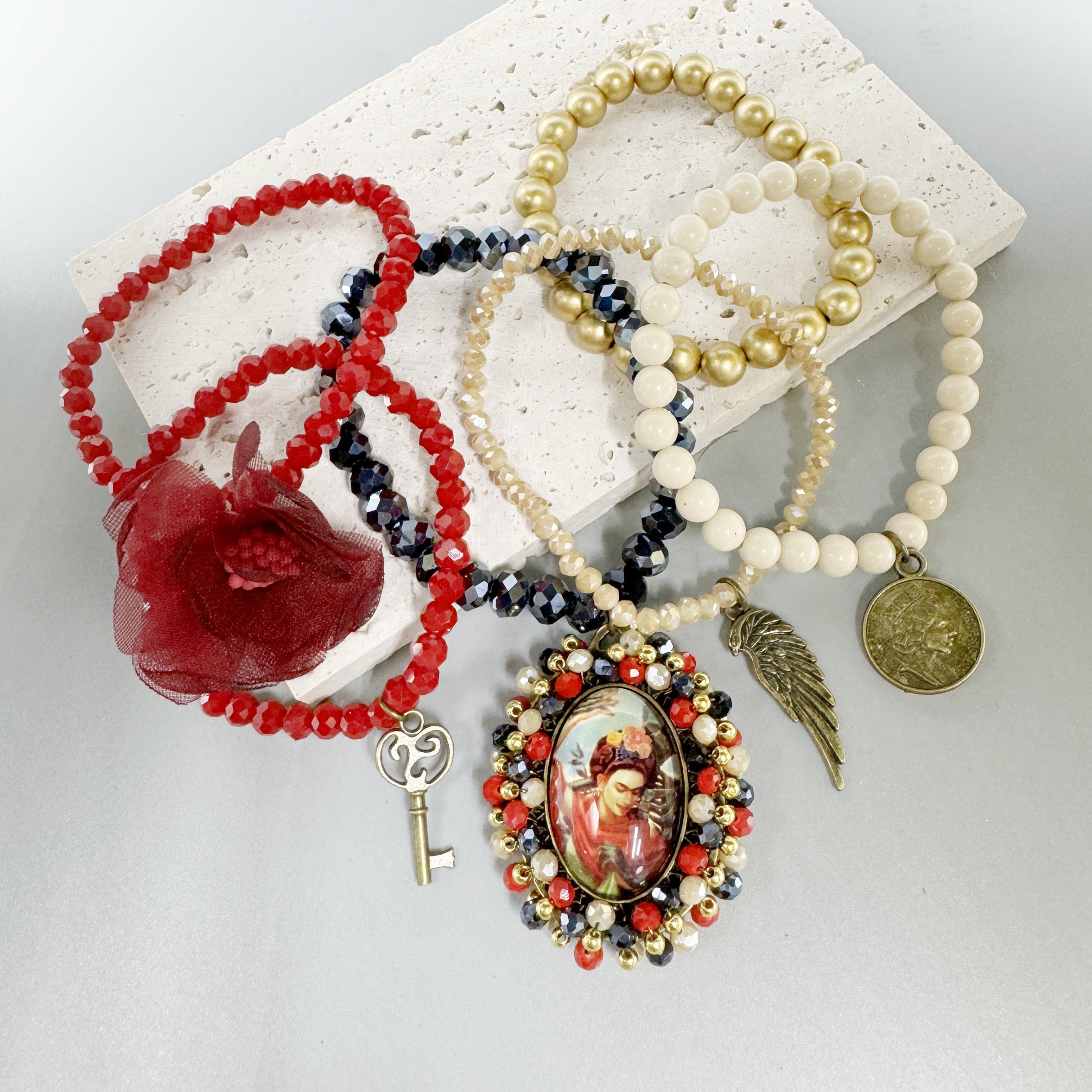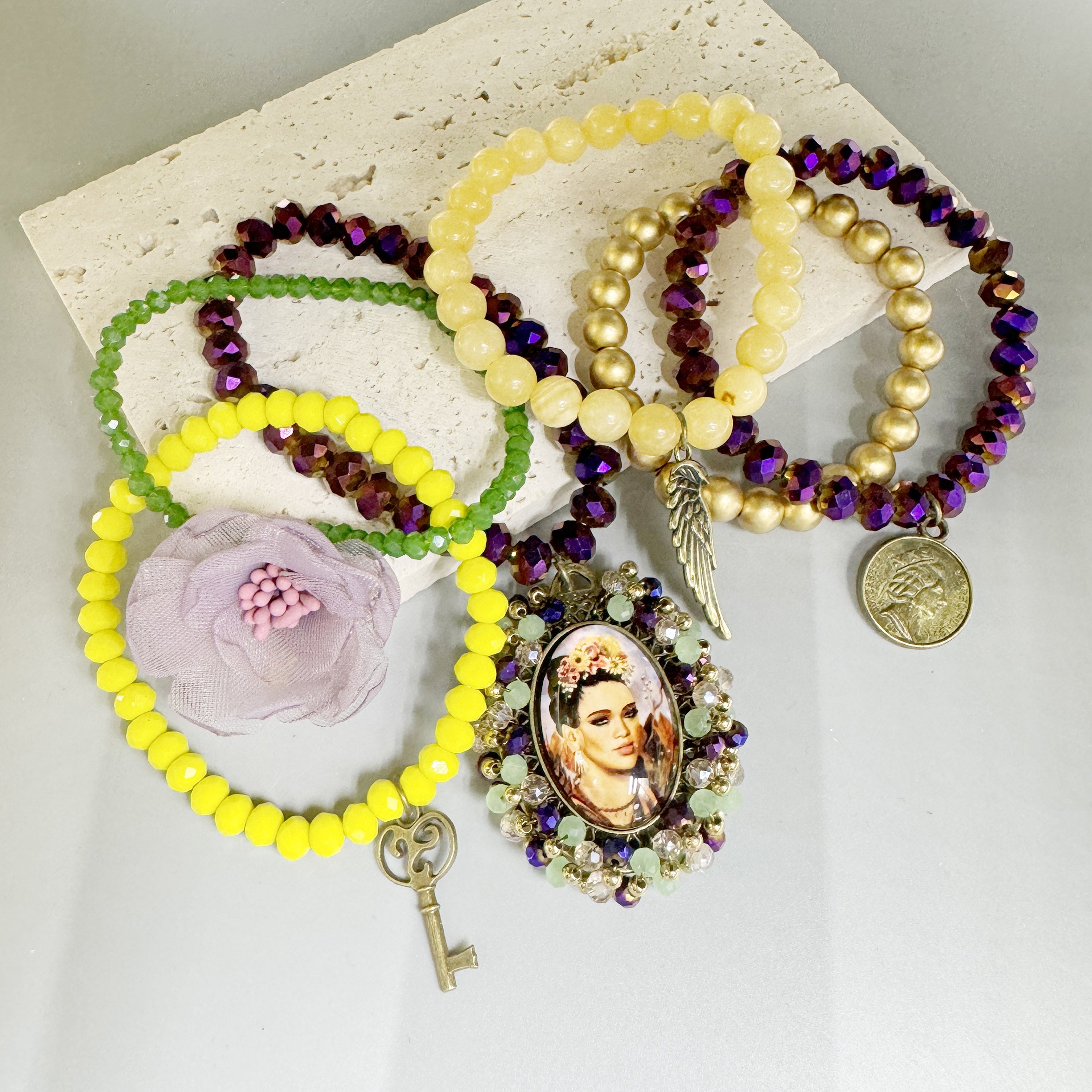 Random Frida Seed Bead Braided Bead Bracelet Set B4066-Set