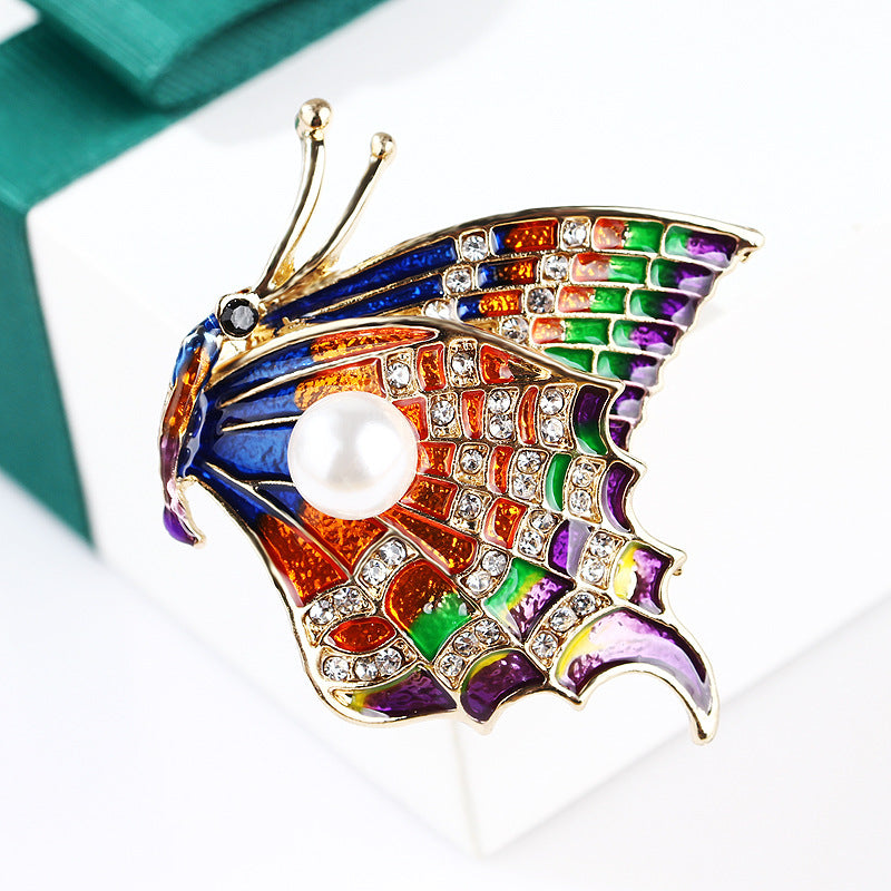 3. Butterfly Pearl Rhinestone Brooch PA4840