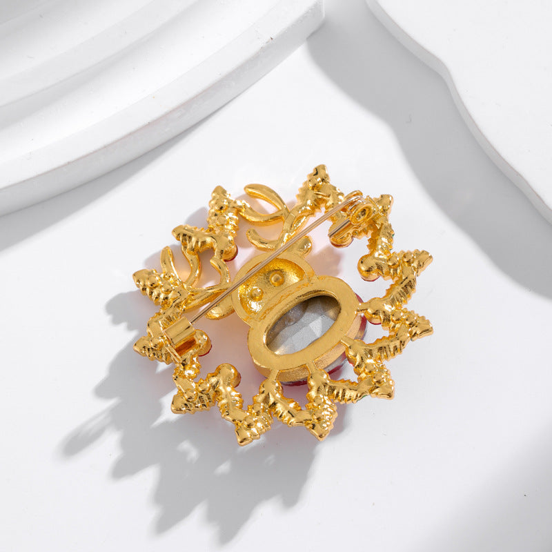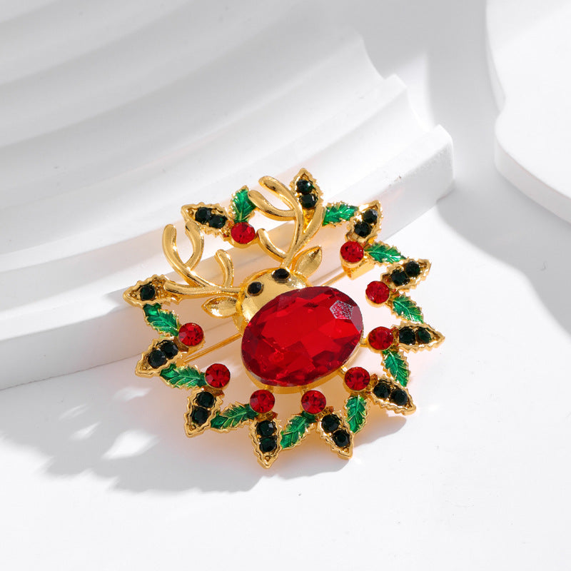 Deer Head Wreath Rhinestone Alloy Brooch PA5716