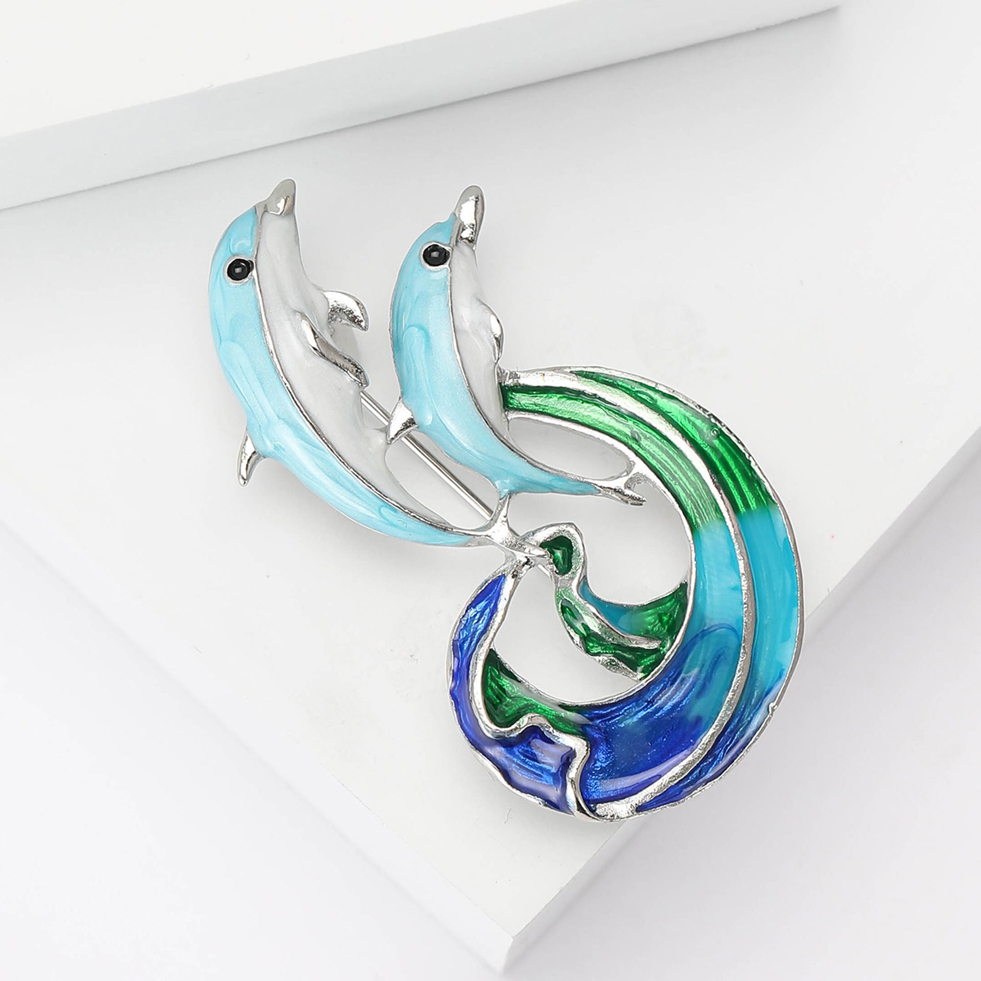 Double Dolphins Alloy Rhinestone Brooch PA5775