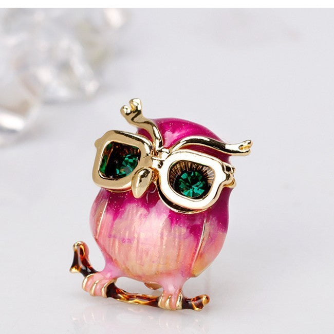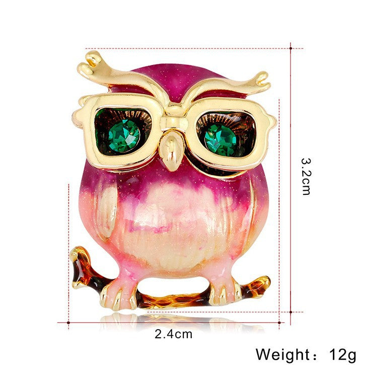 3. Glass Owl Alloy Rhinestone Brooch PA5839
