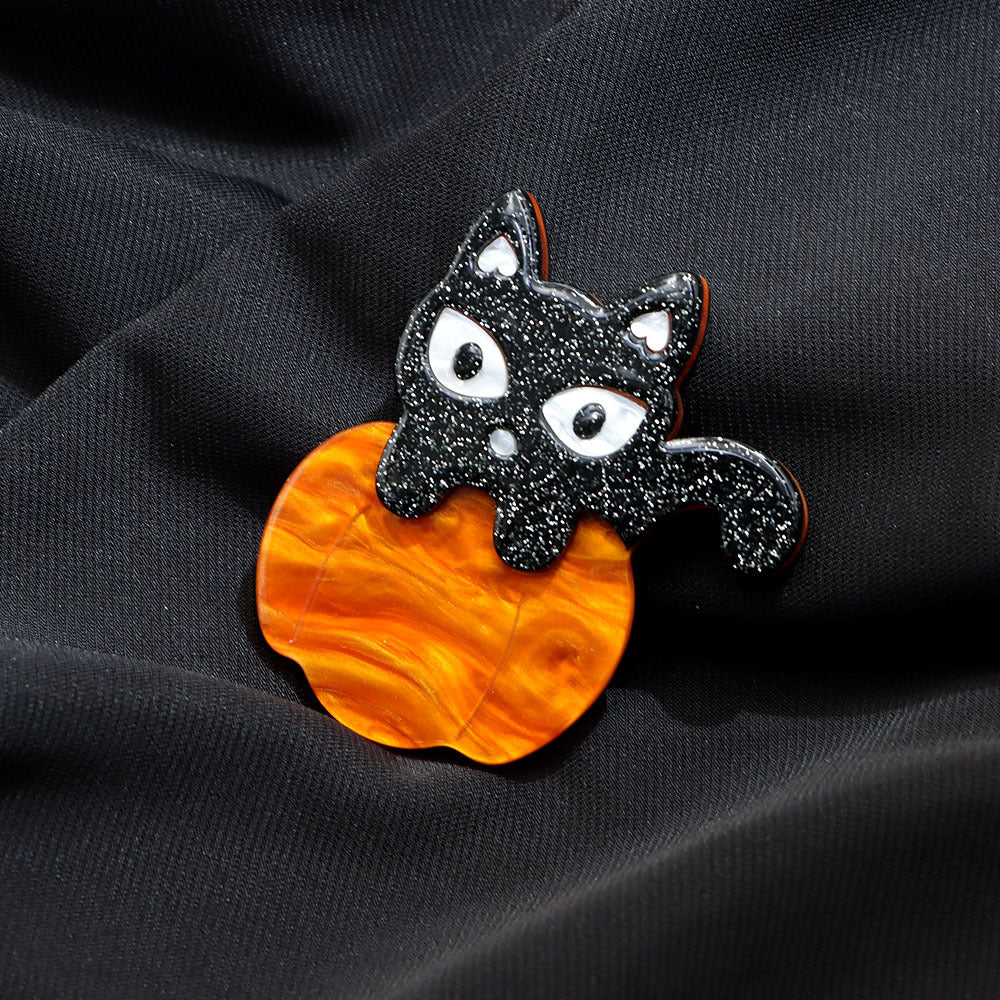 Halloween Little Pumpkin Cat Brooch PA5344