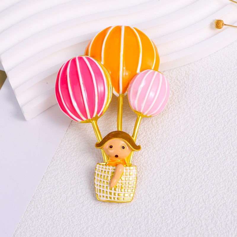 Hot Air Blloon and Girl Alloy Rhinestone Brooch PA5544