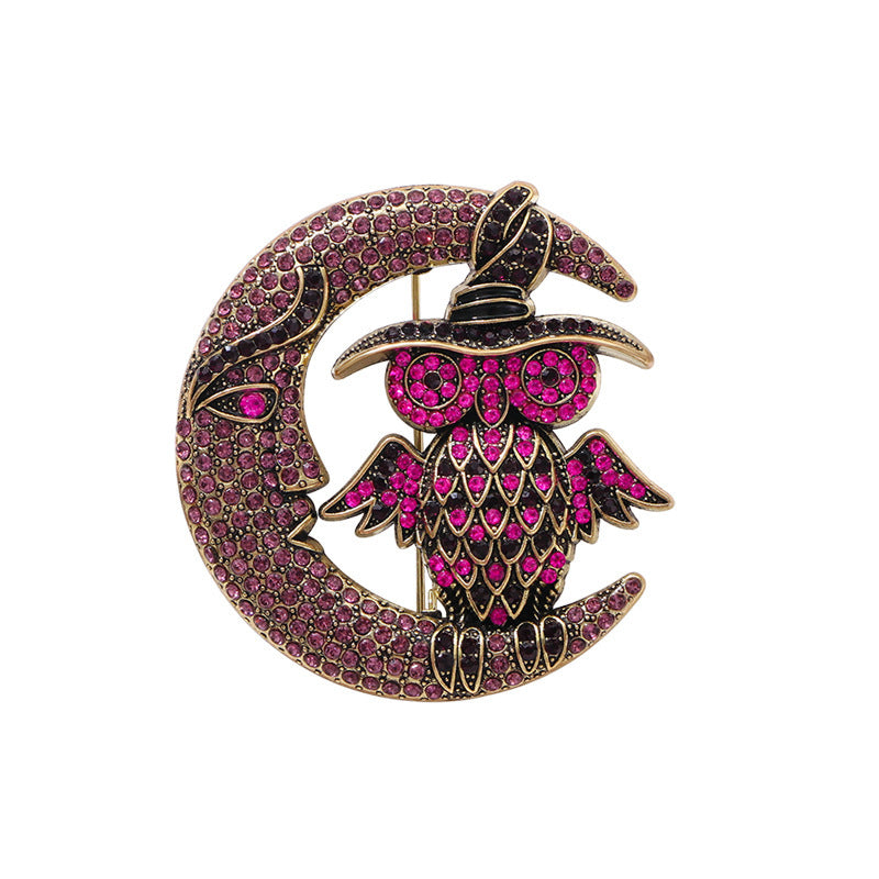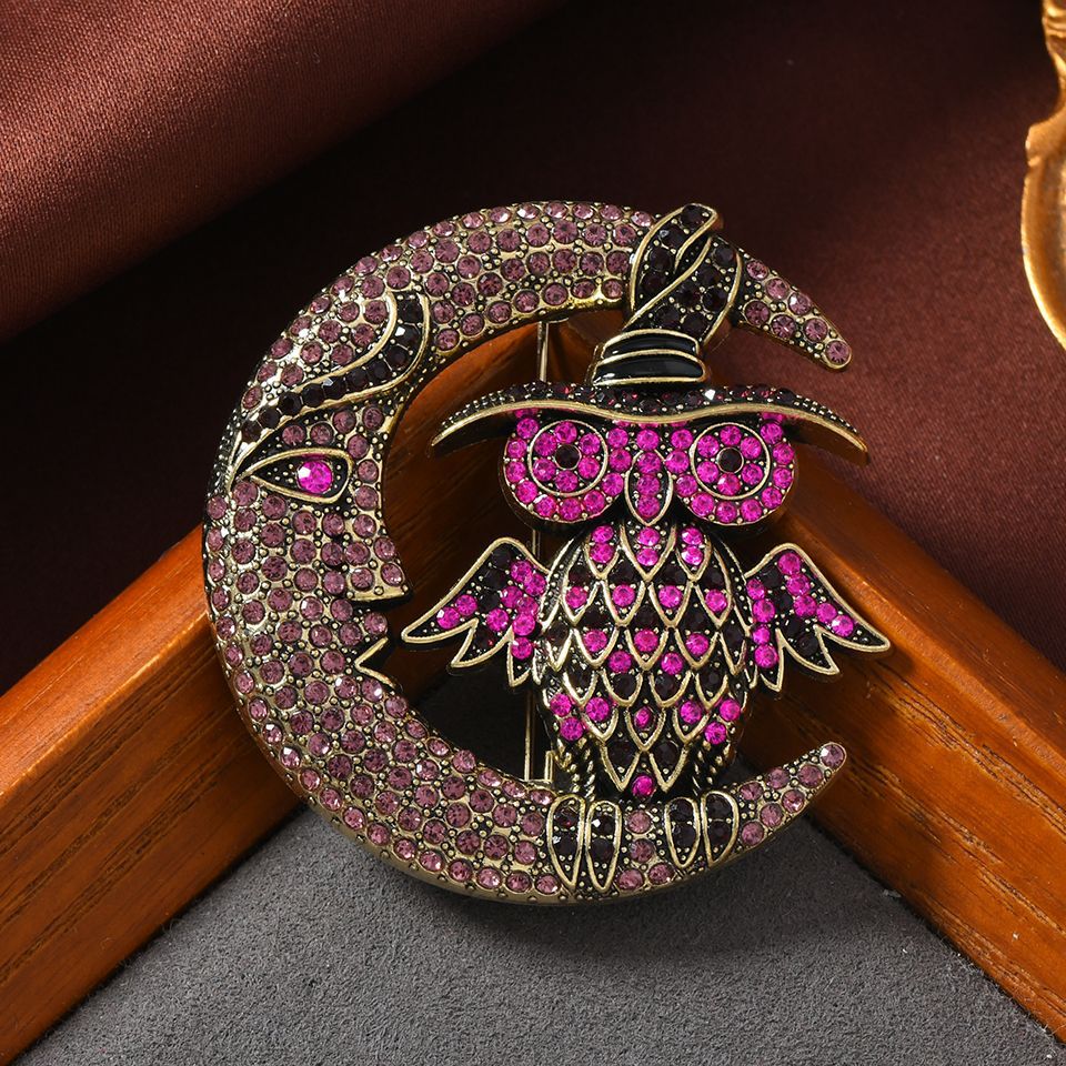 Owl and Moon Alloy Rhinestone Brooch PA5916