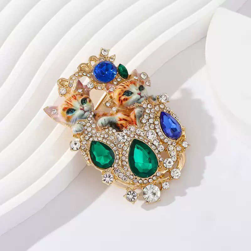 Pumpkin Carriage Cat Alloy Rhinestone Brooch PA5955