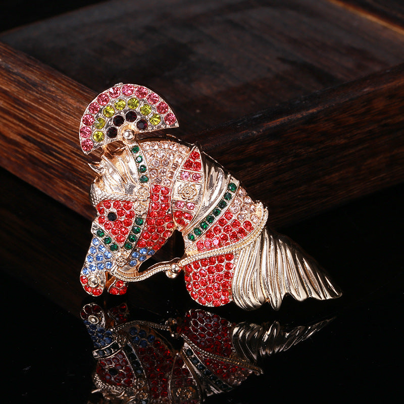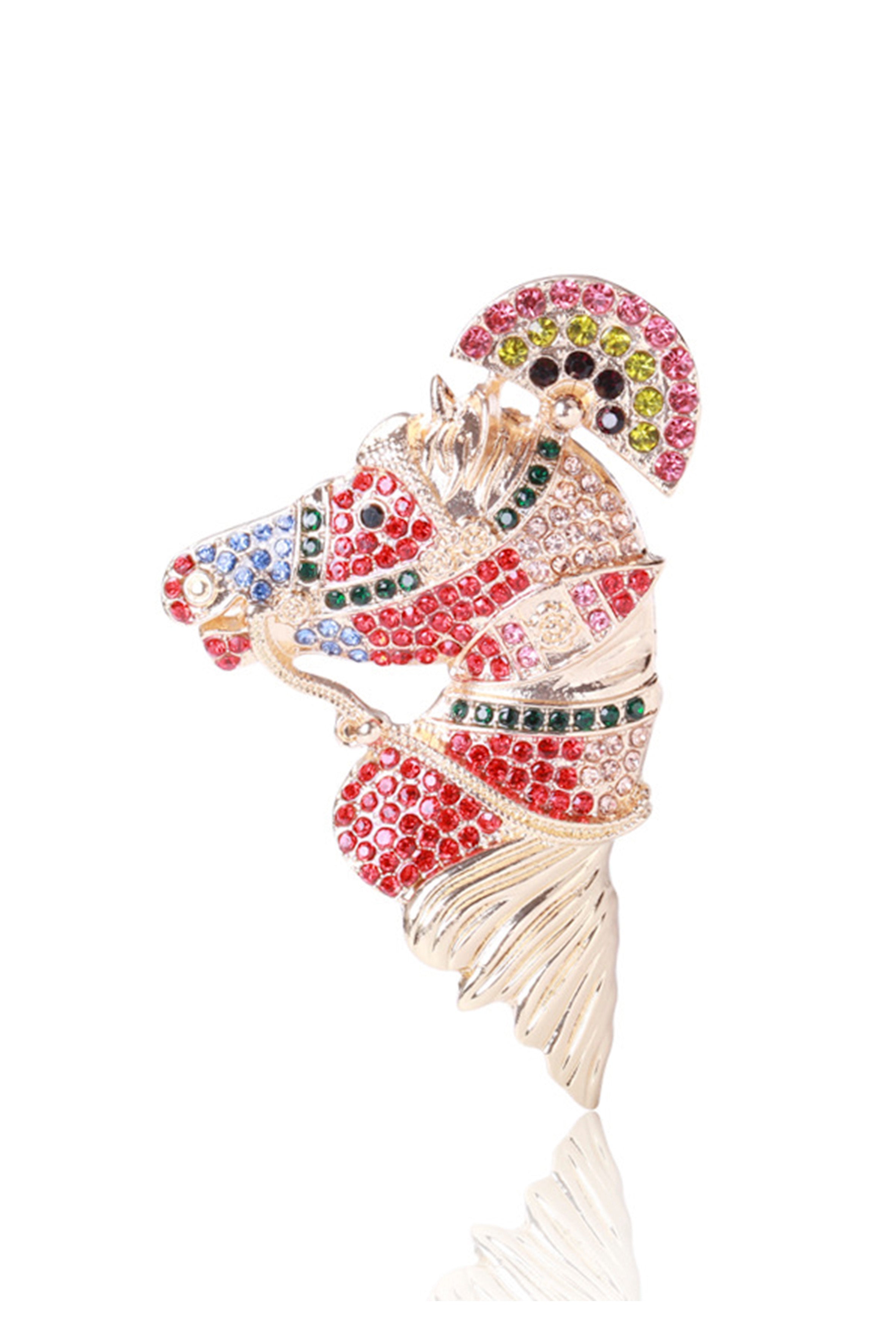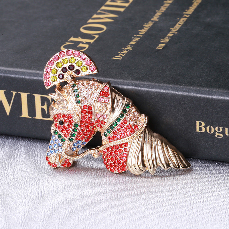 Rainbow Horse Head Rhinestone Brooch PA4065