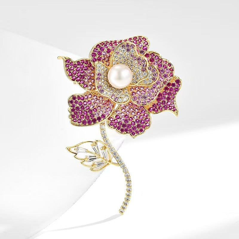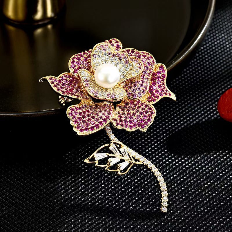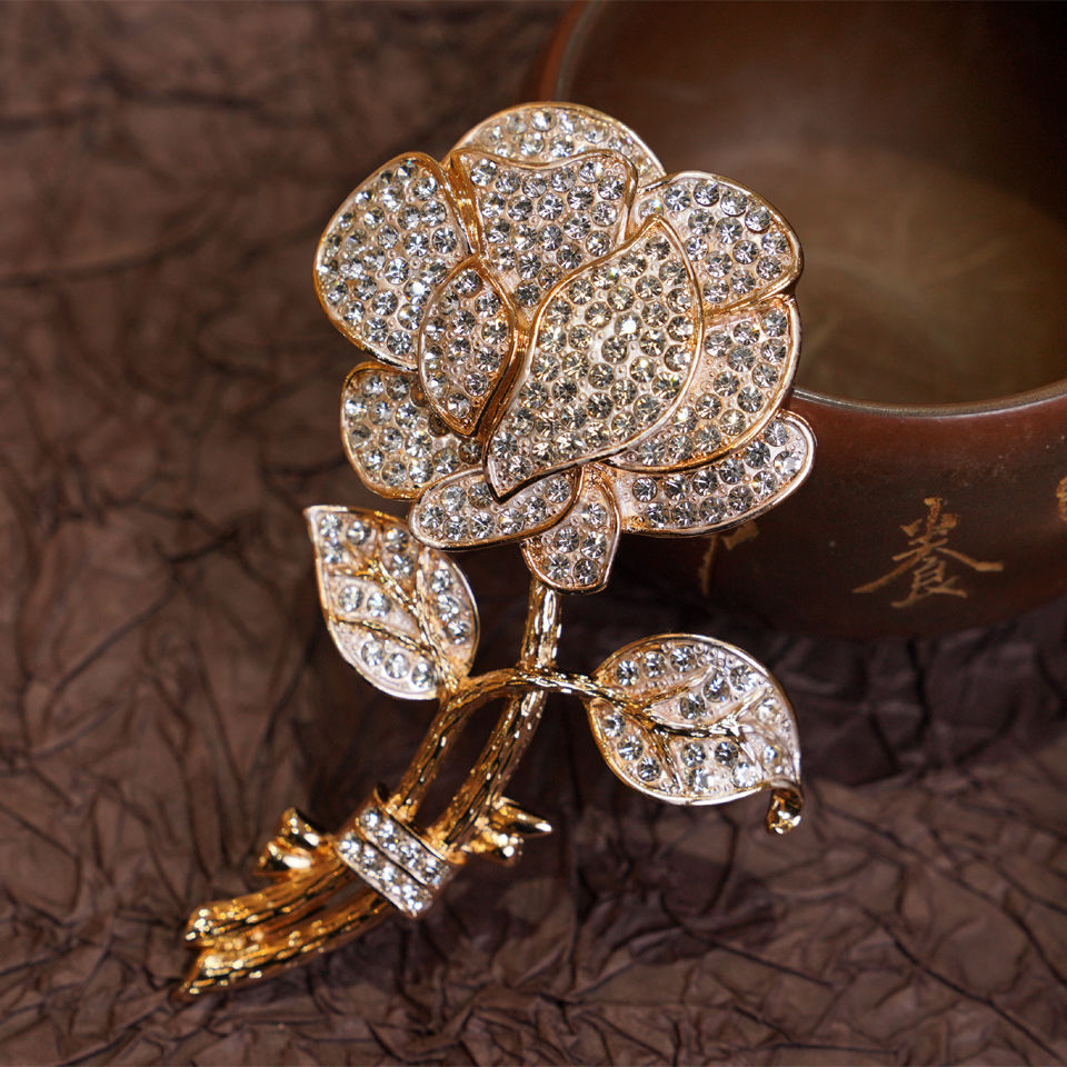 Rose Rhinestone Alloy Brooch PA5675