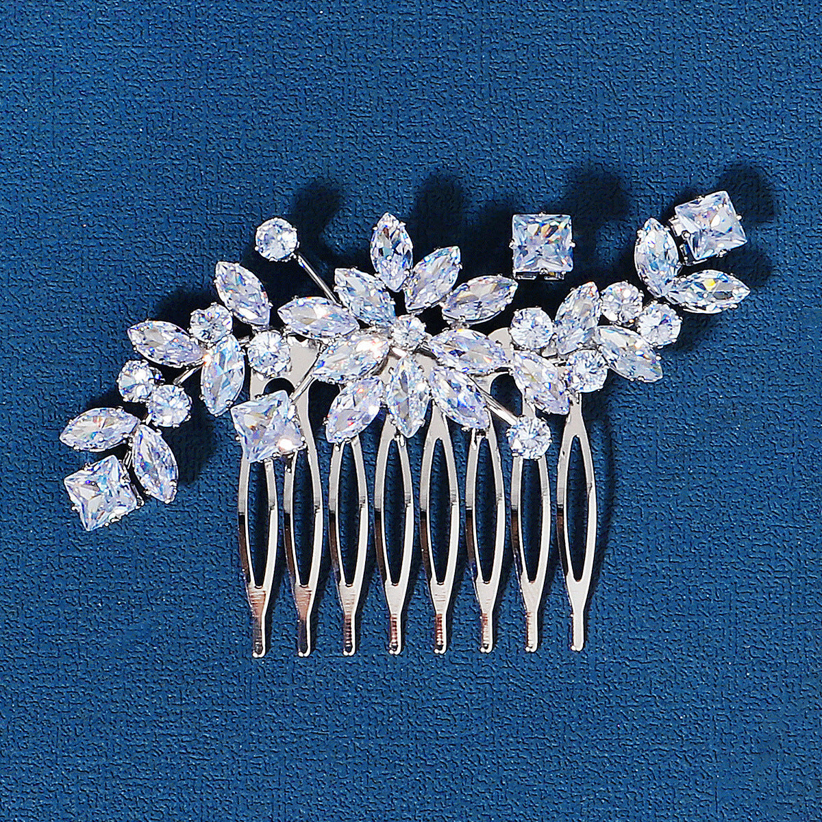 Cubic Zirconia Decor Bridal Hair Comb AL14955
