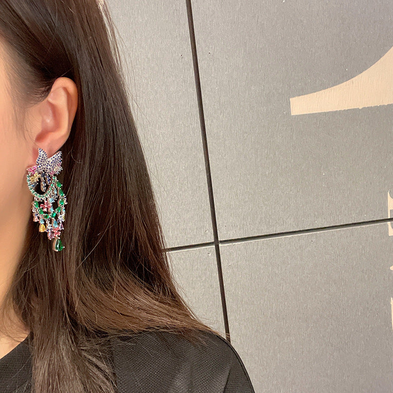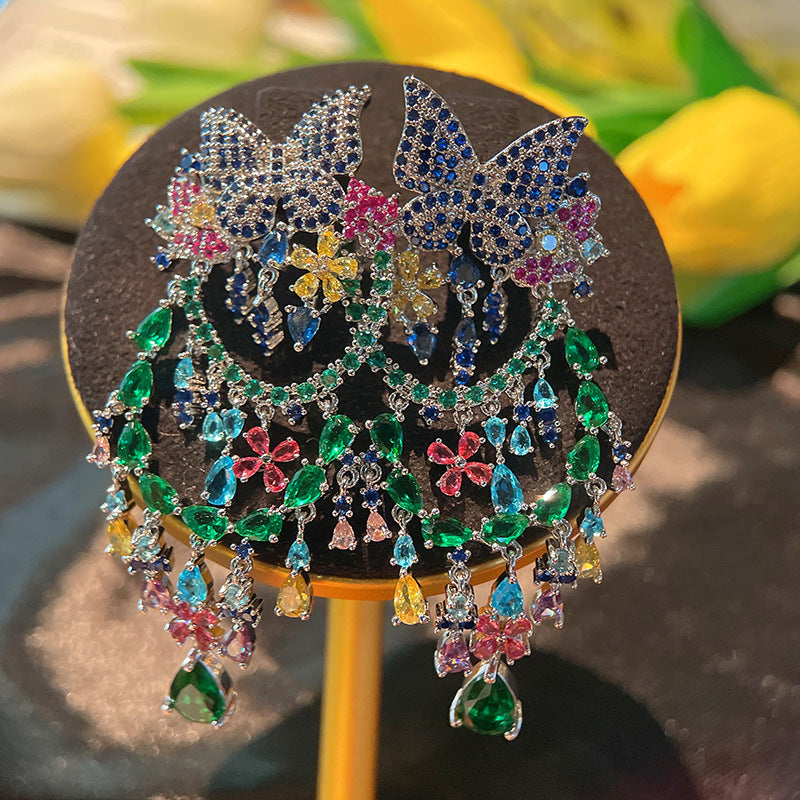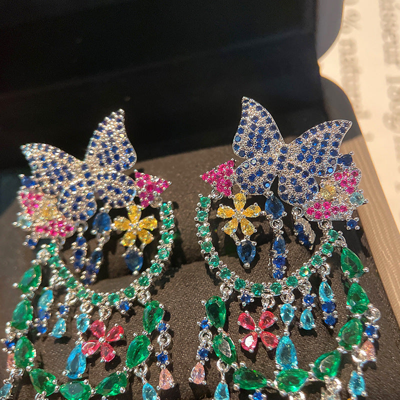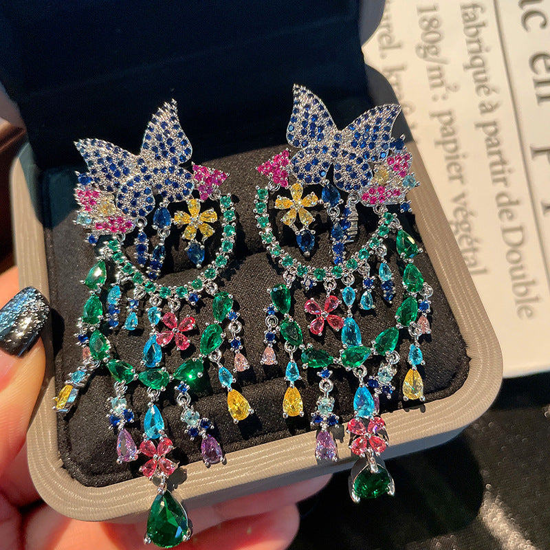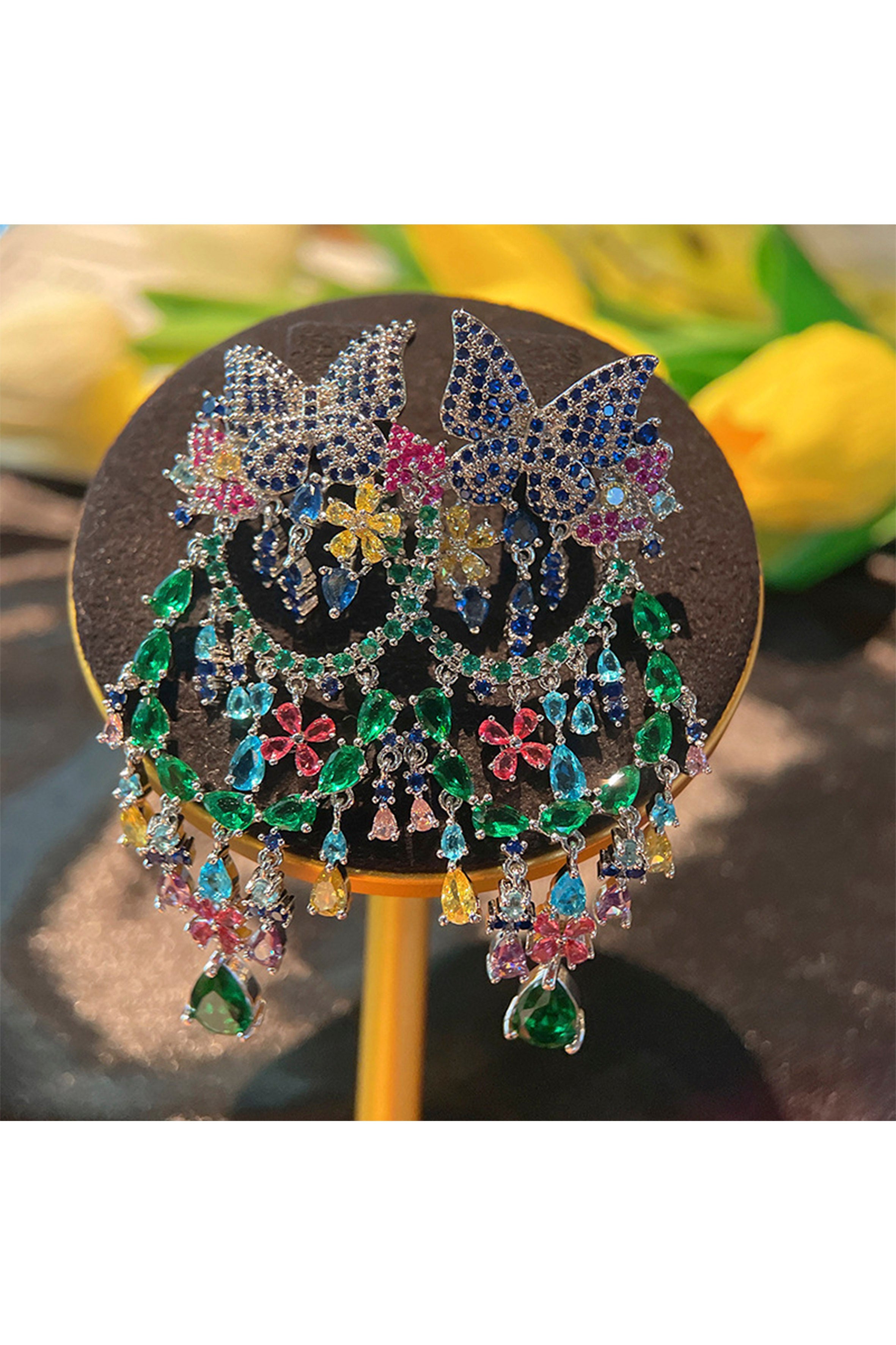 Butterfly Tassel Cubic Zirconia Earrings E6410