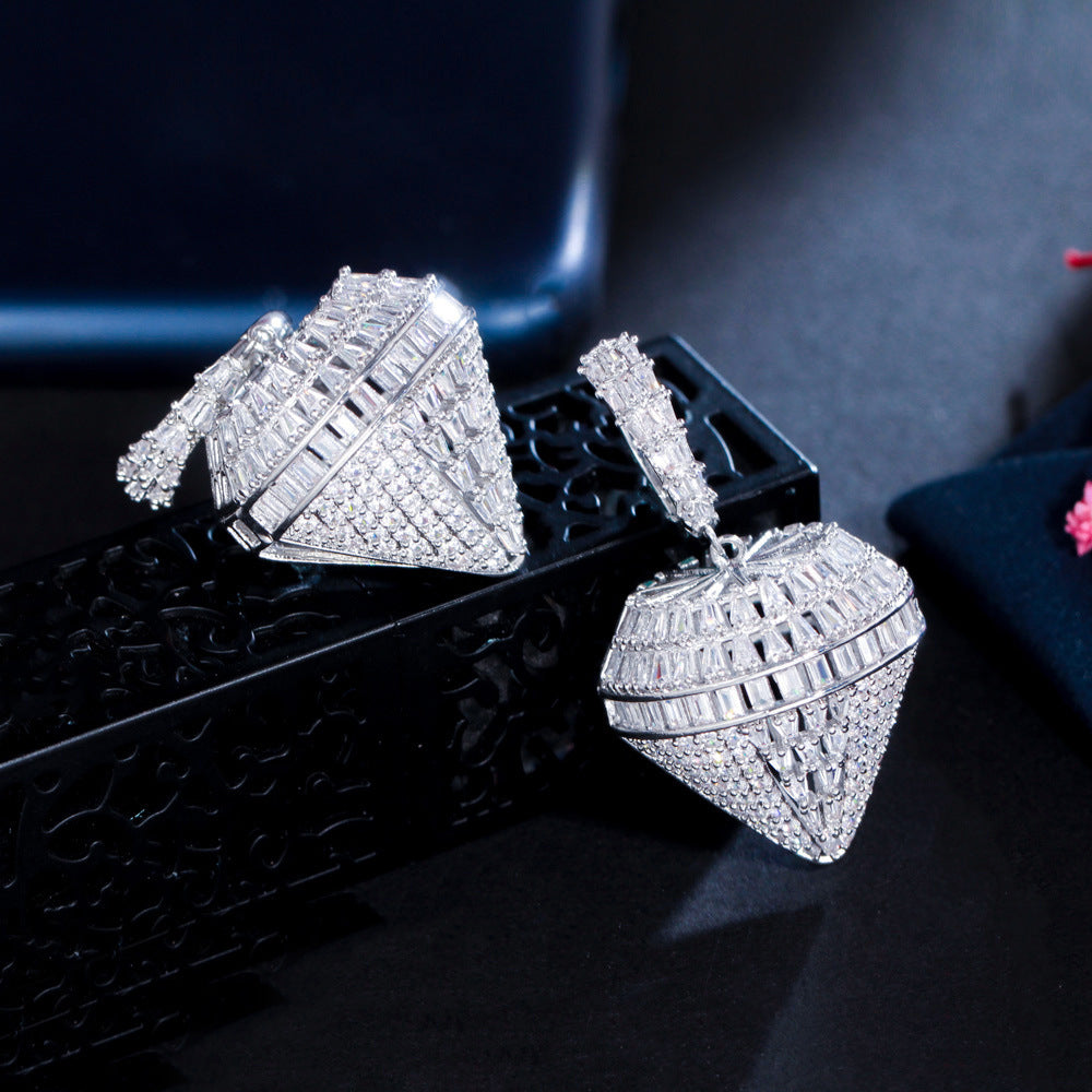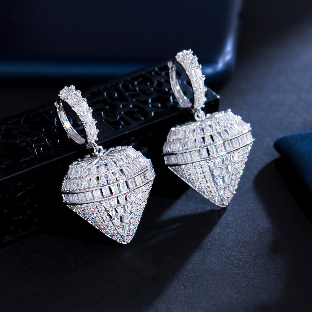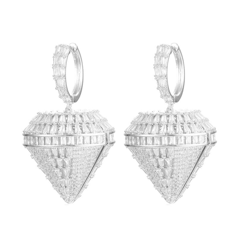 Diamond Shaped Cubic Zirconia Hoop Earrings E7346