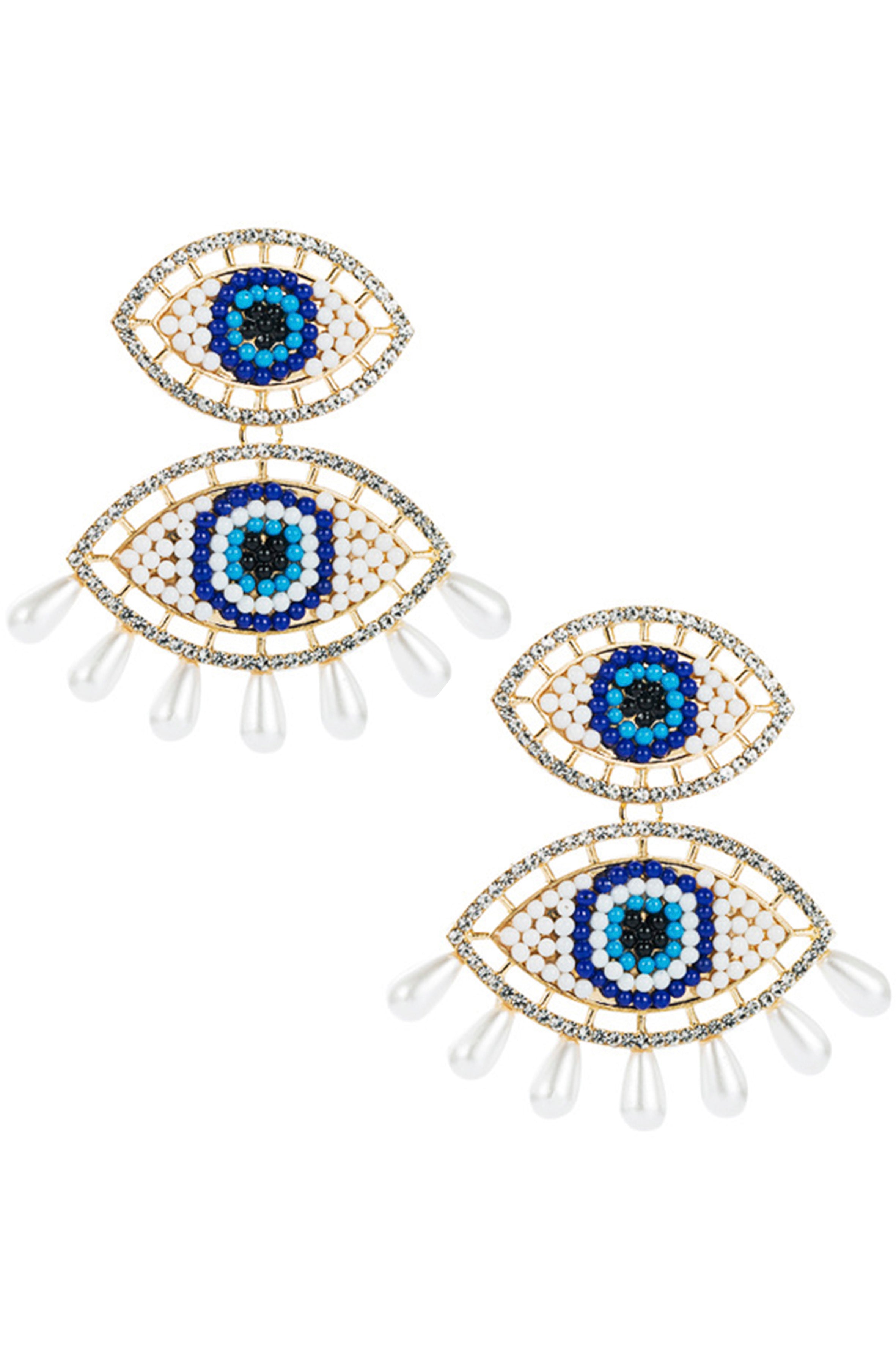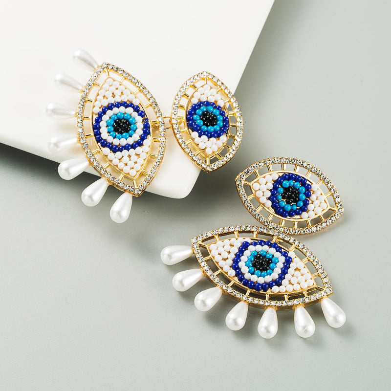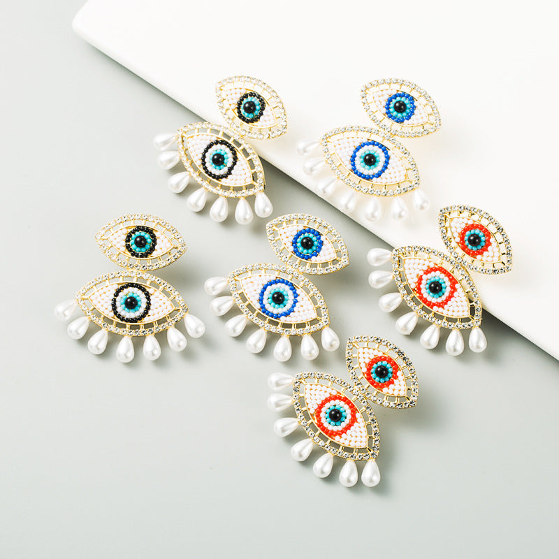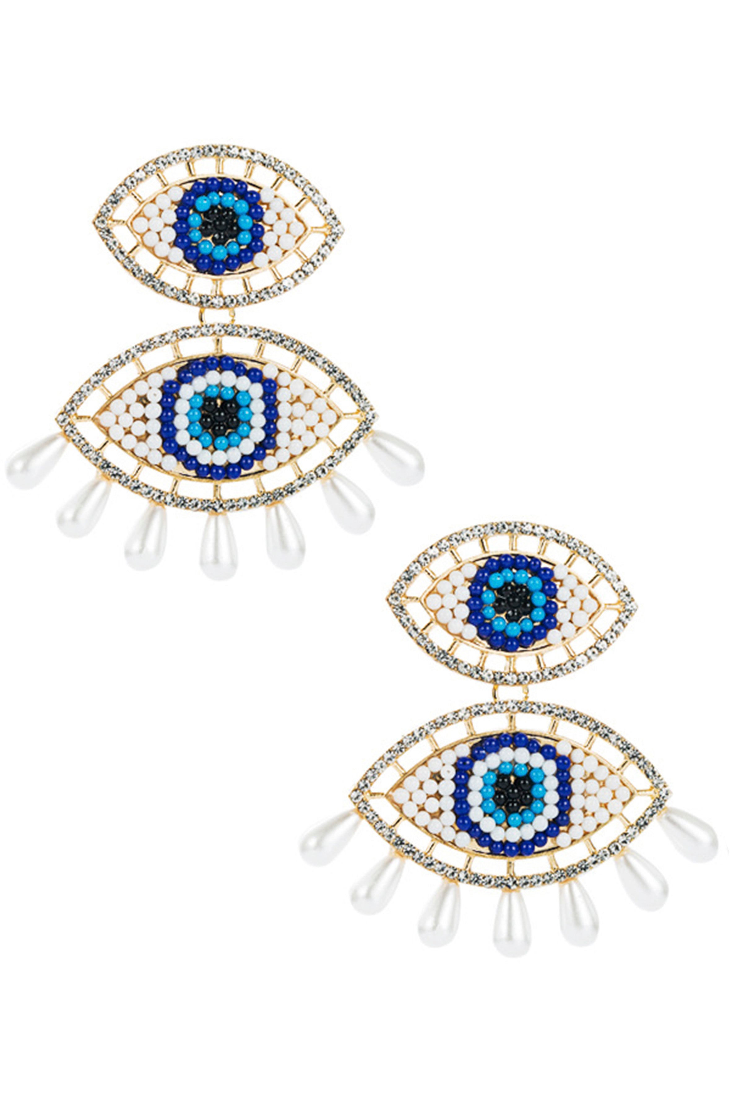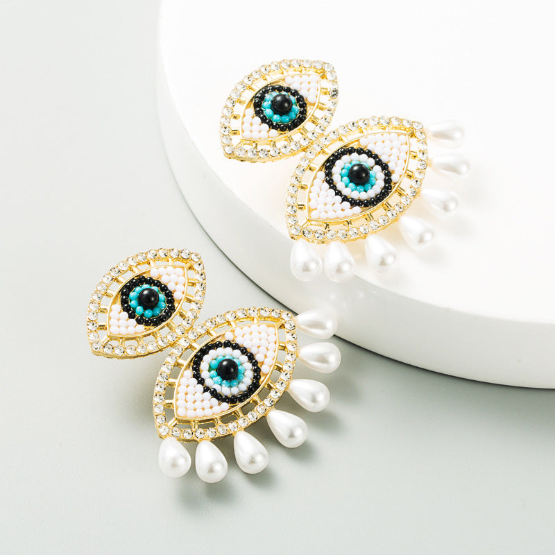 Against Evil Eye Pearl Tassel Earrings E3562