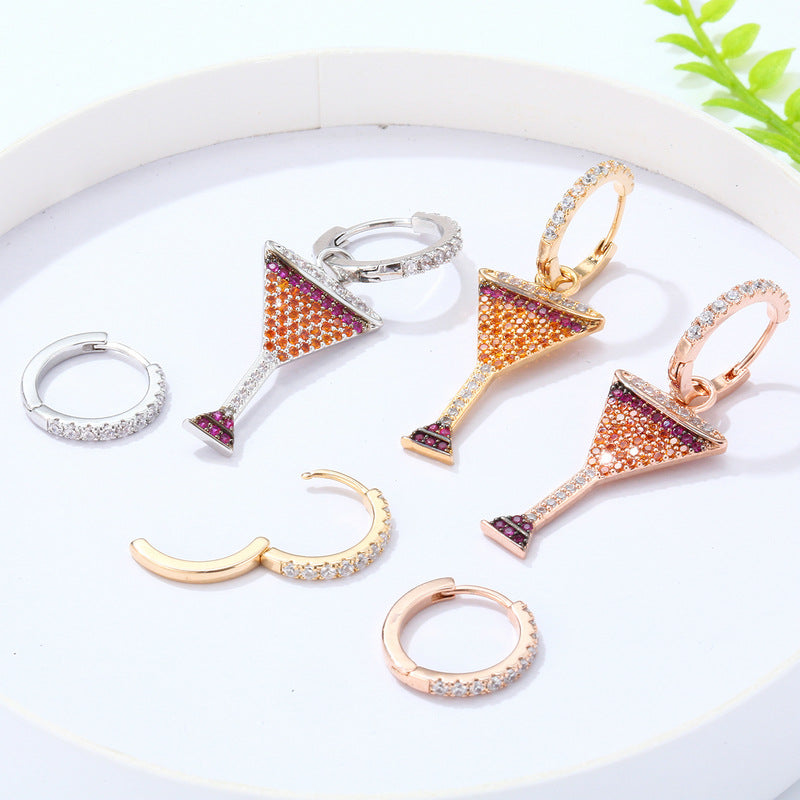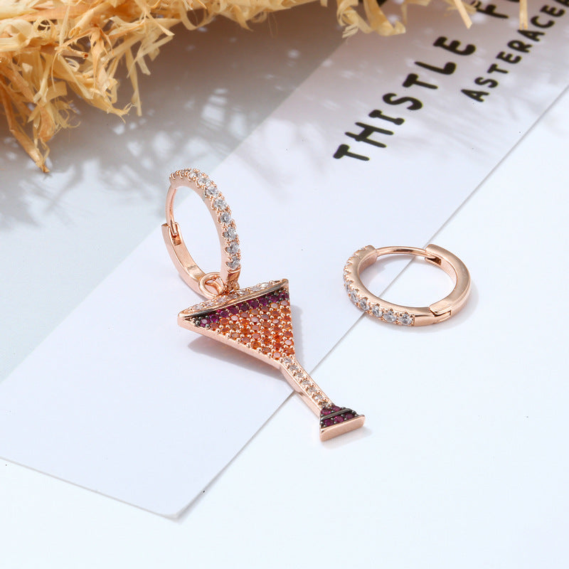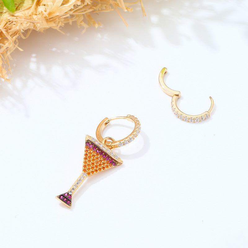 Cup Zircon Asymmetry Hoop Earrings E4253
