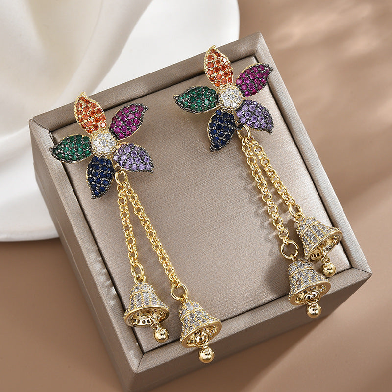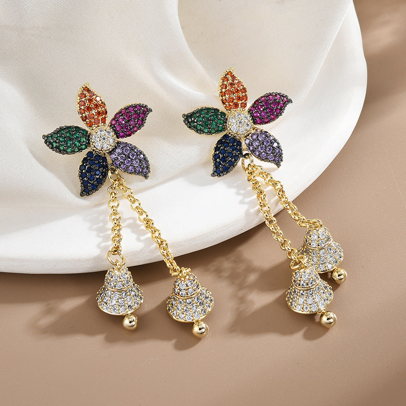 Flower Rectangle Cubic Zirconia Earrings E7926