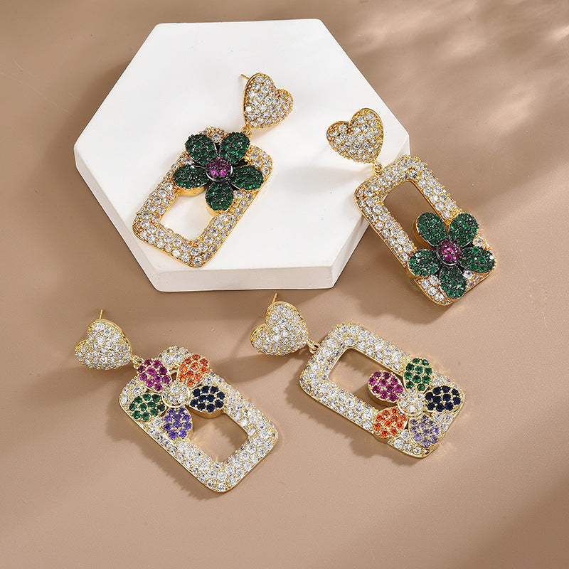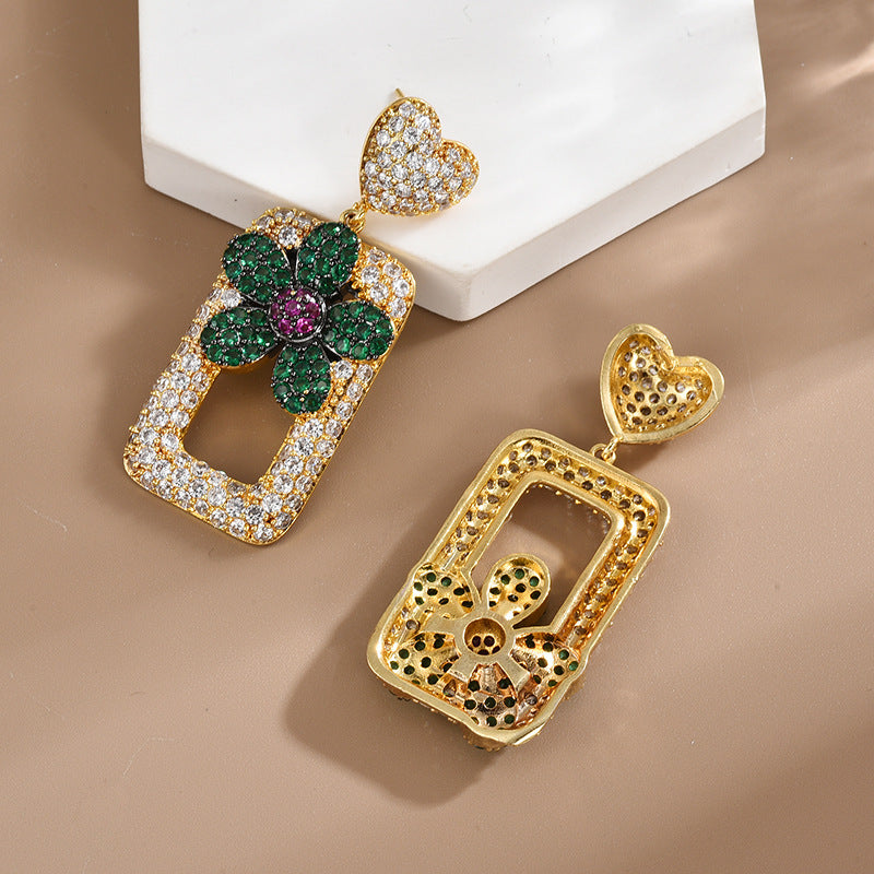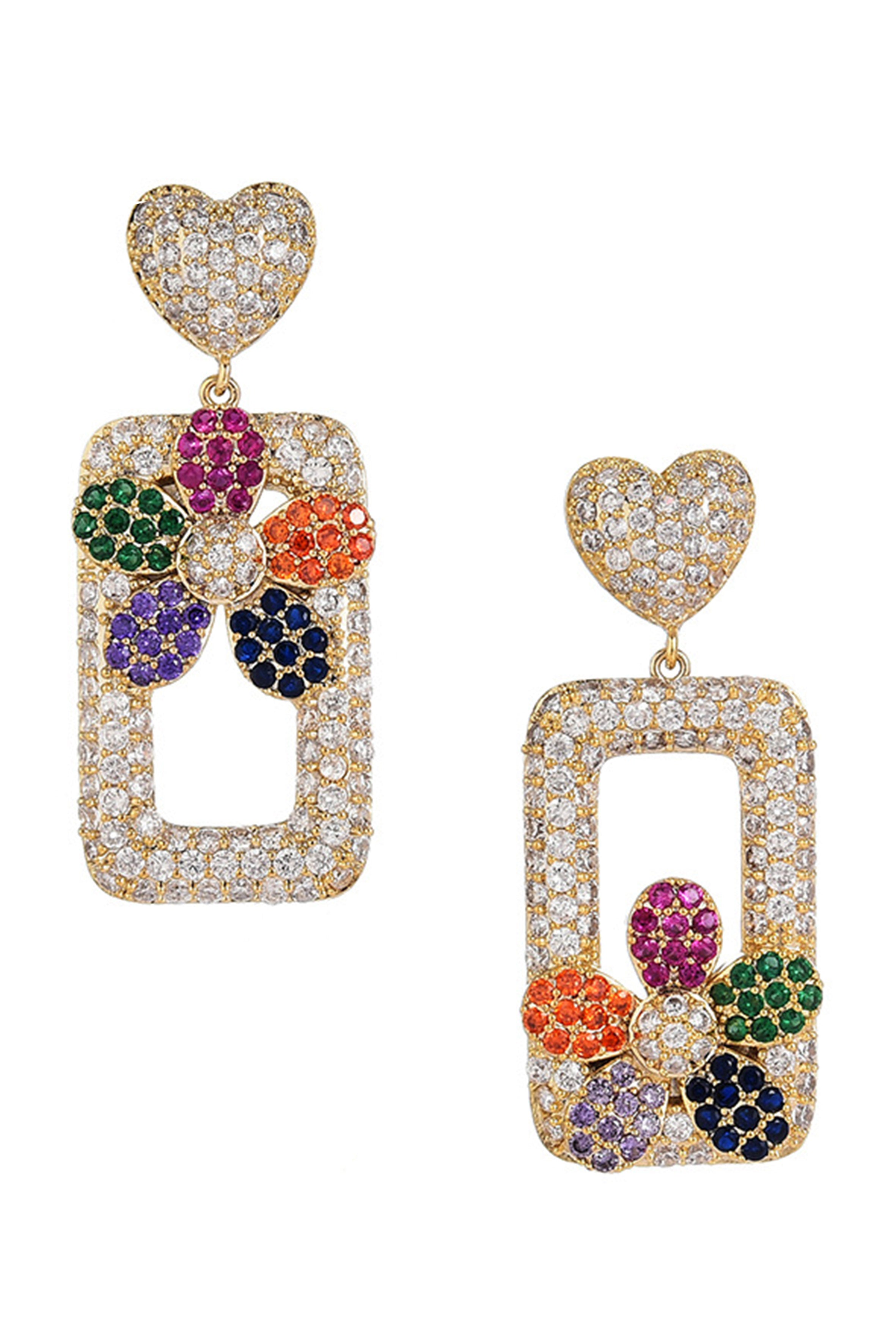 Flower Rectangle Cubic Zirconia Earrings E7926