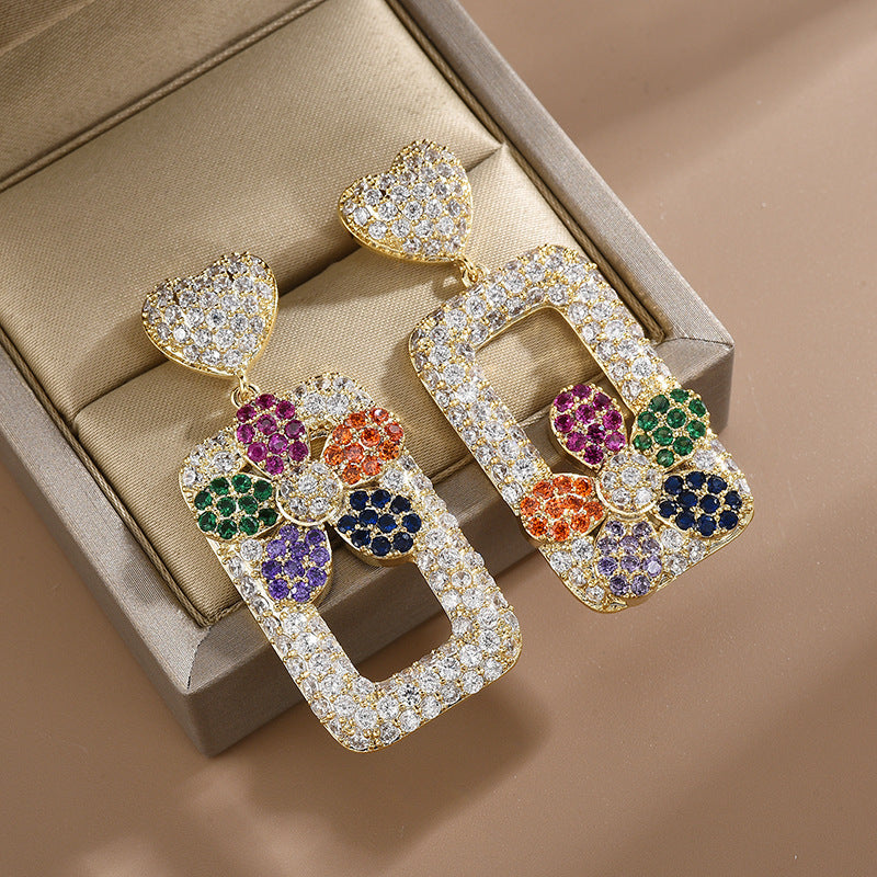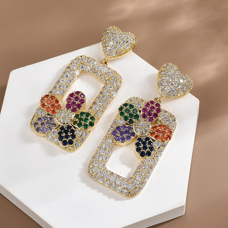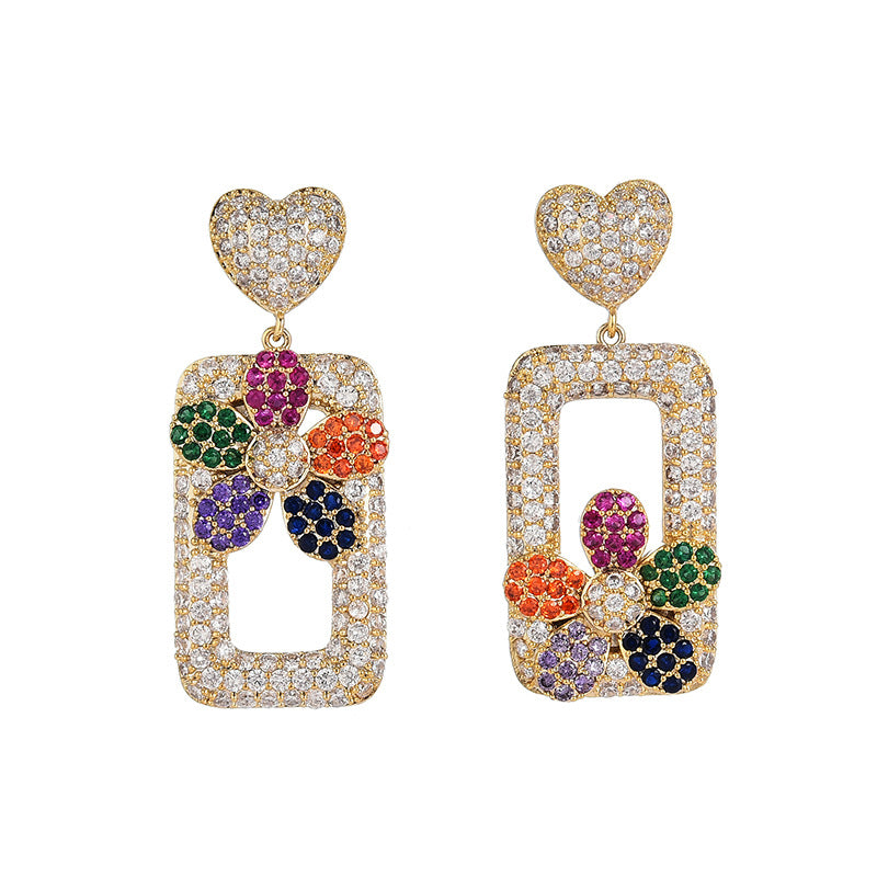 3. Flower Rectangle Cubic Zirconia Earrings E7926