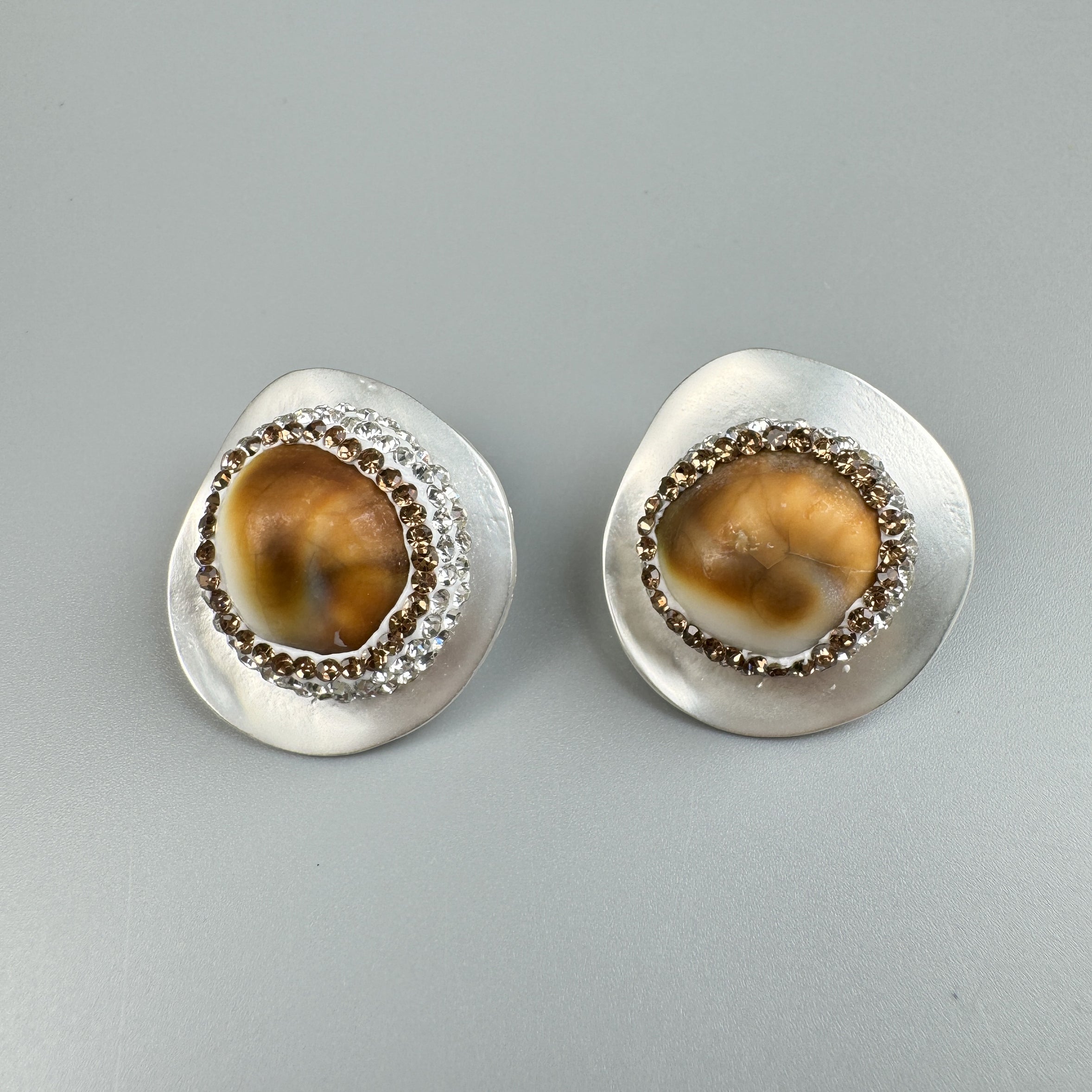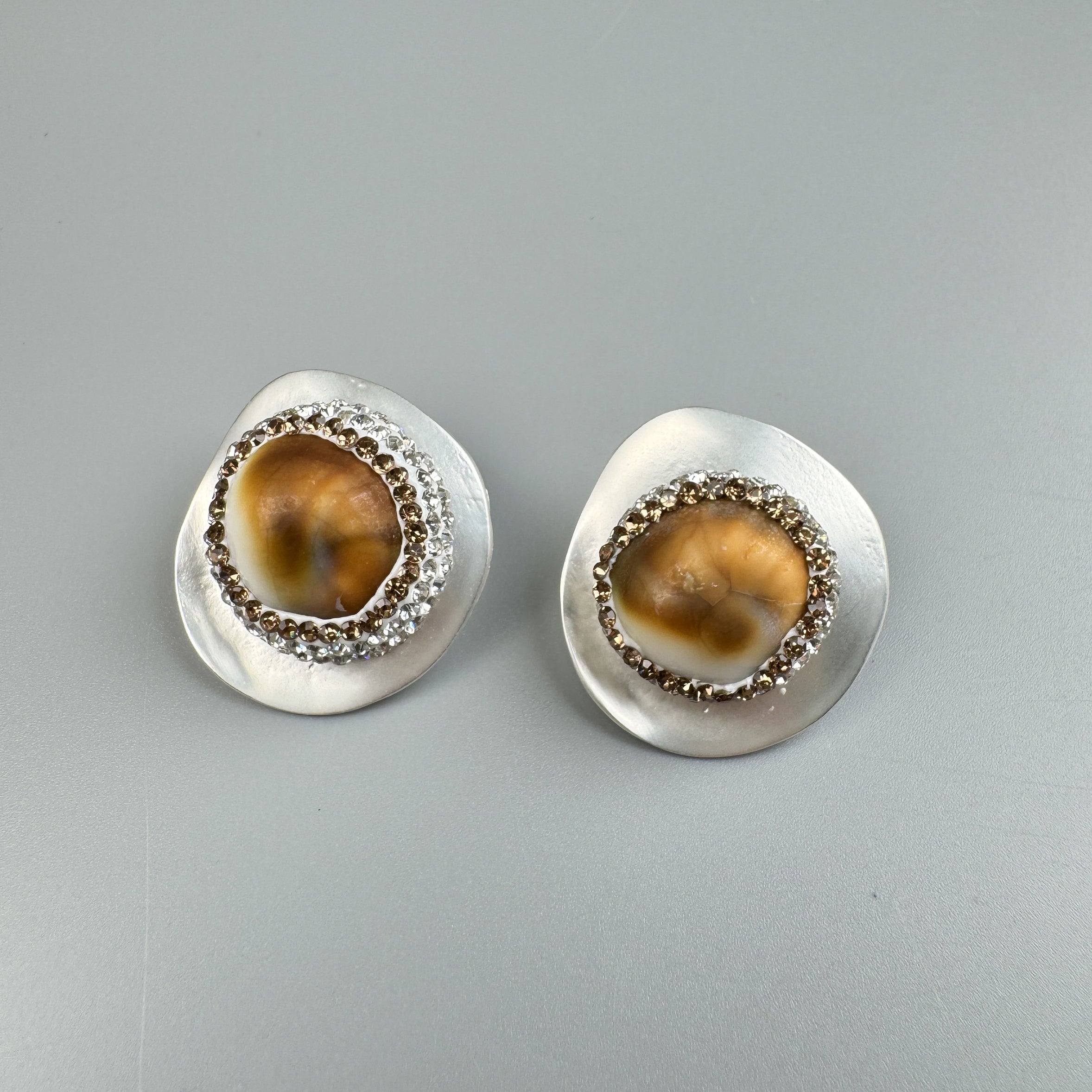 Geometric Shell Rhinestone Alloy Stud Earrings E8598