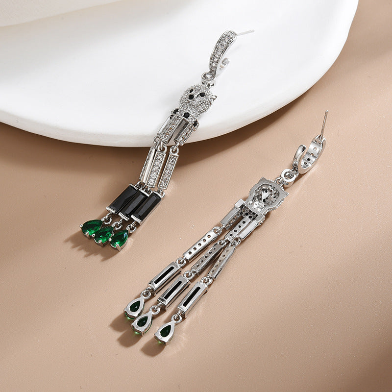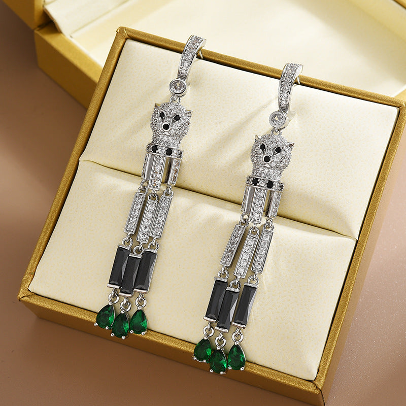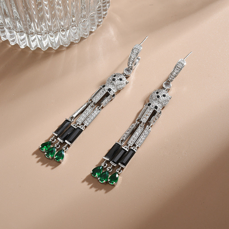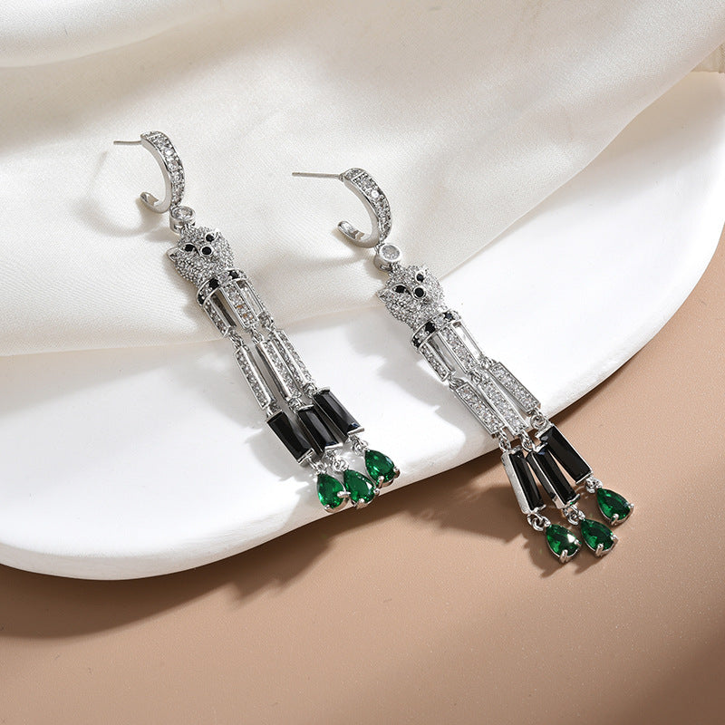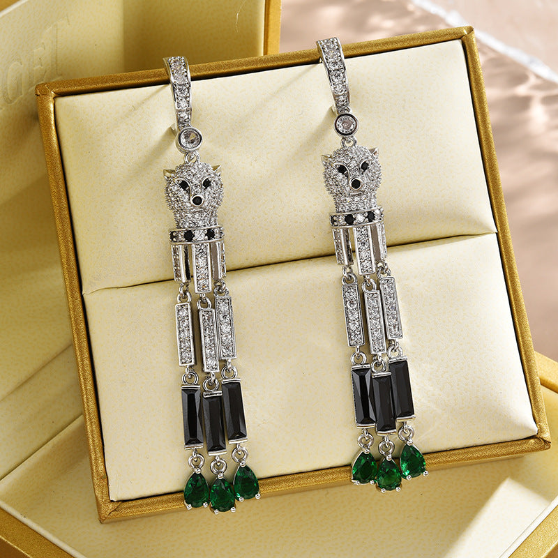 Leopard Tassel Cubic Zirconia Earrings E7922