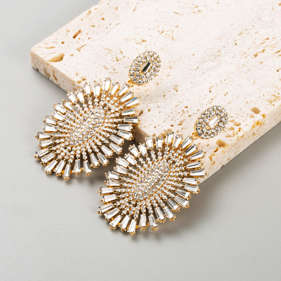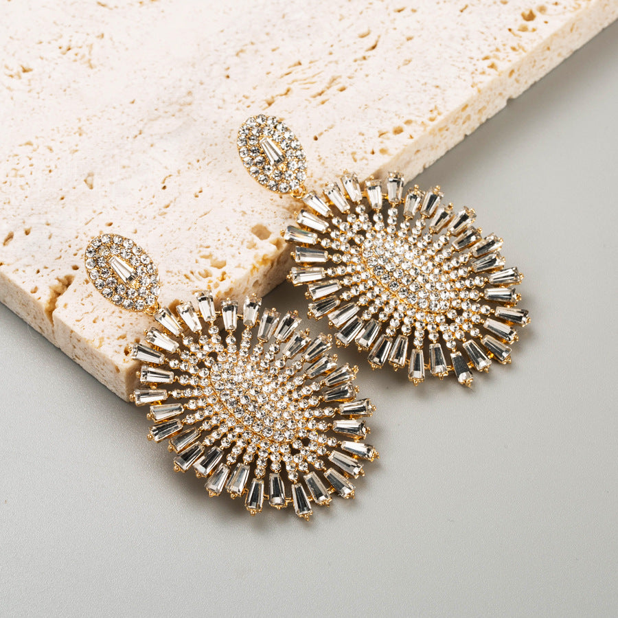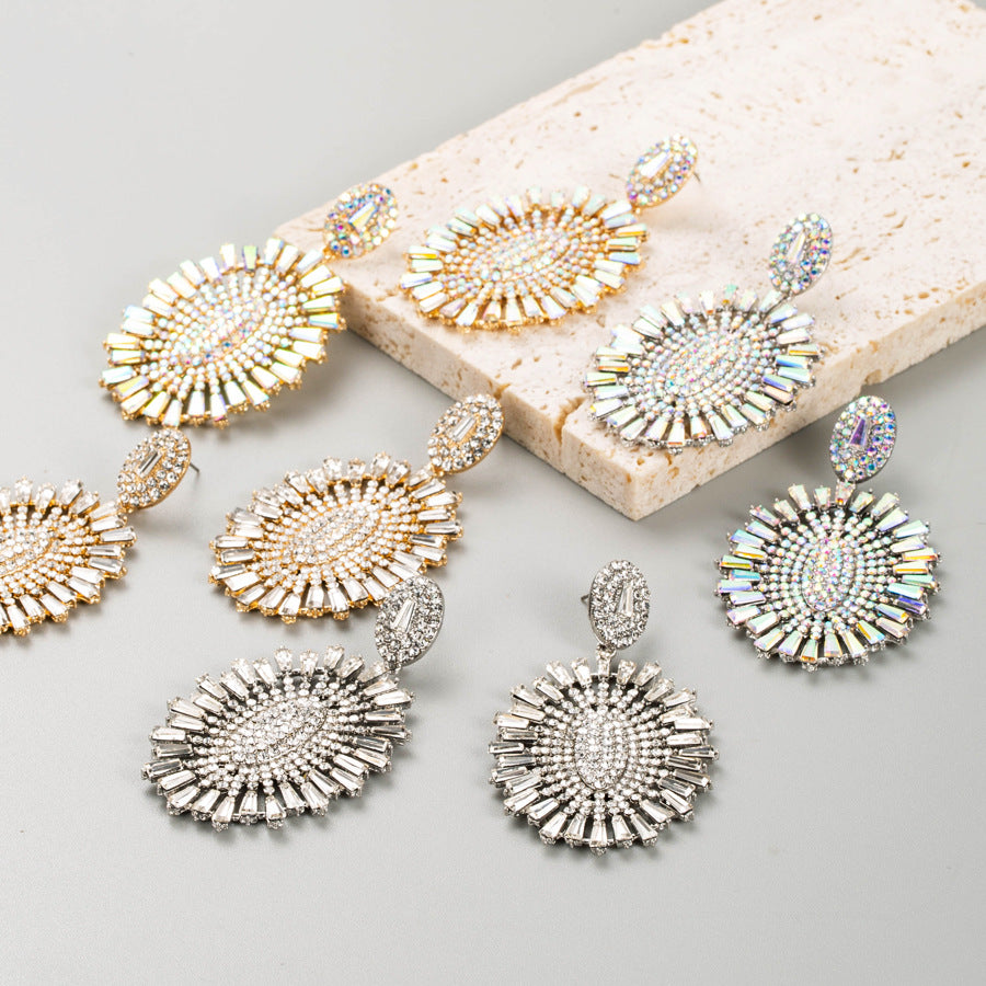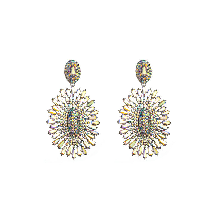 3. Oval Flower Rhinestone Earrings E7788