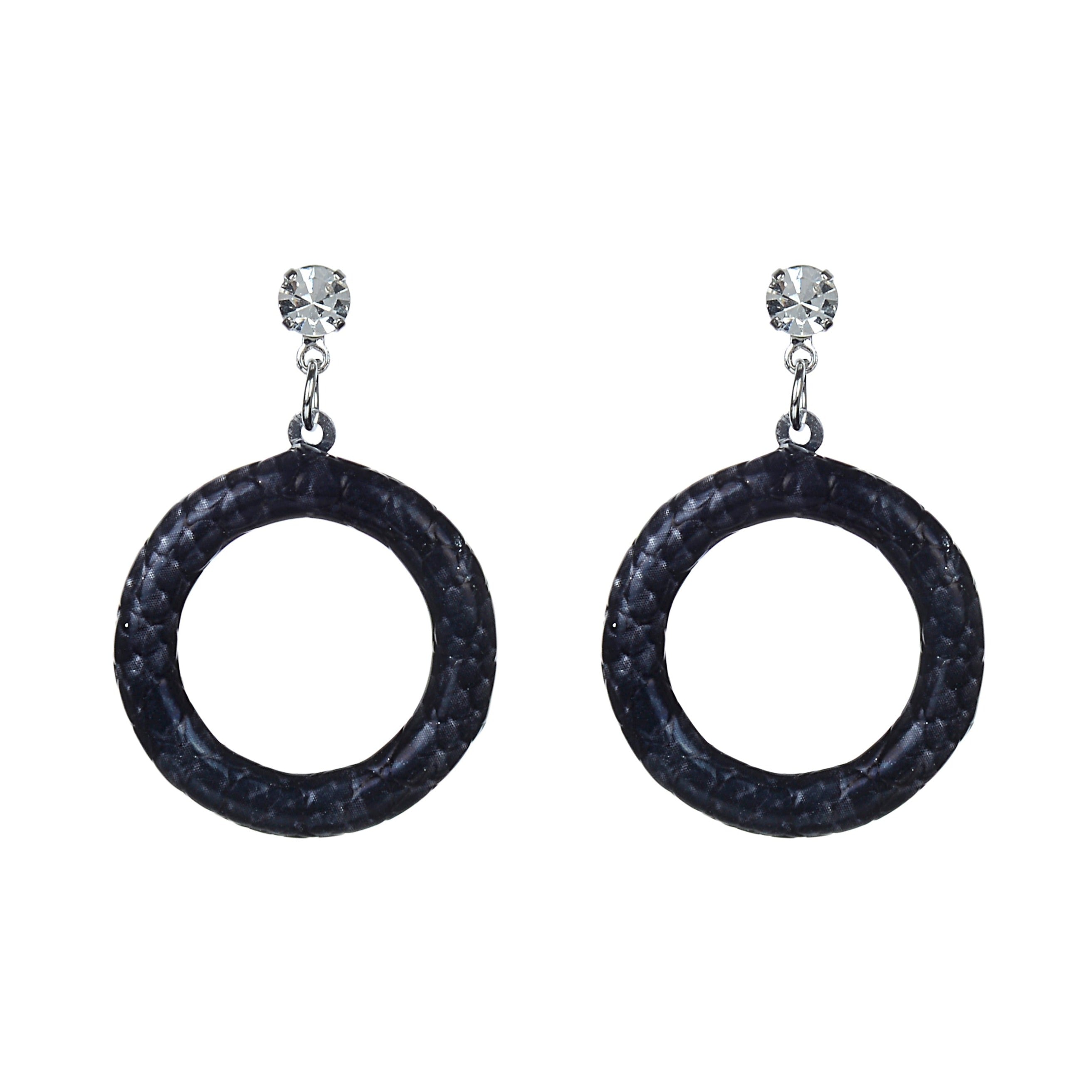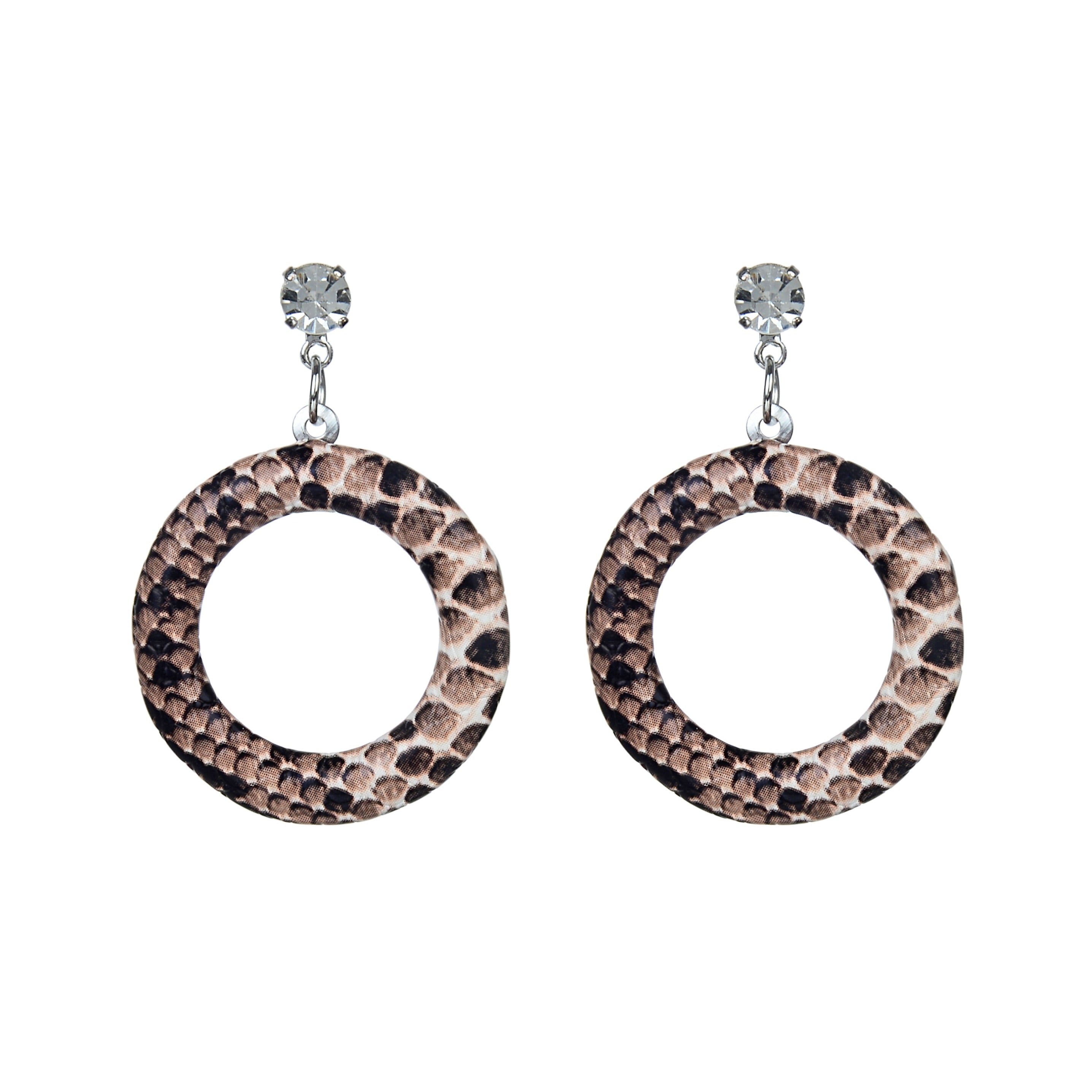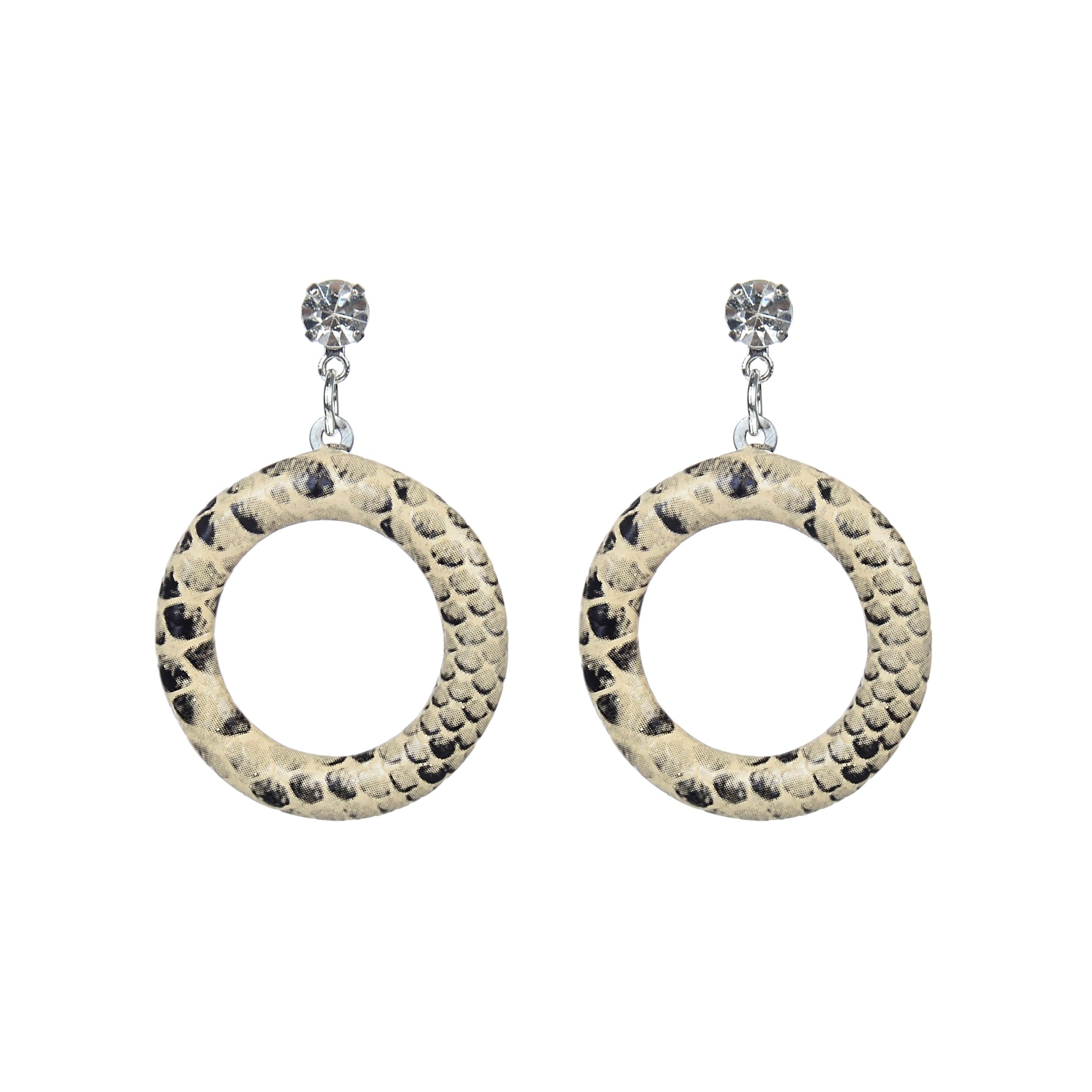 Round Hollow Snakeshin Leatherette Crystal Earrings E2744