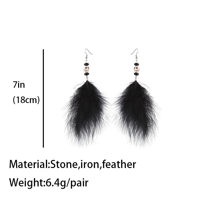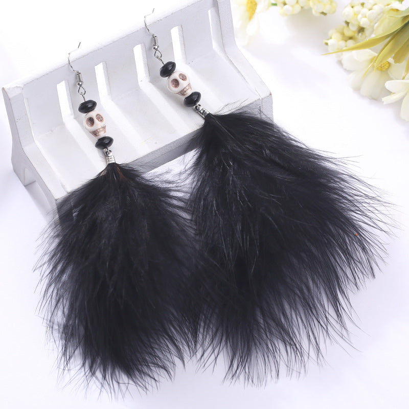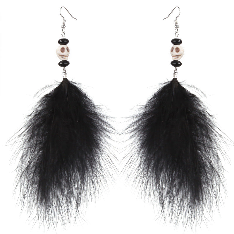Skull Feather Tassel Earrings E8242