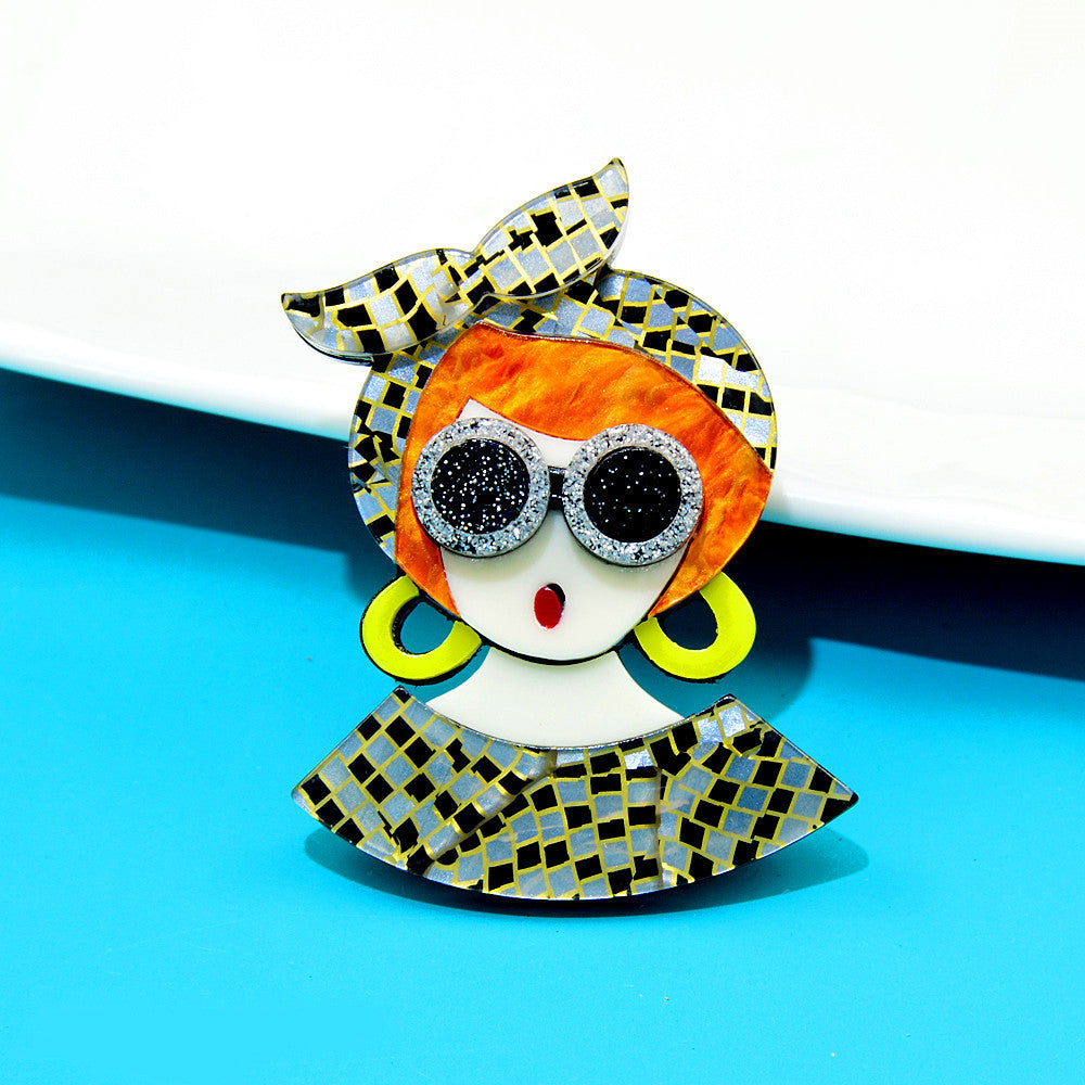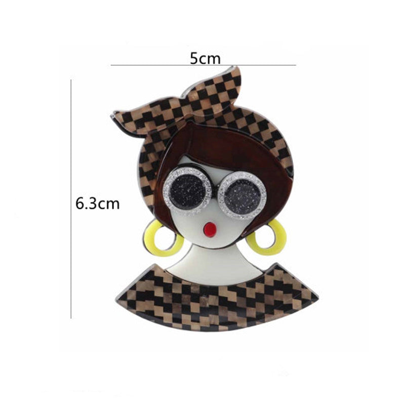 Glasses Girl Acrylic Brooch PA4087