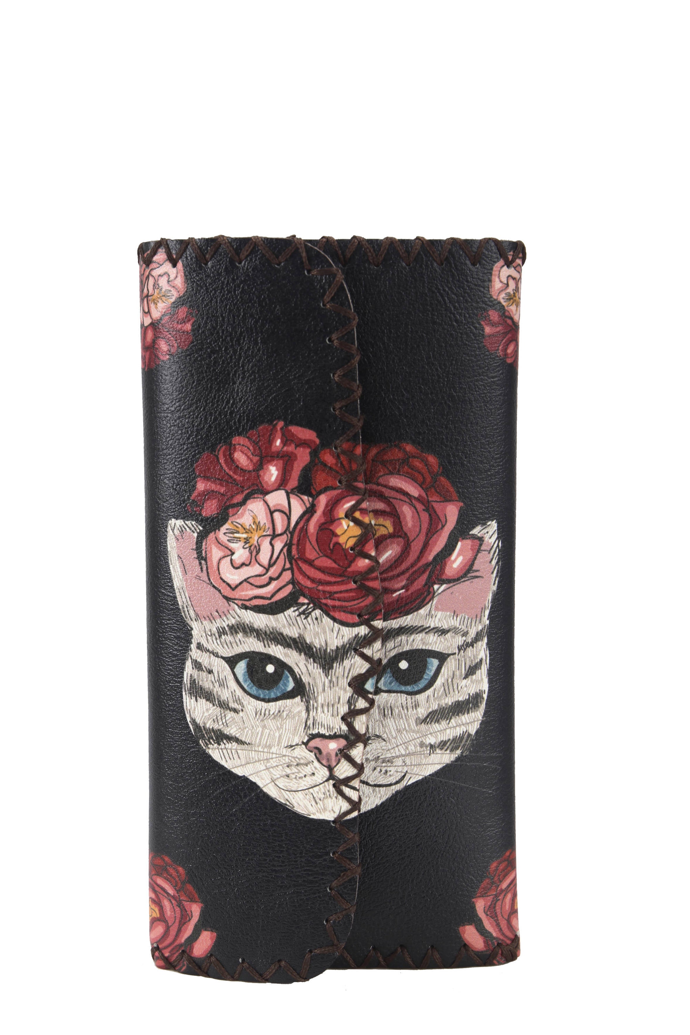 Floral Cat Print Hand Stitch Wallet HB0582 - NO.121BK