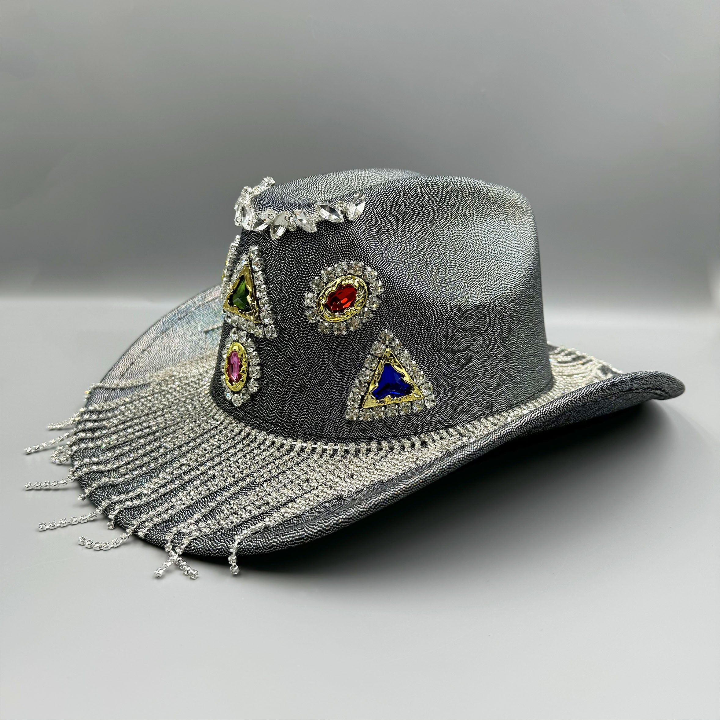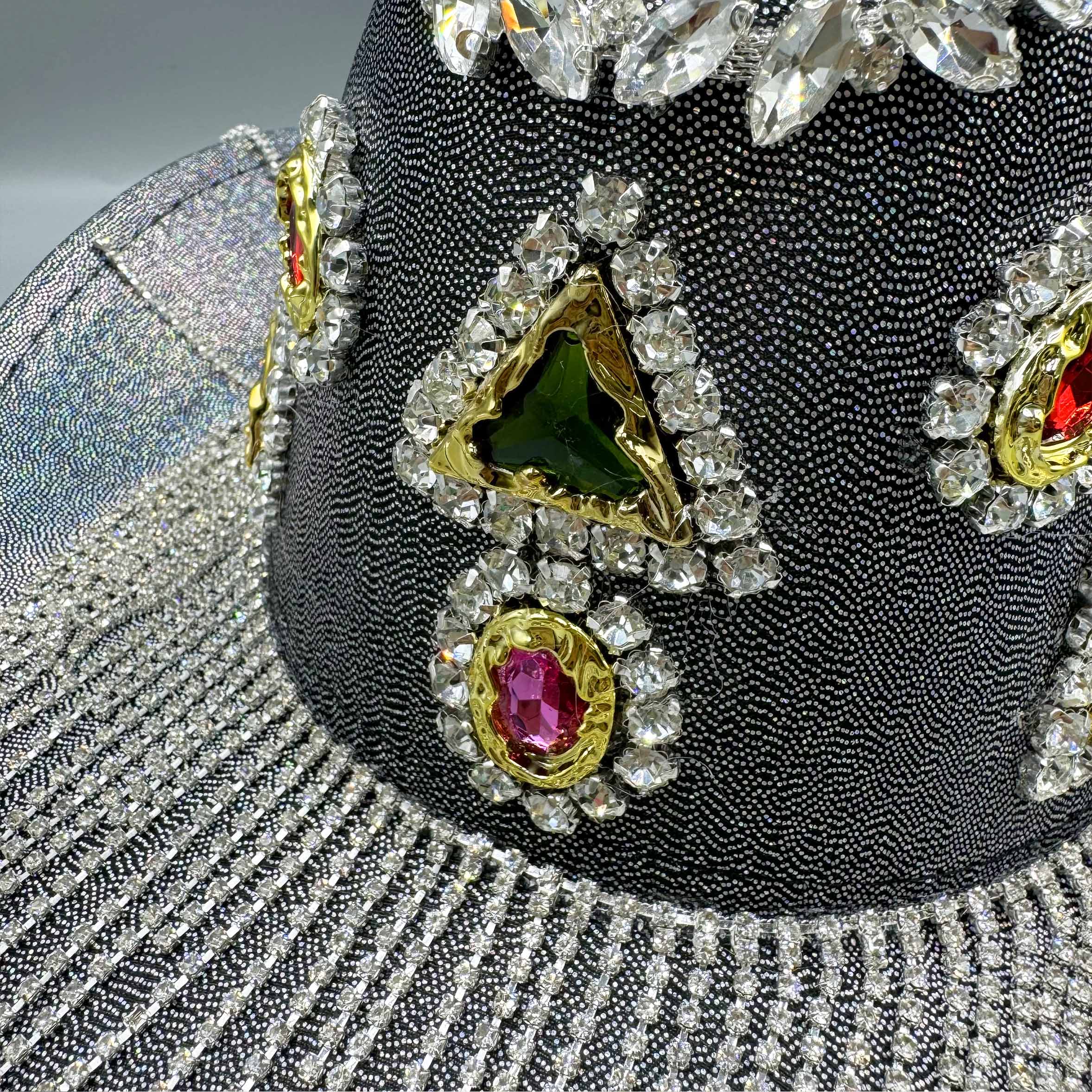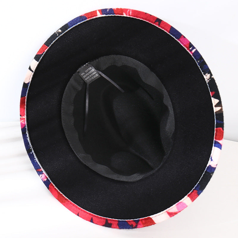 Floral Rhinestone Woolen Fedoras Hat C0741