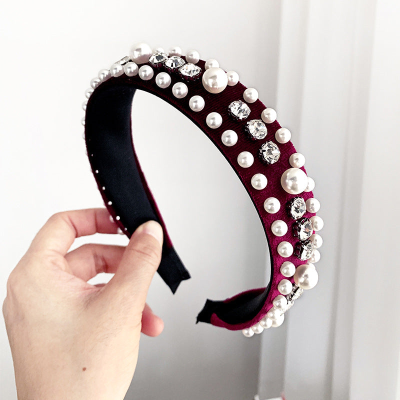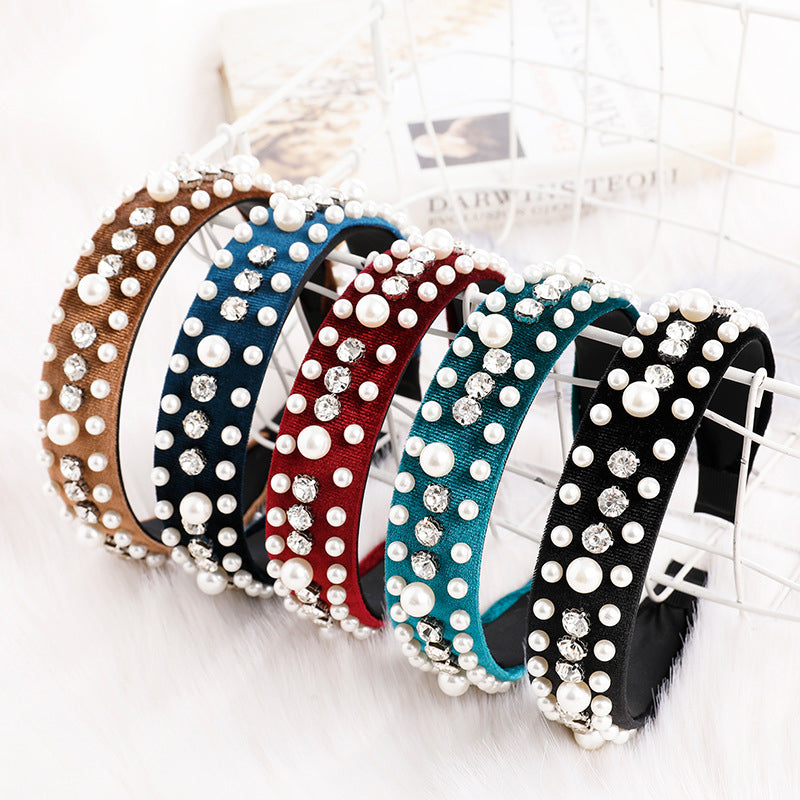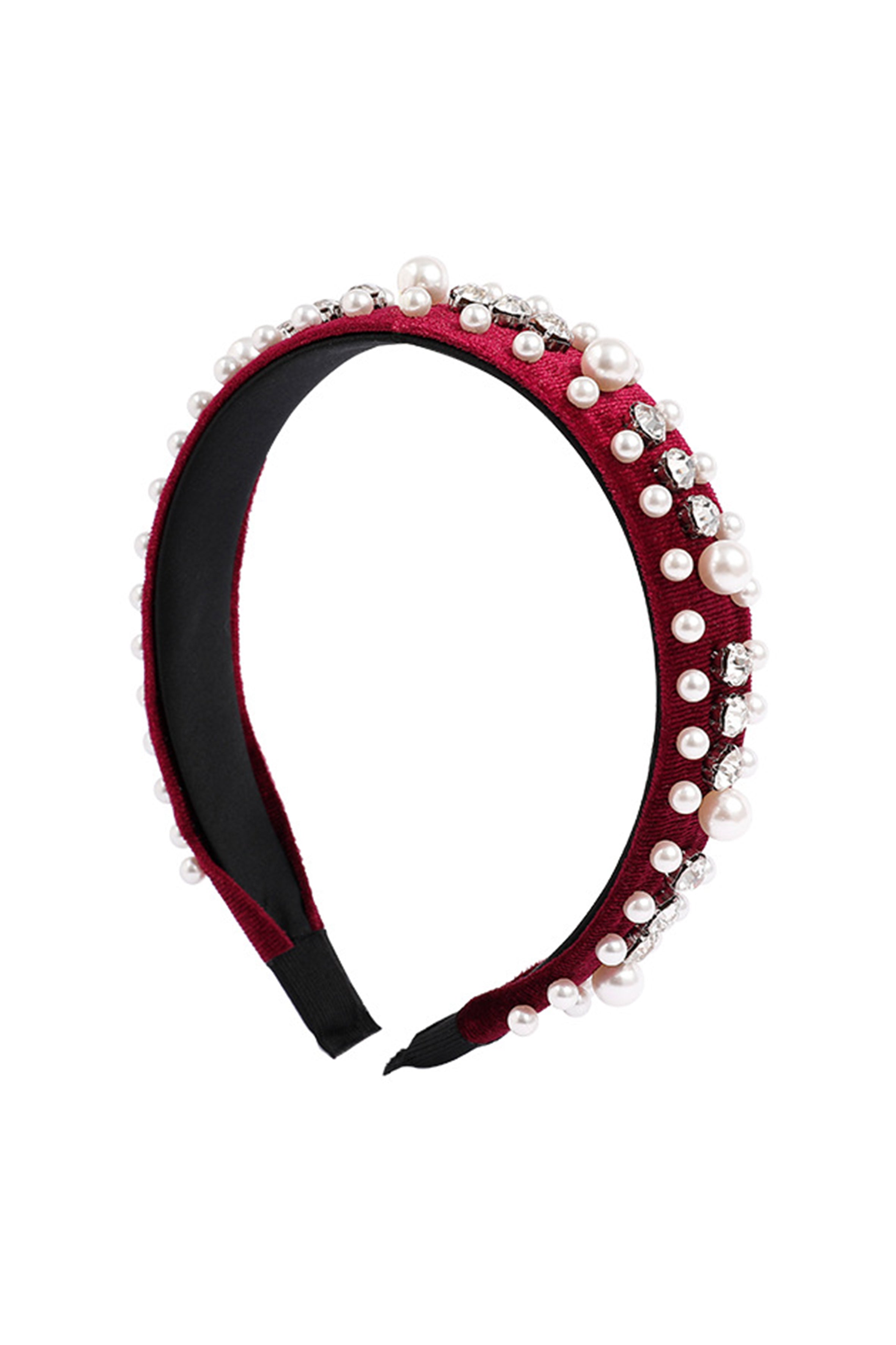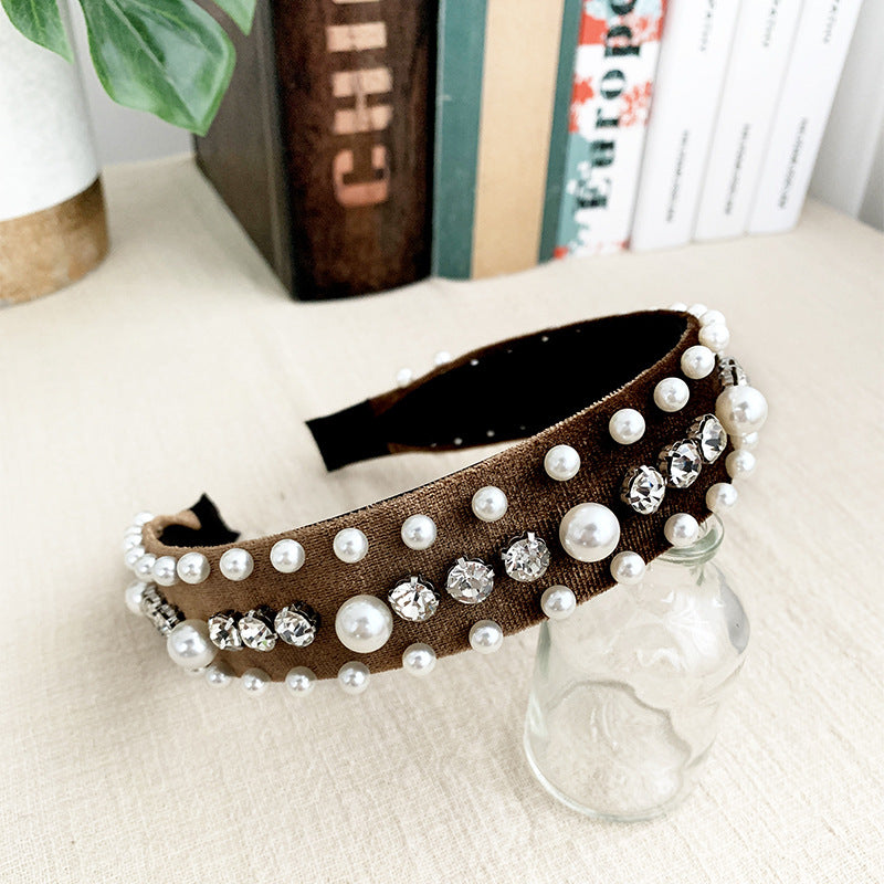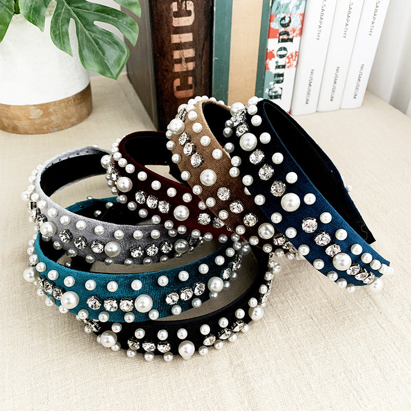 This headband is made from pearl velvet, providing a luxurious and elegant texture.