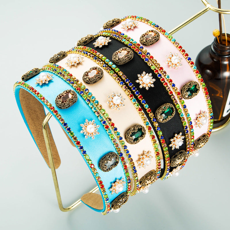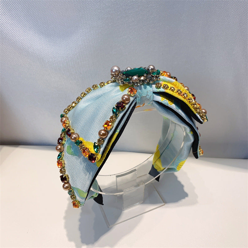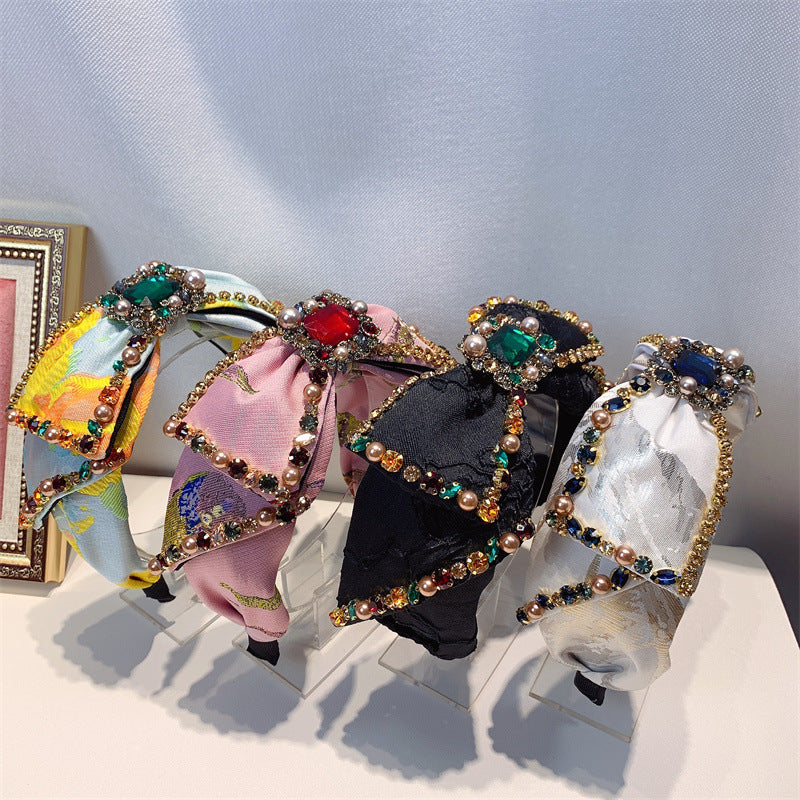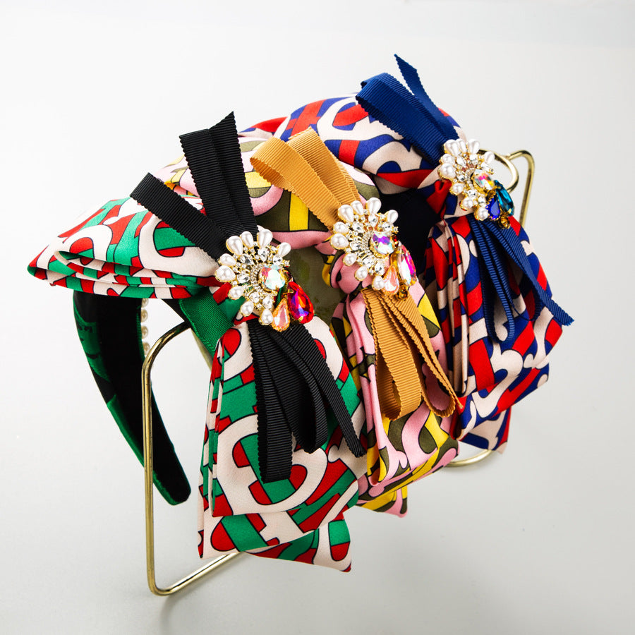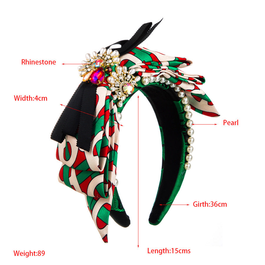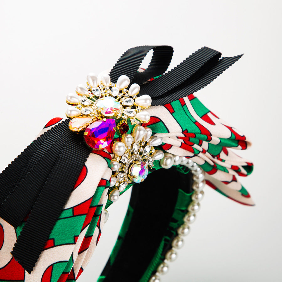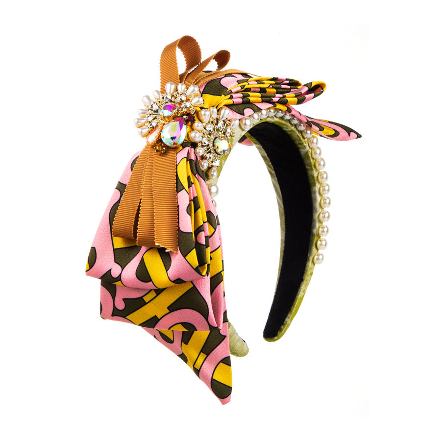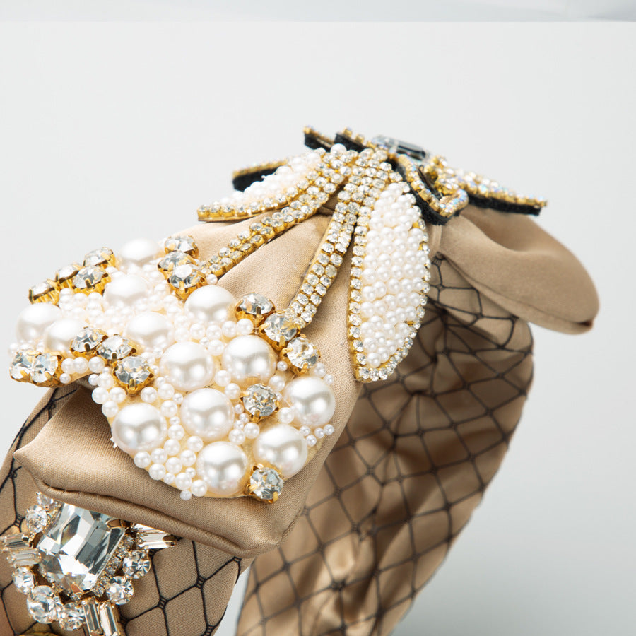 Bow Rhinestone Pearl Fabric Headband L4122