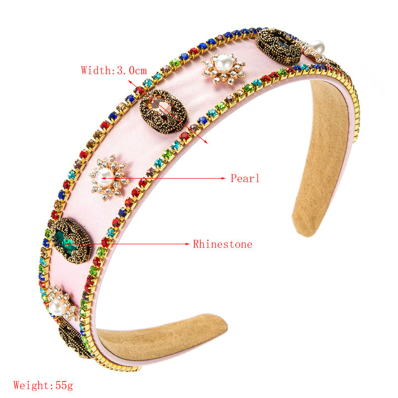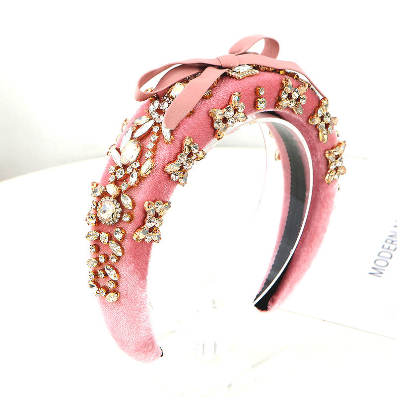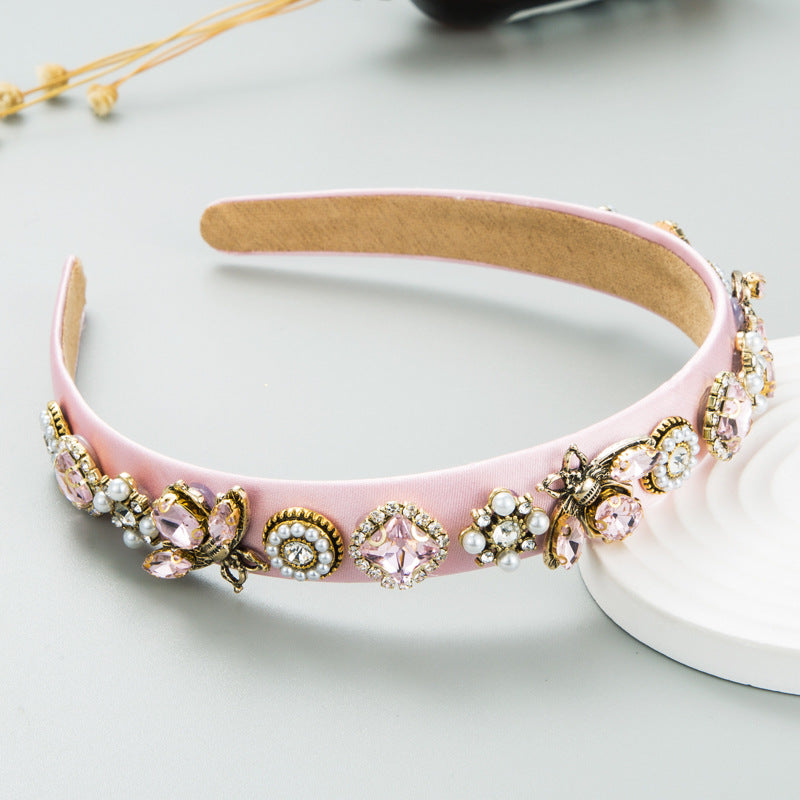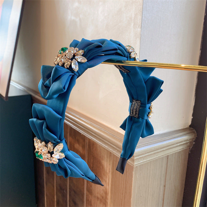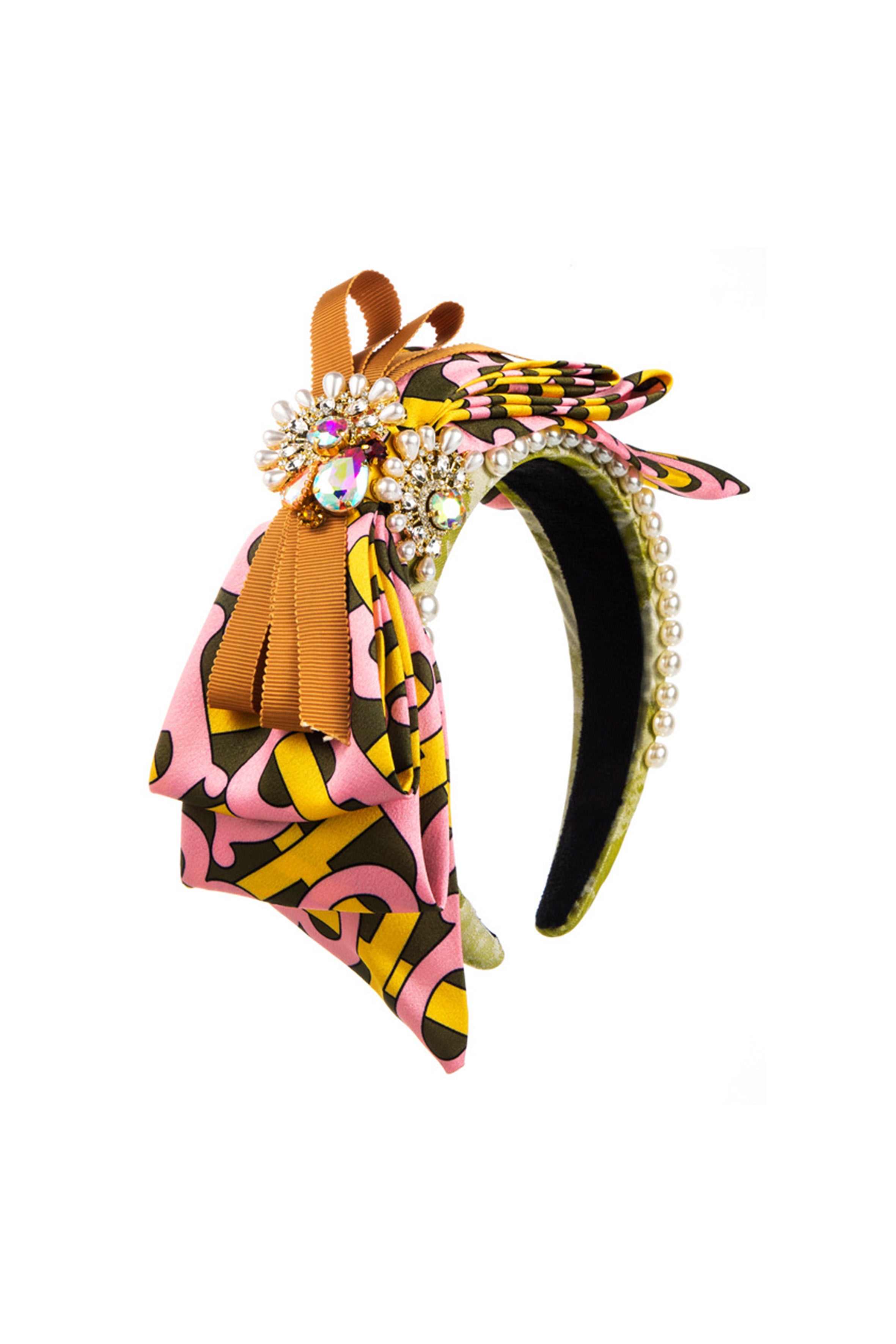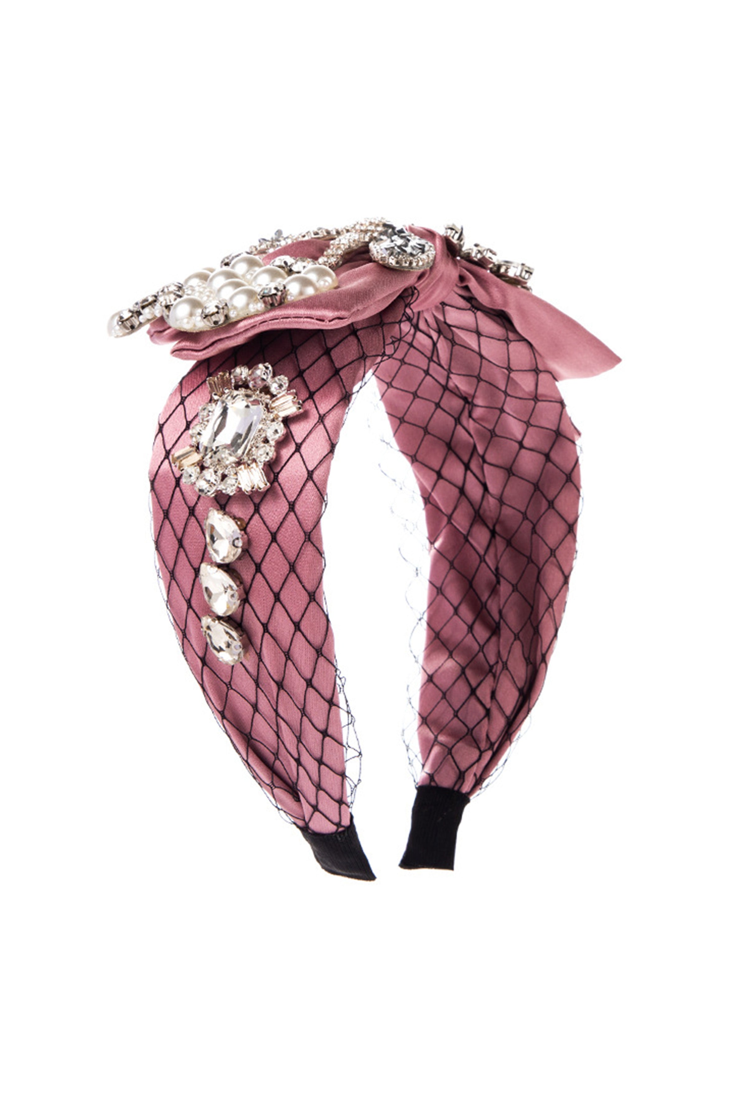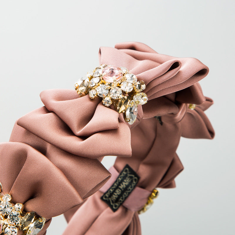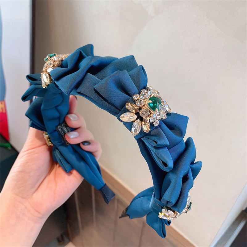 Bow Rhinestone Pearl Fabric Headband L4122