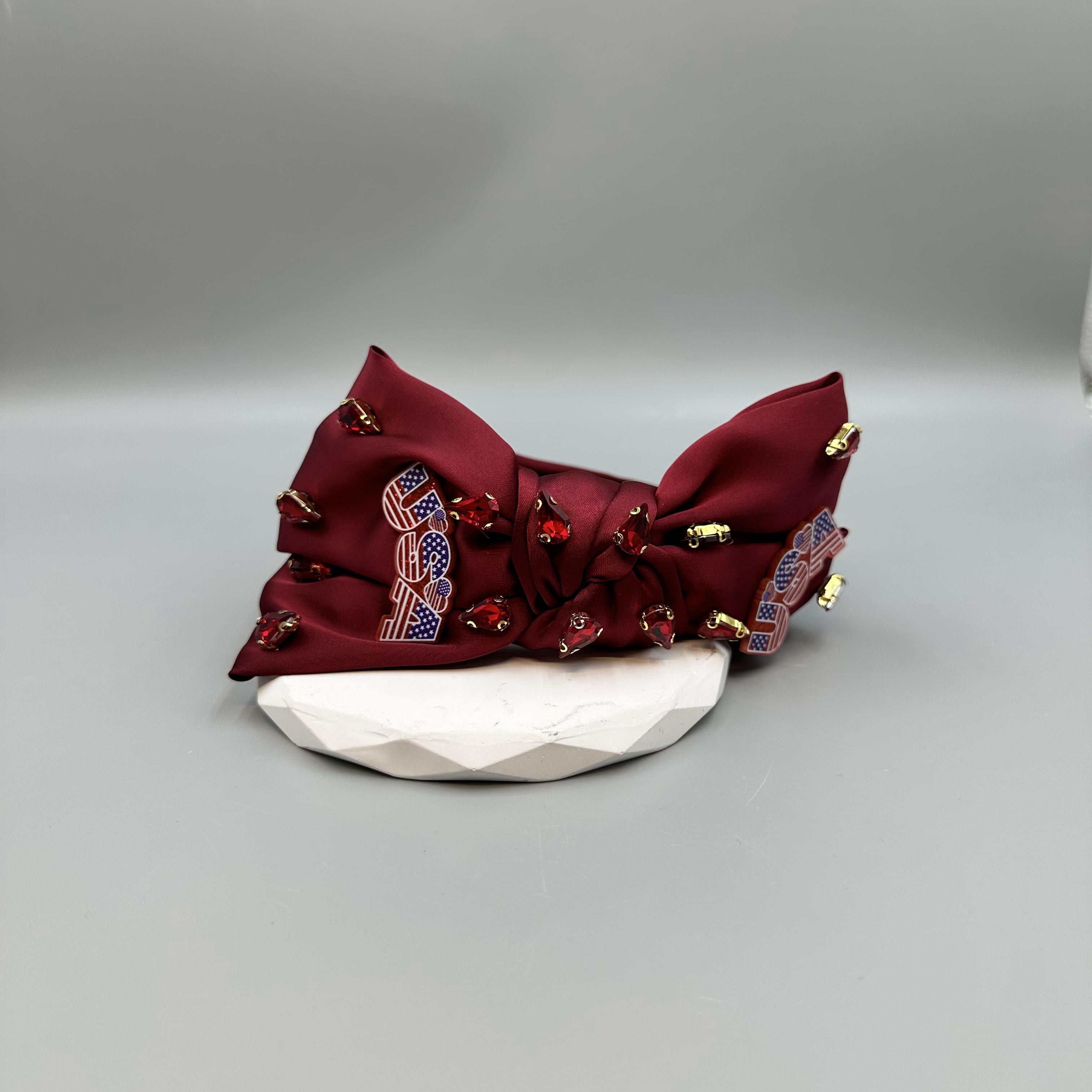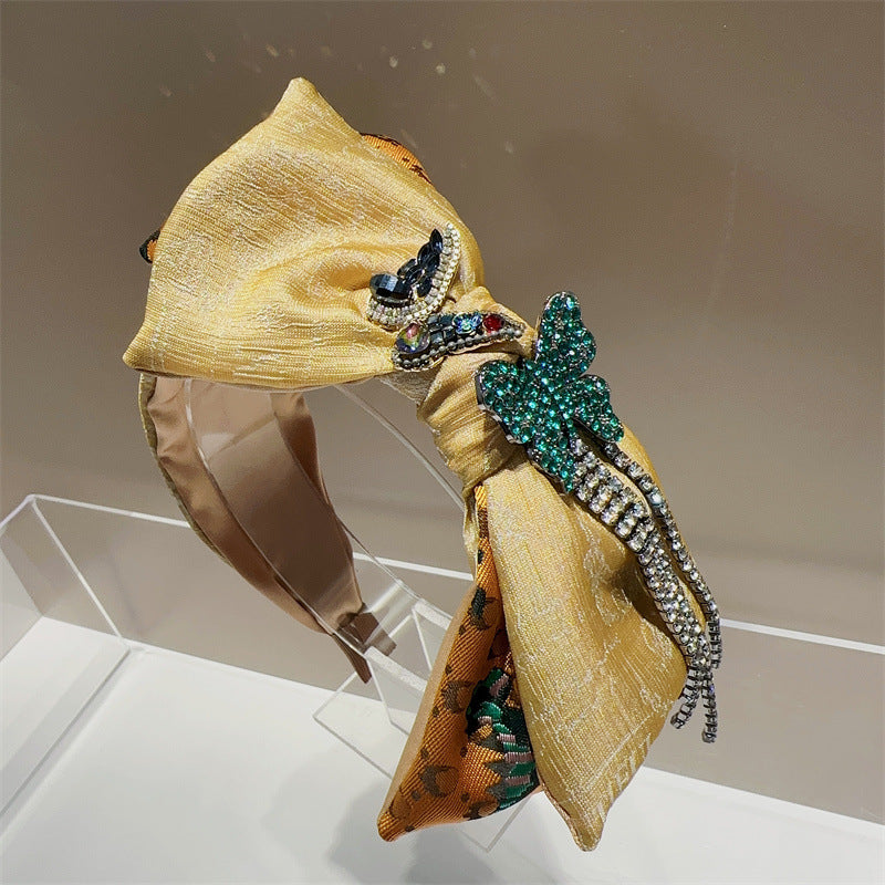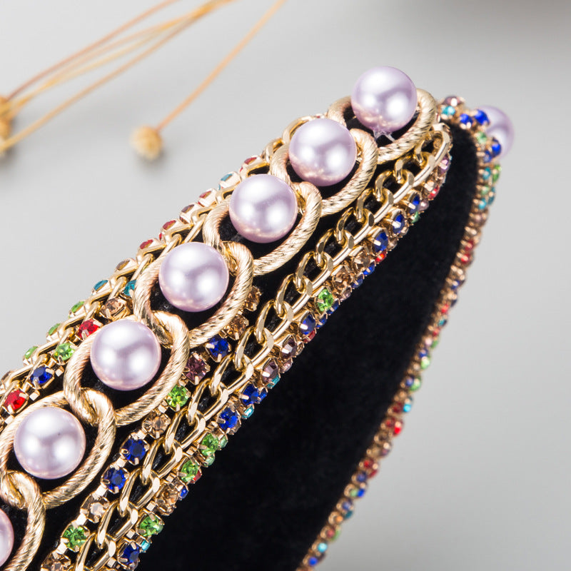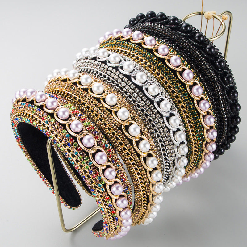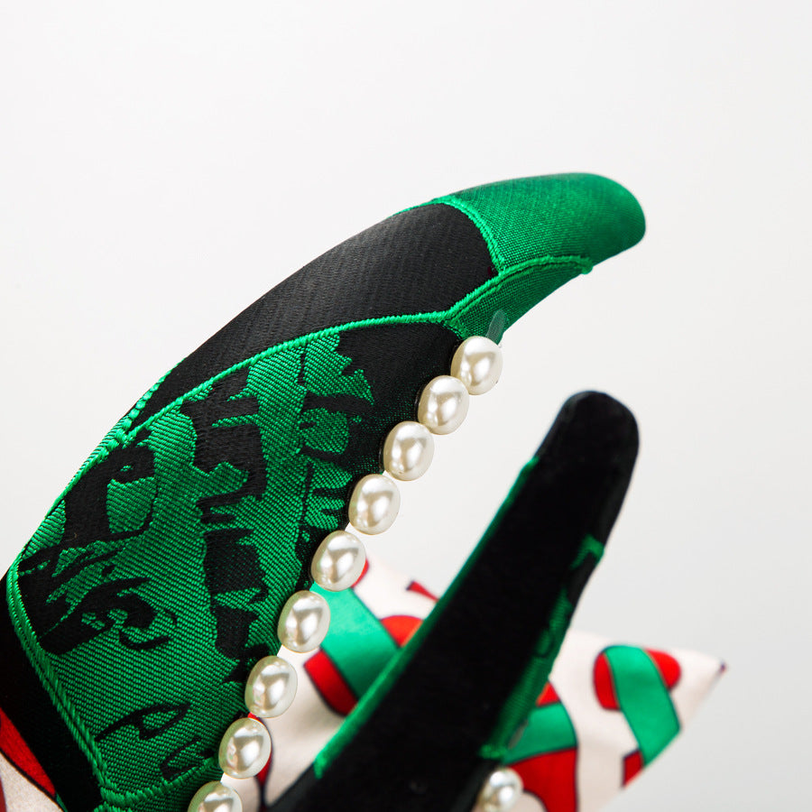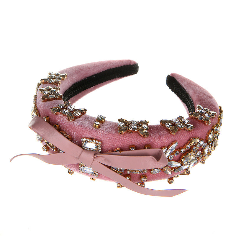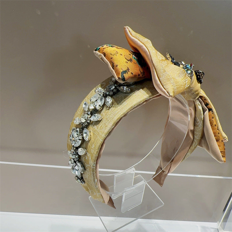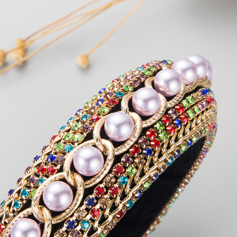 Bow Rhinestone Pearl Fabric Headband L4122