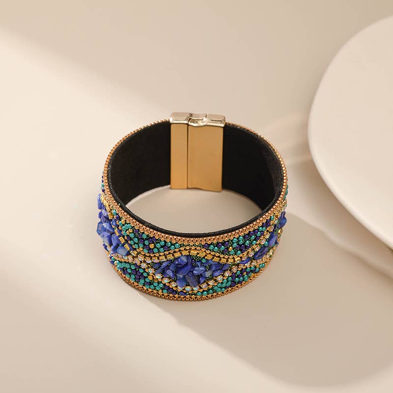 Bohemia Style With Chip Stones Leatherette Magnetic Bracelet B3757