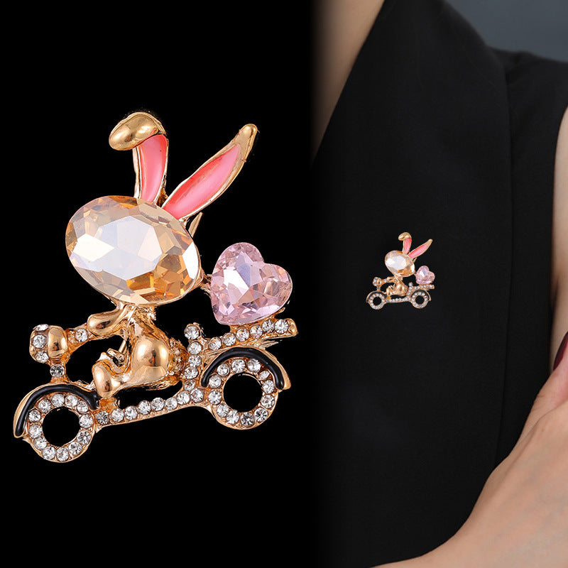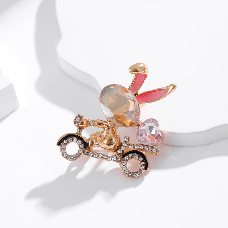 Bicycle Bunny Rhinestone Brooch PA5548