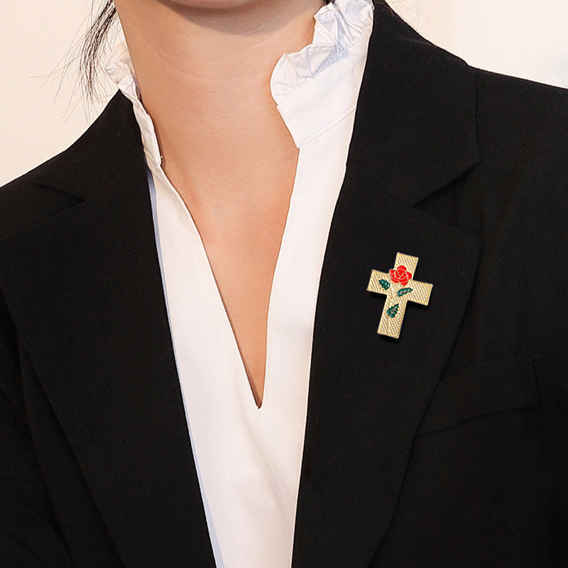 Rose Cross Alloy Brooch PA4028