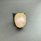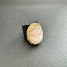 Rose Quartz With Rhinestone Metal Leather Rings R2587