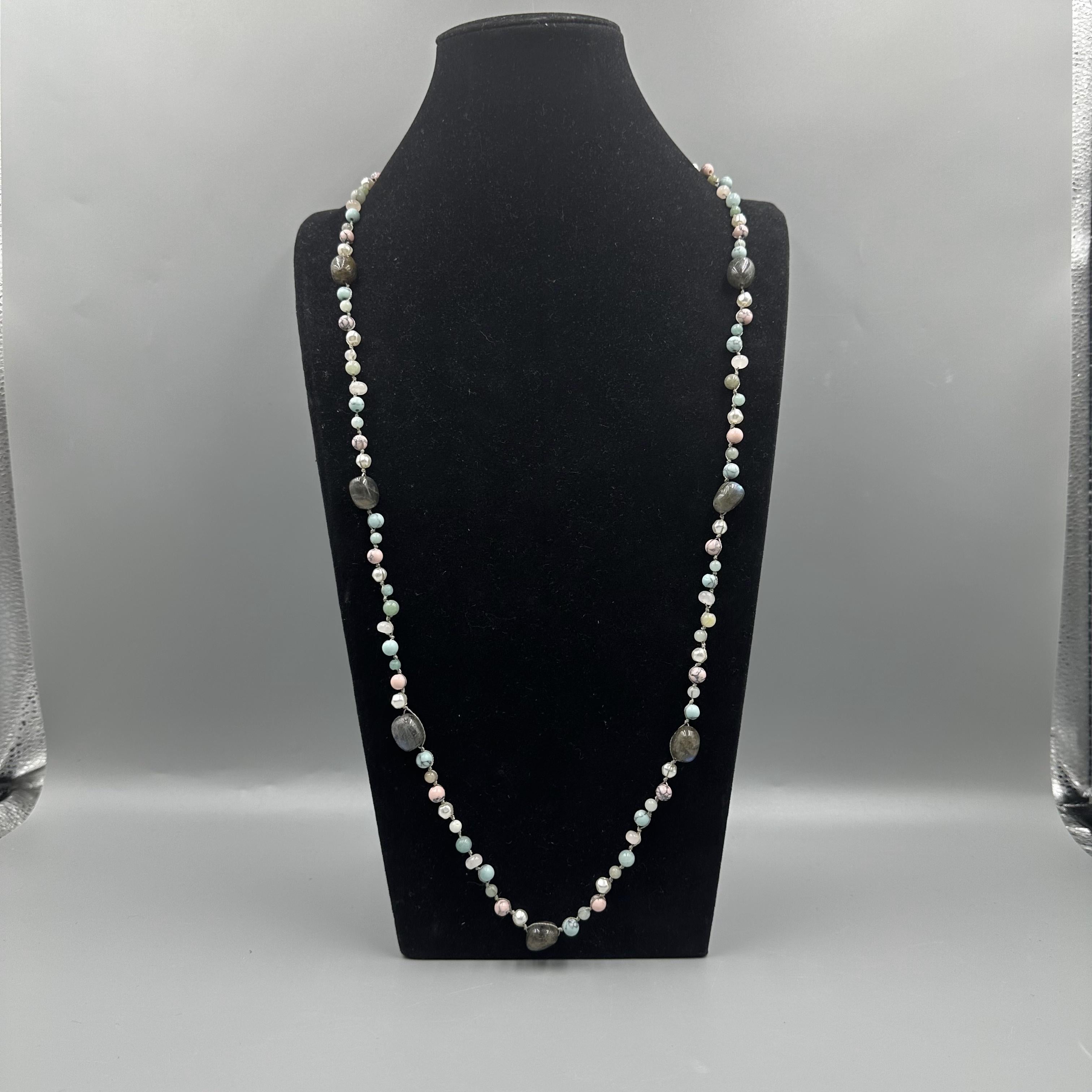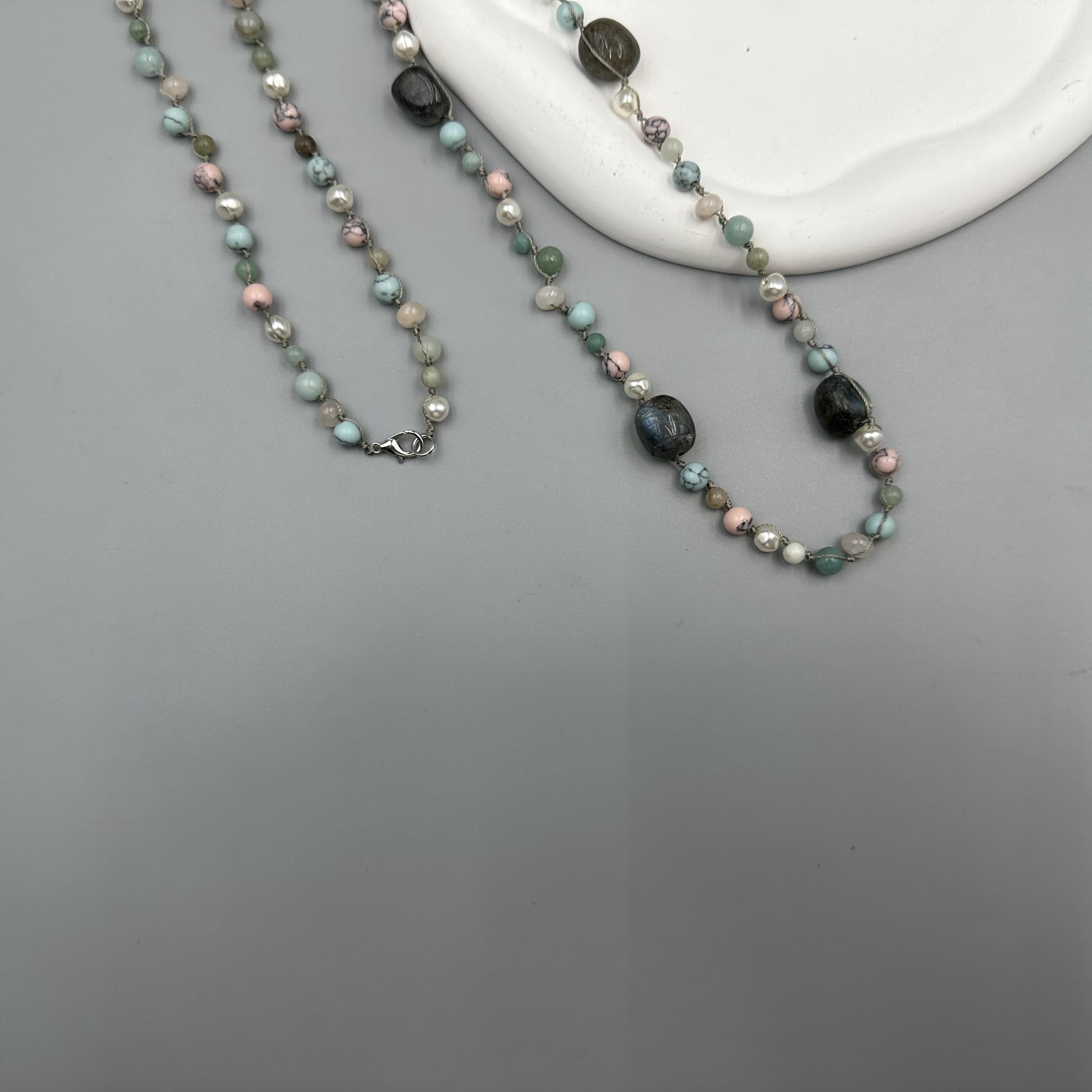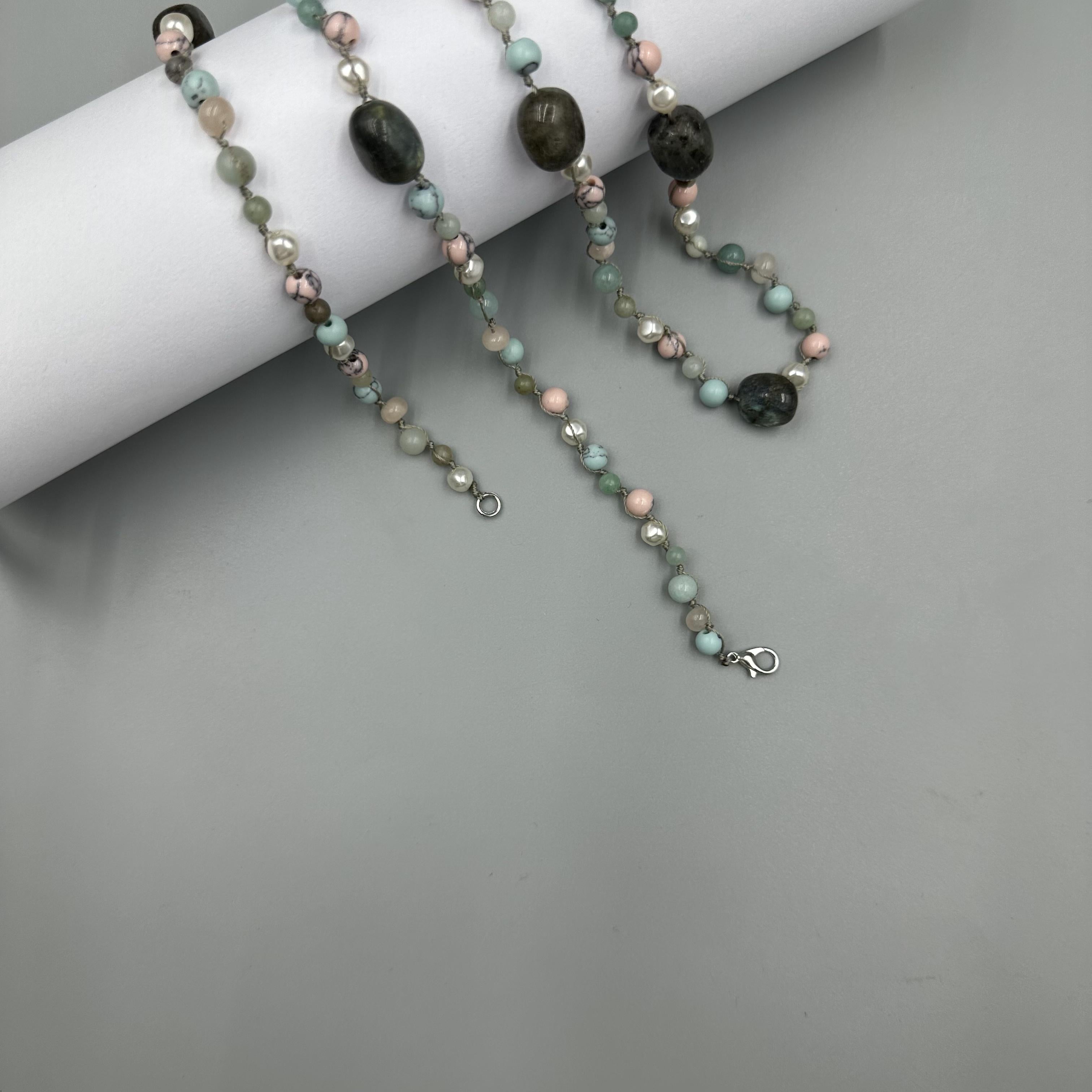 Handmade Braided Labradorite Stone Beaded Necklace N5395