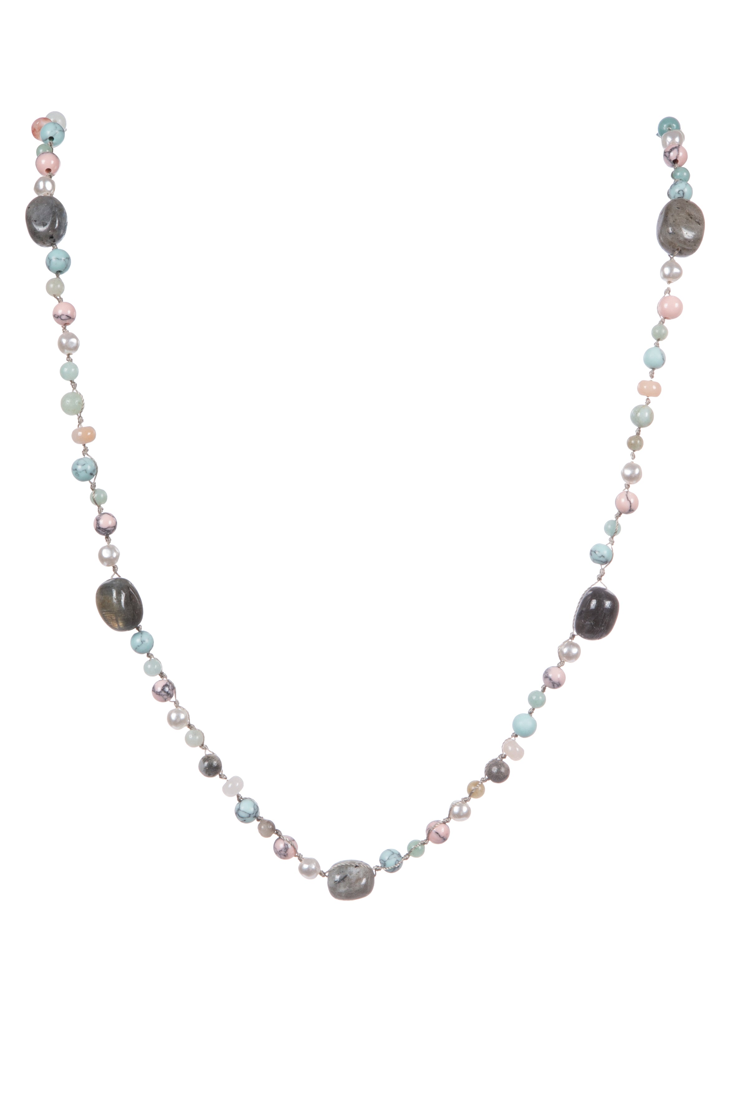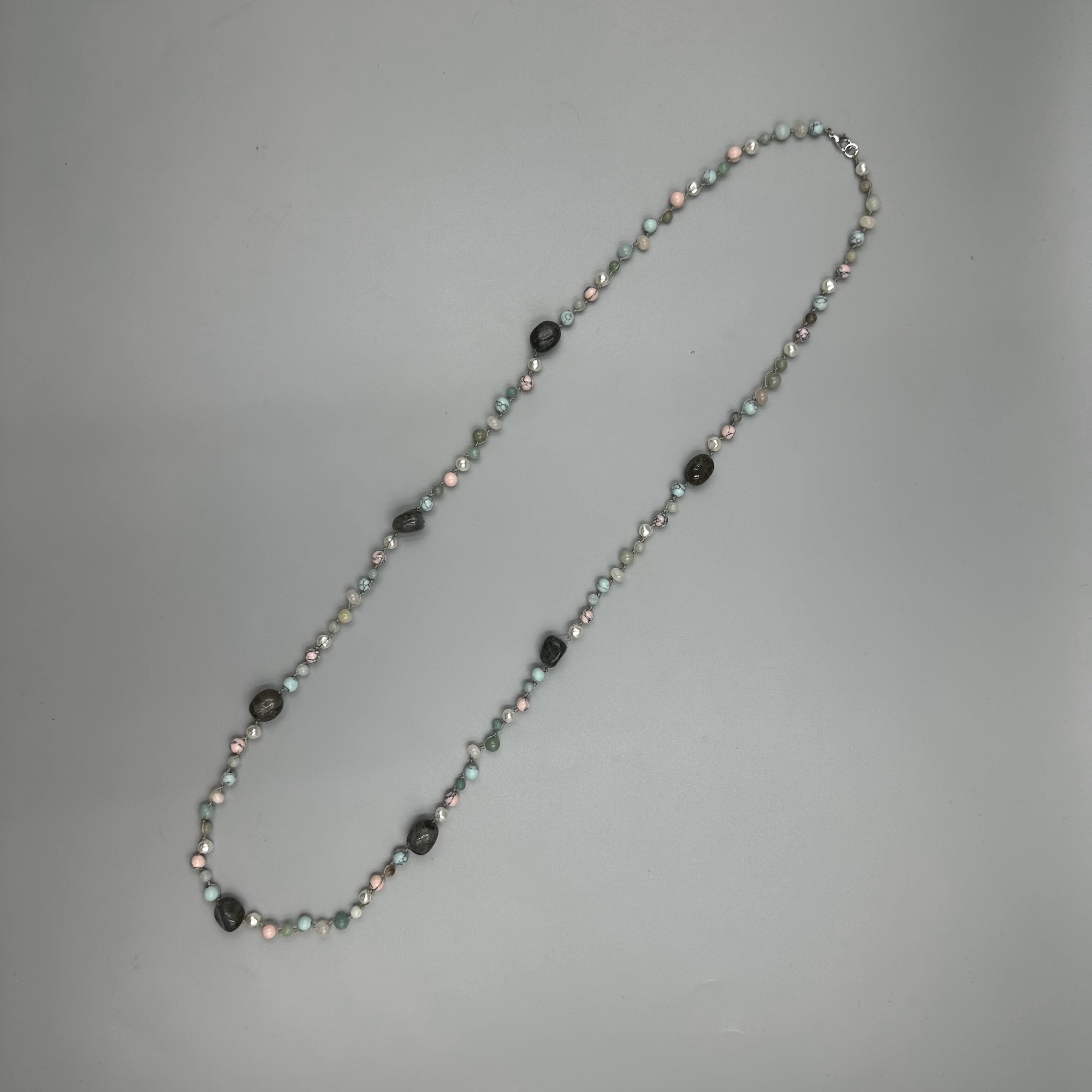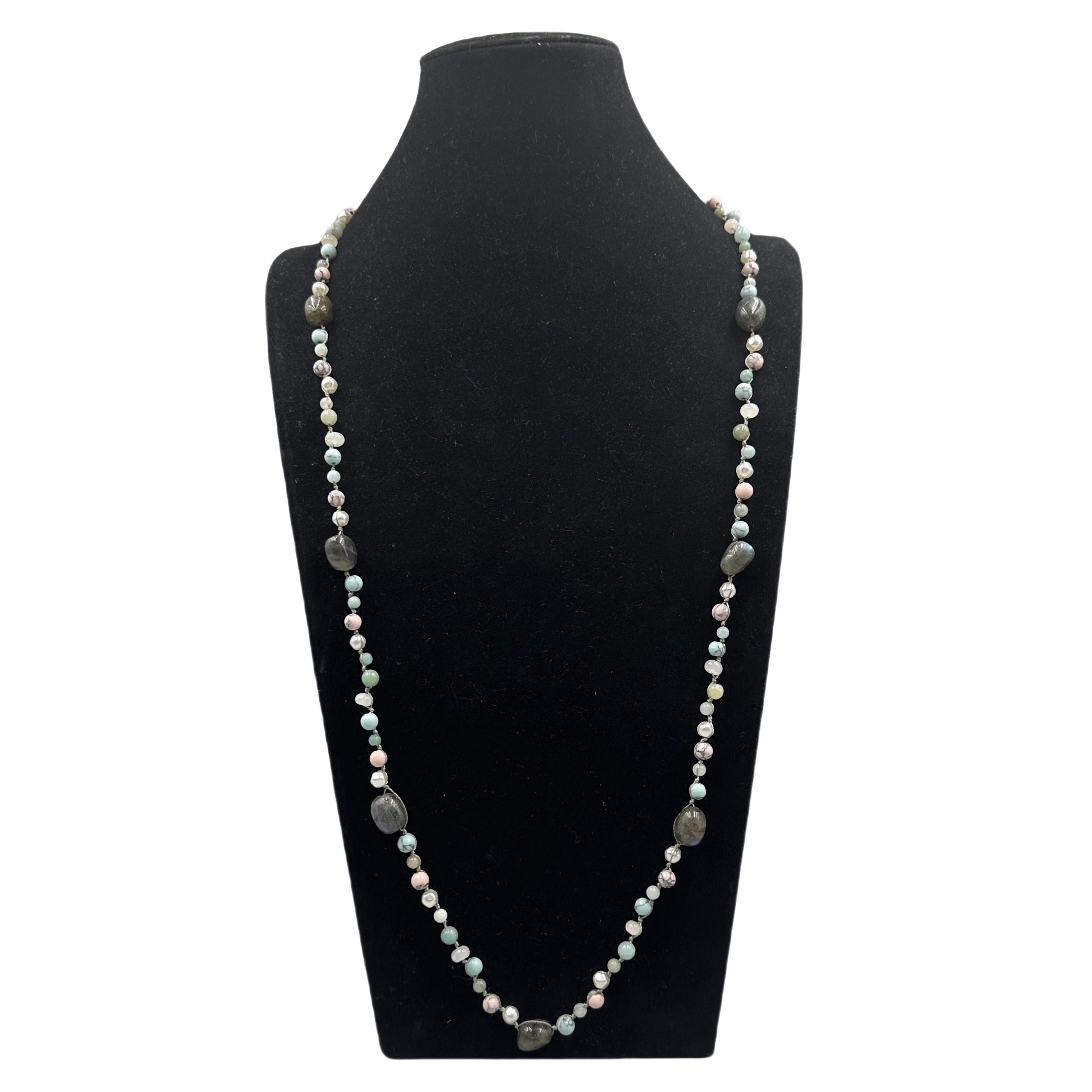 Handmade Braided Labradorite Stone Beaded Necklace N5395