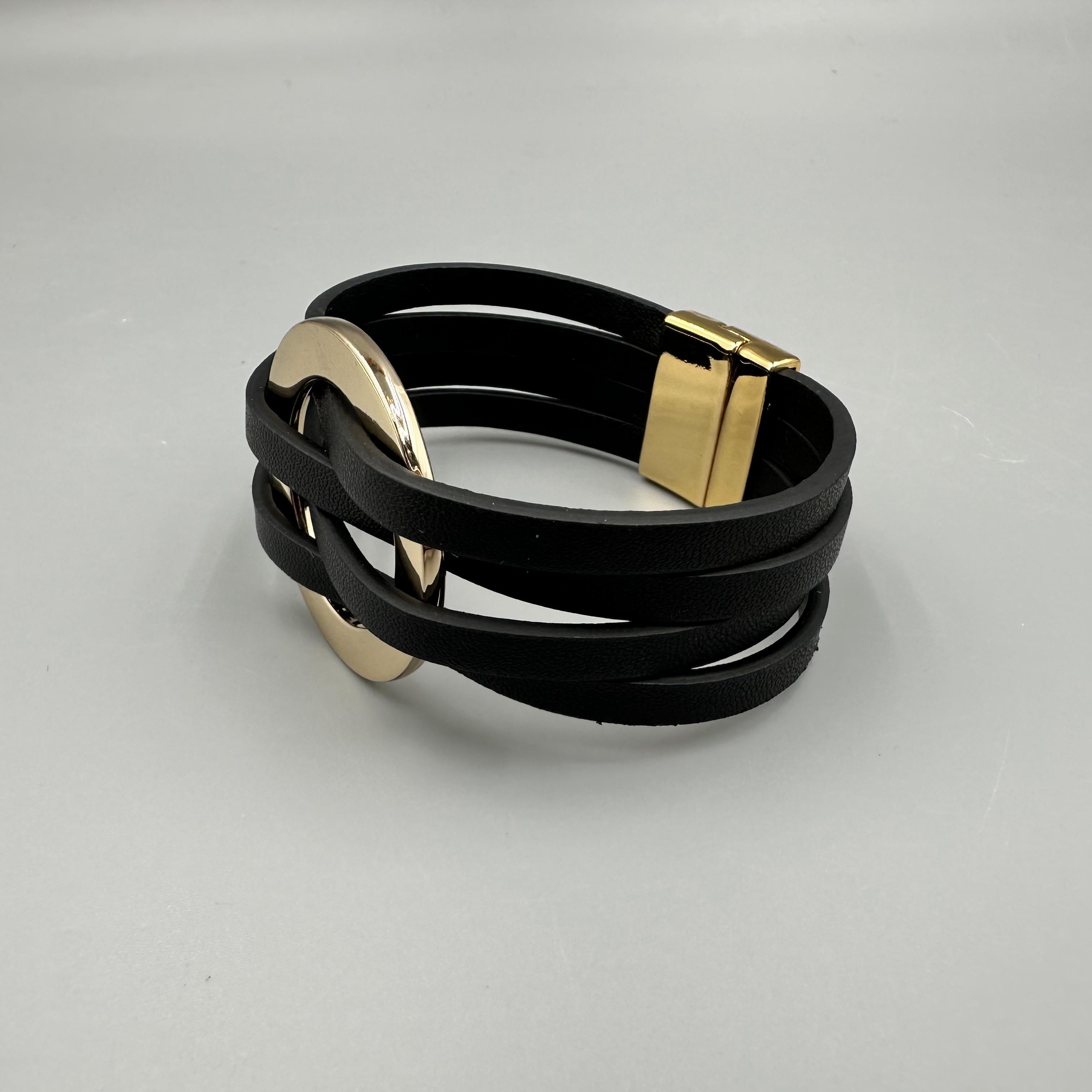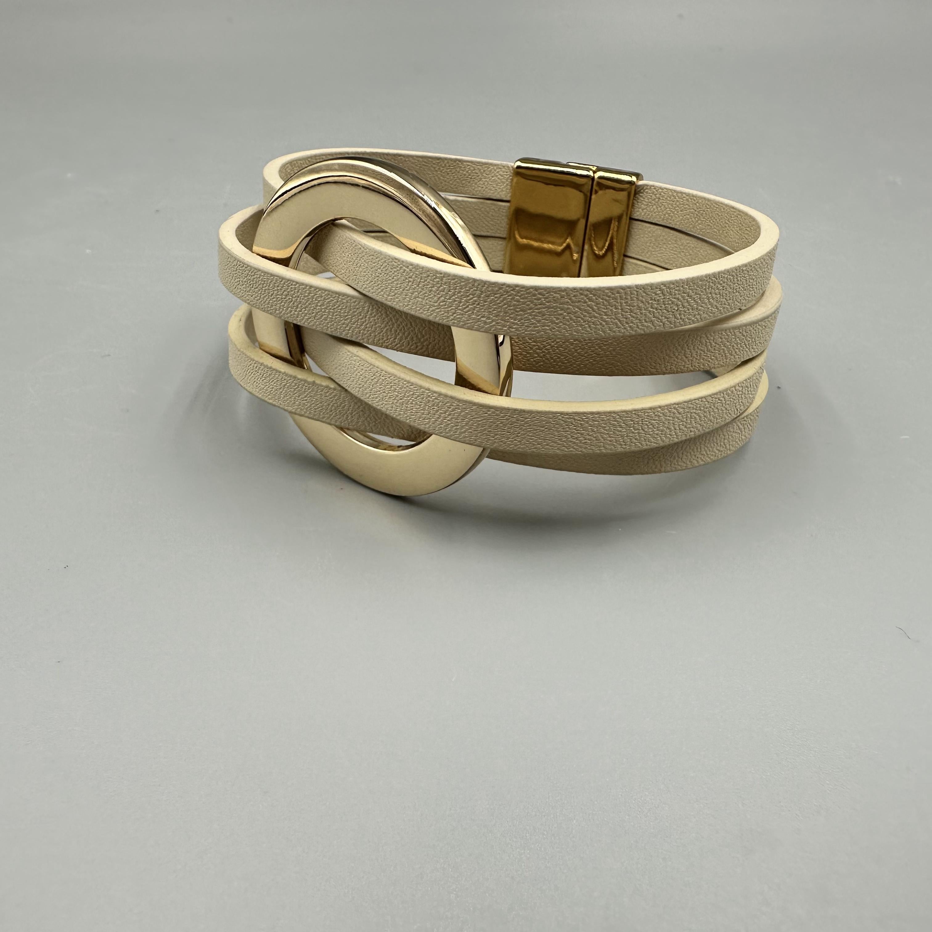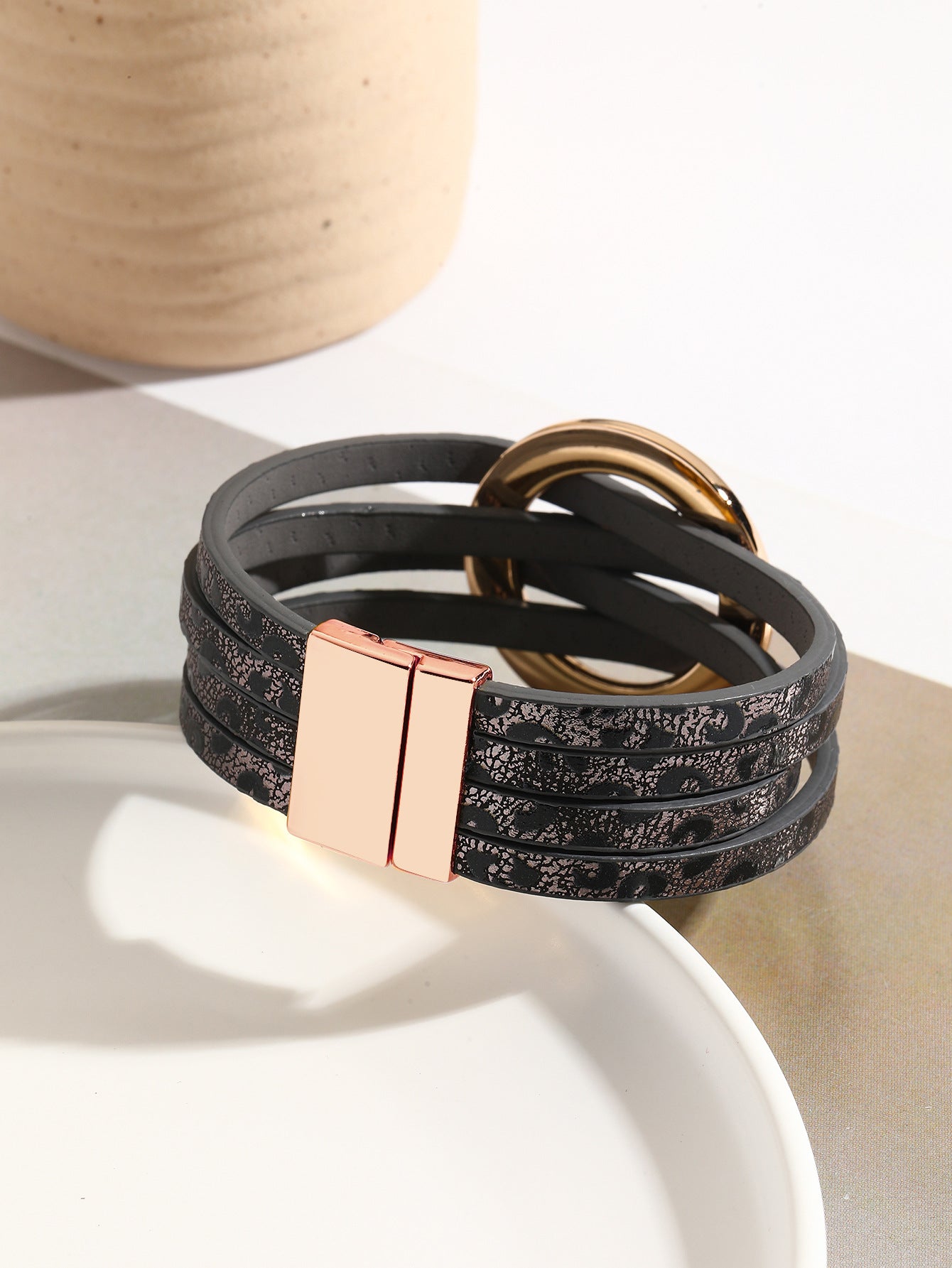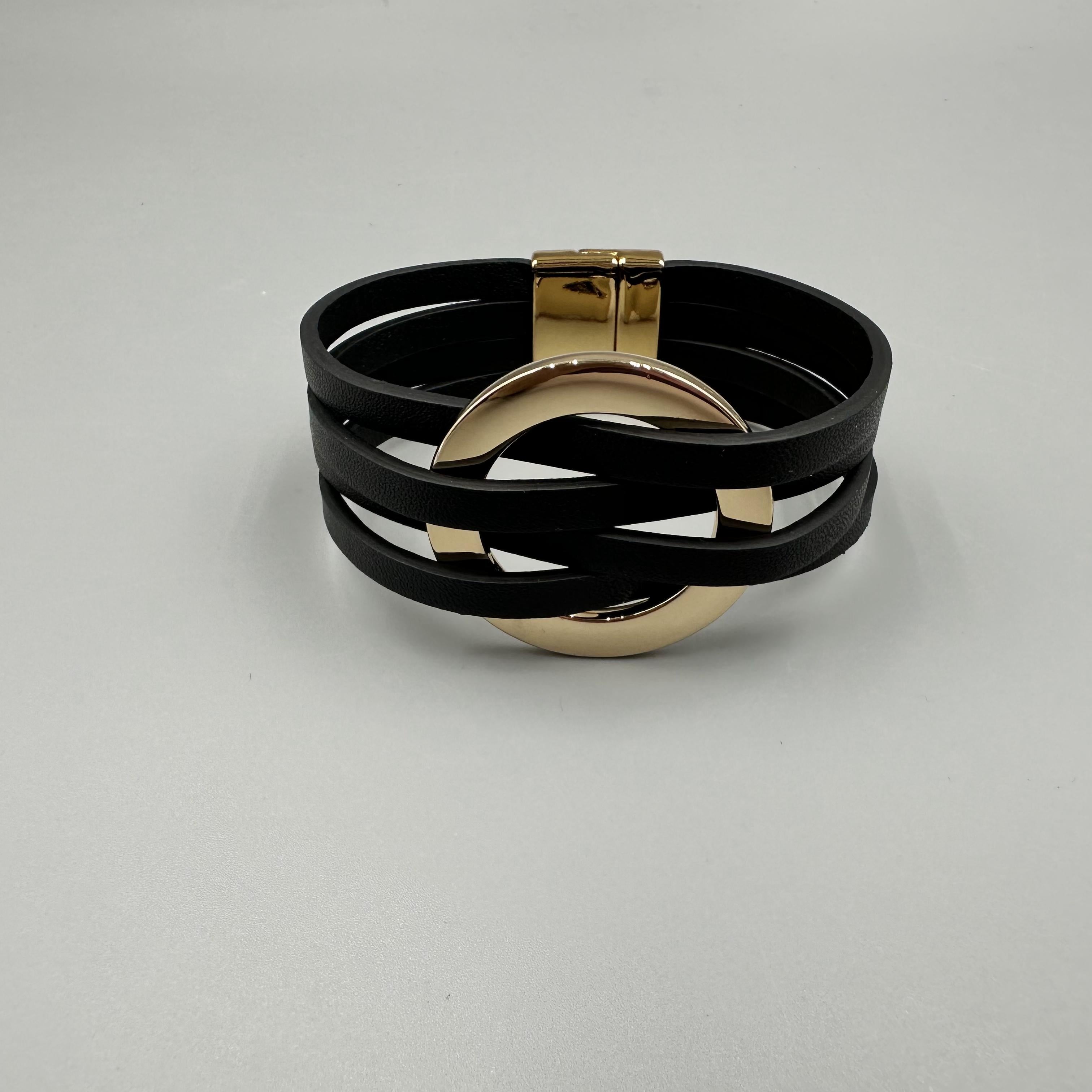 Circle Charm Leatherette Magnetic Bracelet B4187