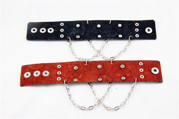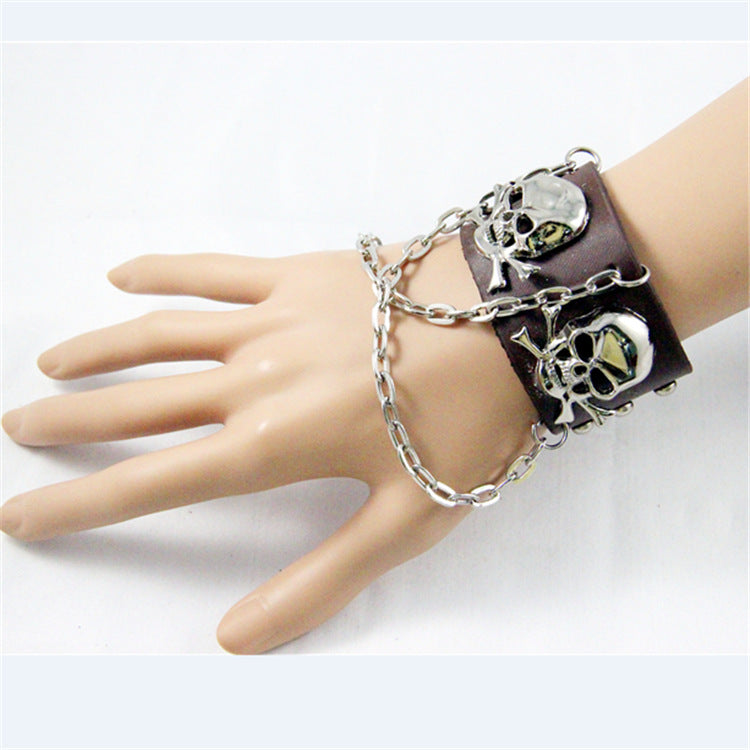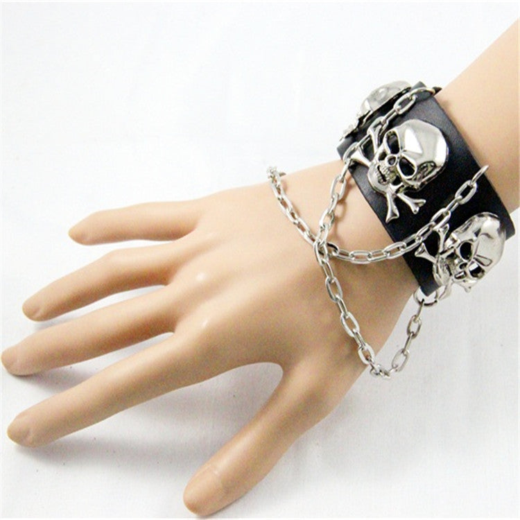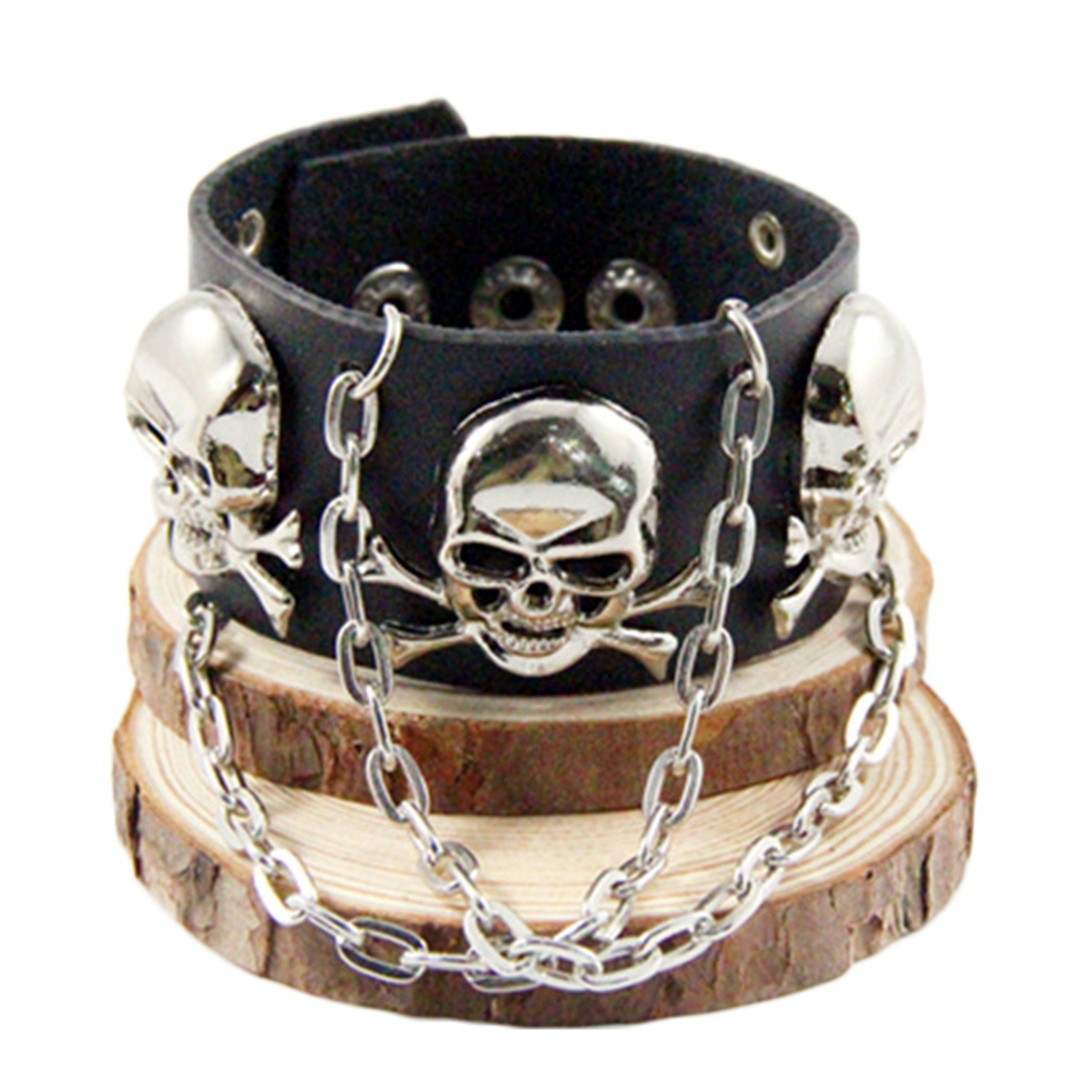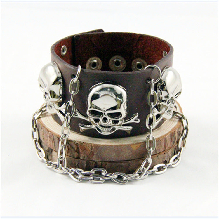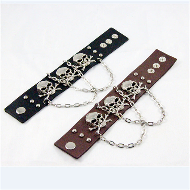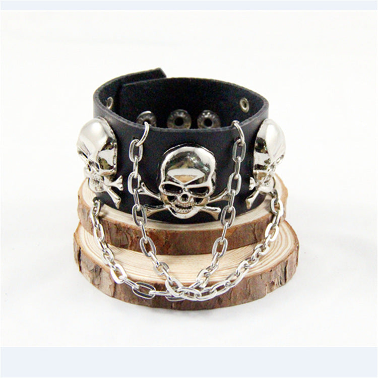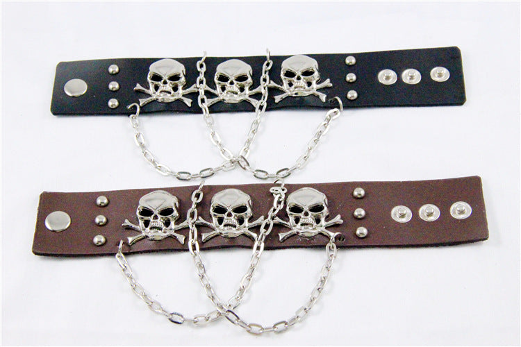 Skull Chain Leather Snap Bracelet B3747